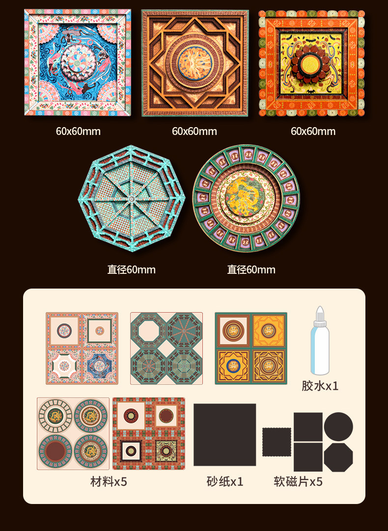 科答鸭藻井冰箱贴diy儿童手工立体木质粘贴国风非遗敦煌玩具礼物