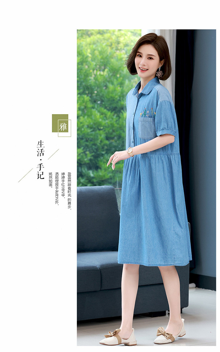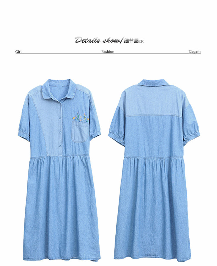HR-WX05019 2022夏季新款拼接文艺复古刺绣花牛仔衬衫裙