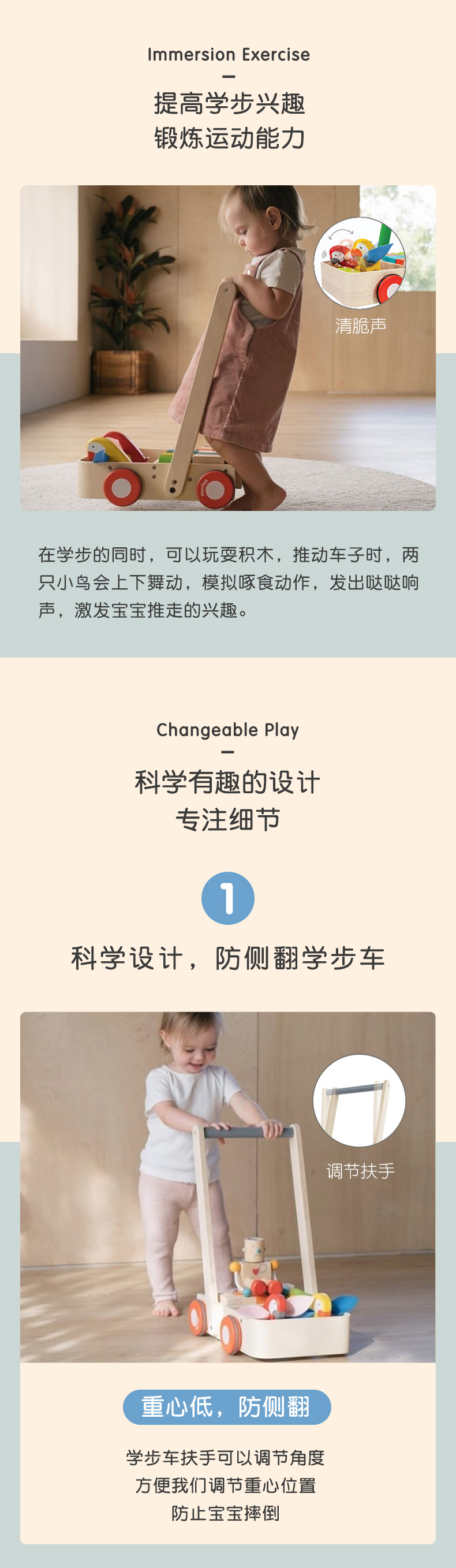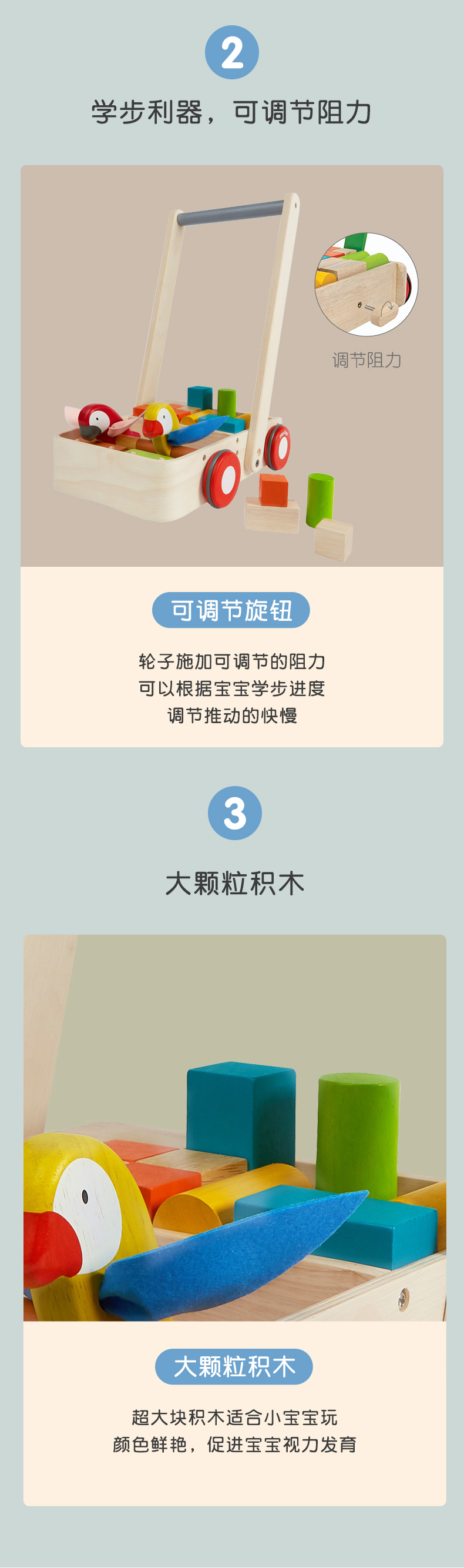 【PlanToys】原装进口PlanToys5176小鸟学步车 可调速大块积木儿童宝宝手推车