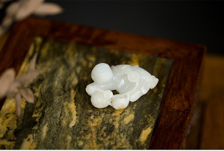 清乾隆 和田玉刘海戏金蟾把件