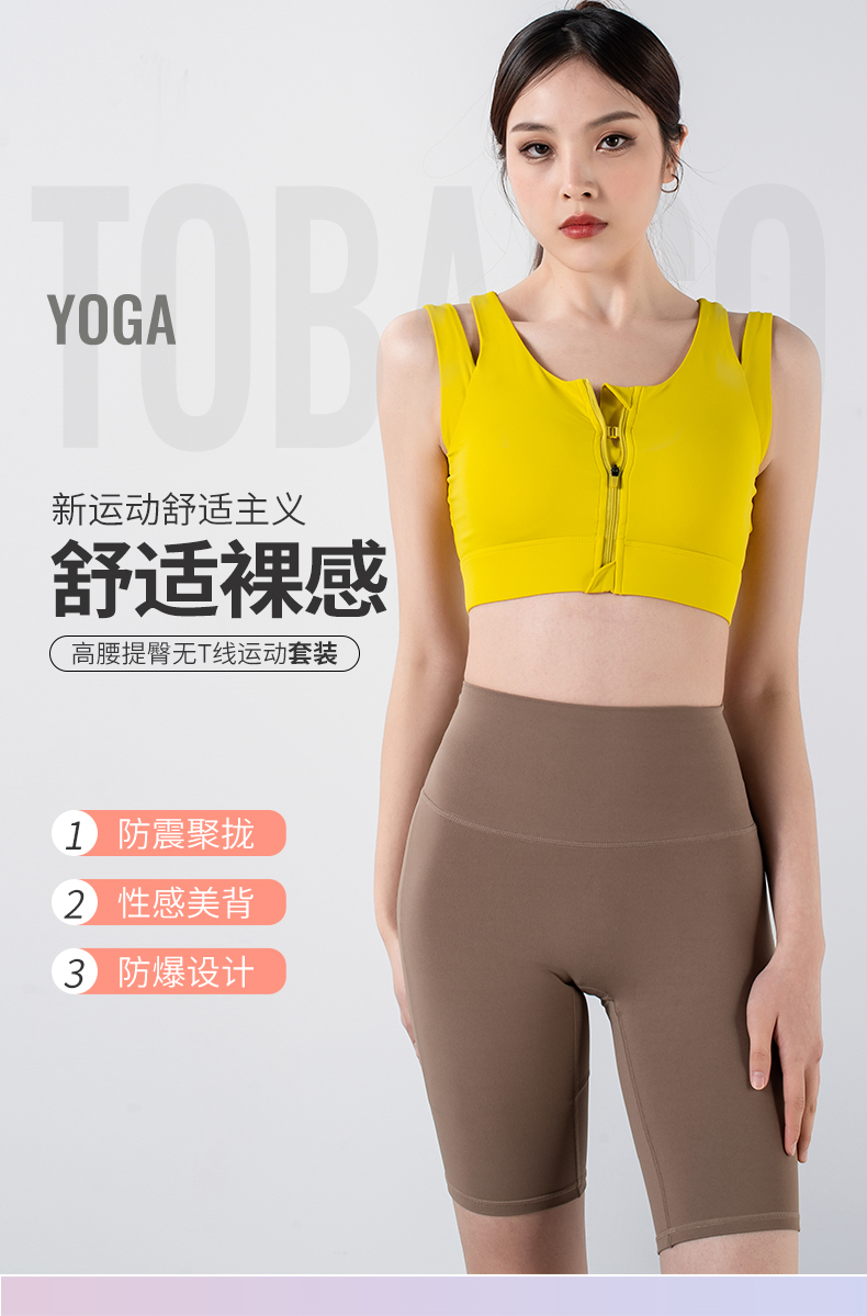 【限时秒】YOGACODE火树银花/高强度前拉链假两件一体式高腰提臀无T线运动瑜伽短裤套装YCDS477+YCDS424