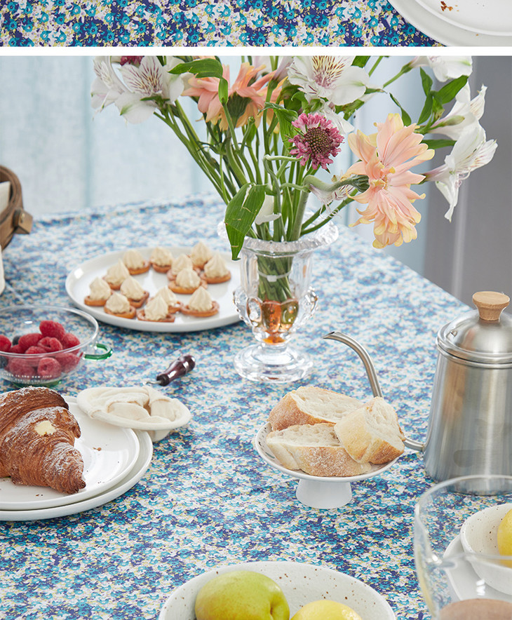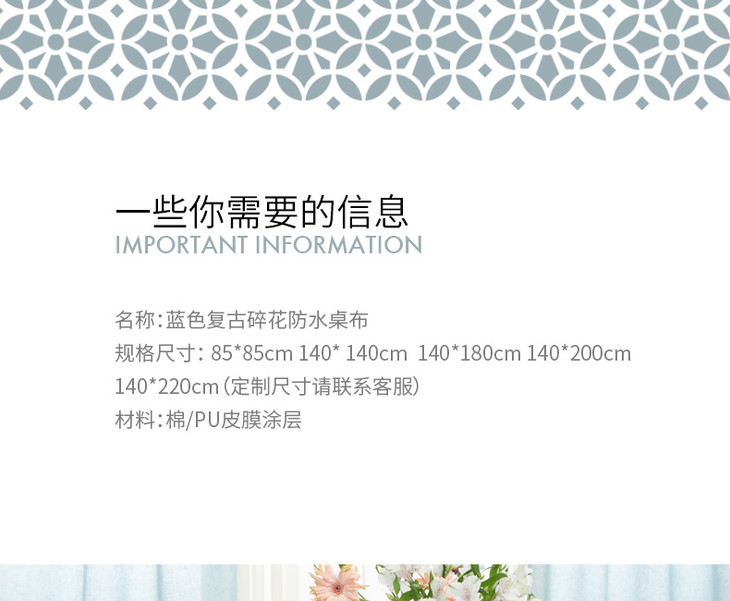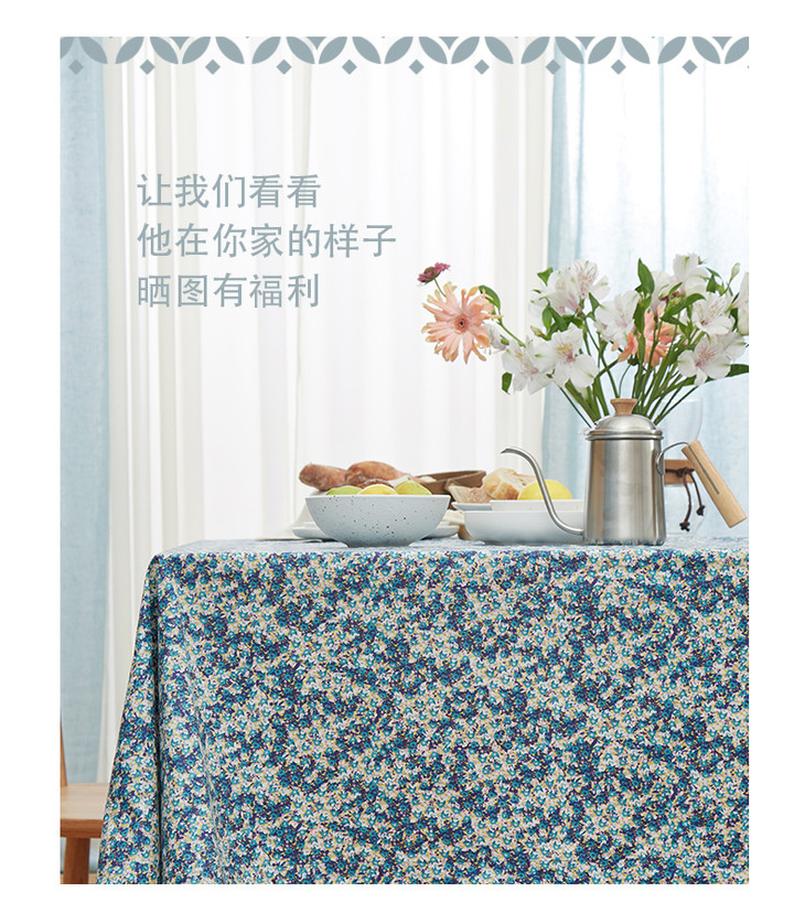 防水桌布美式田园桌布餐桌布蓝色复古小花桌布