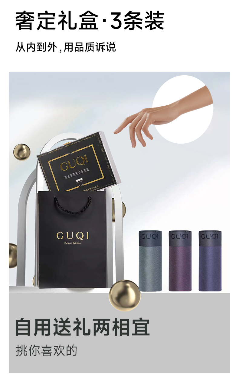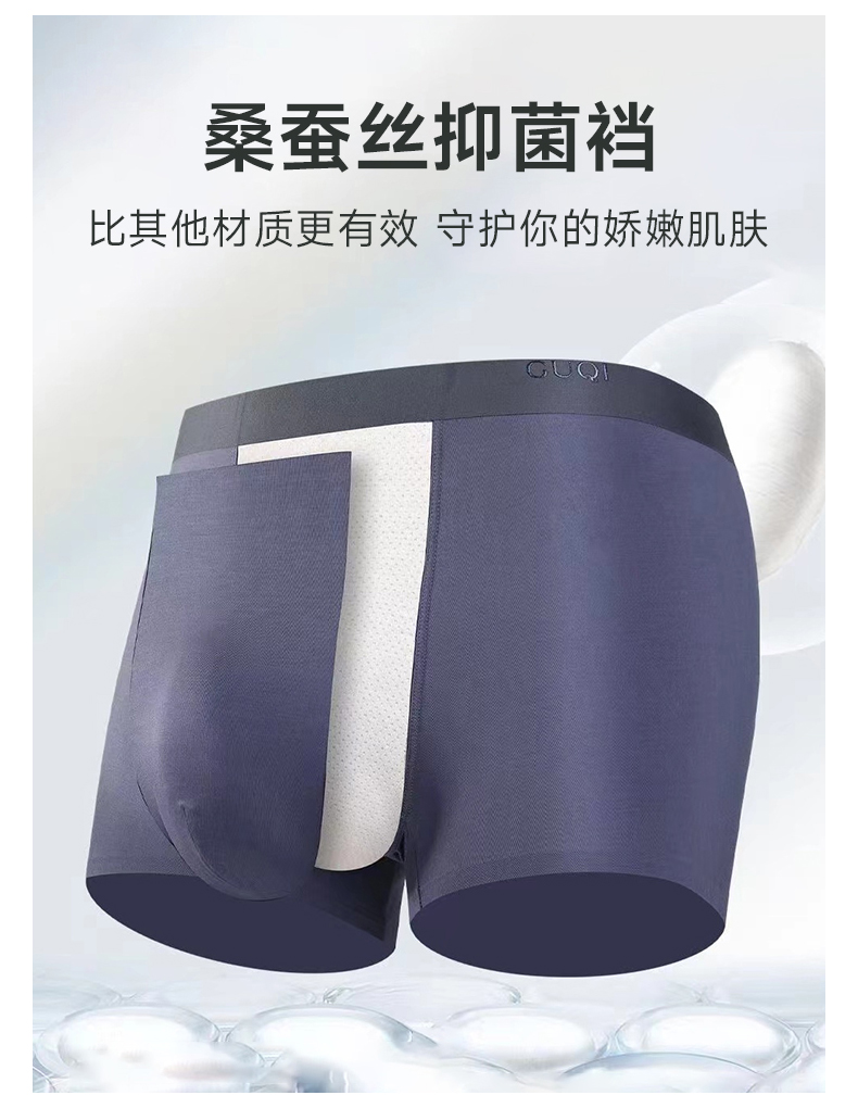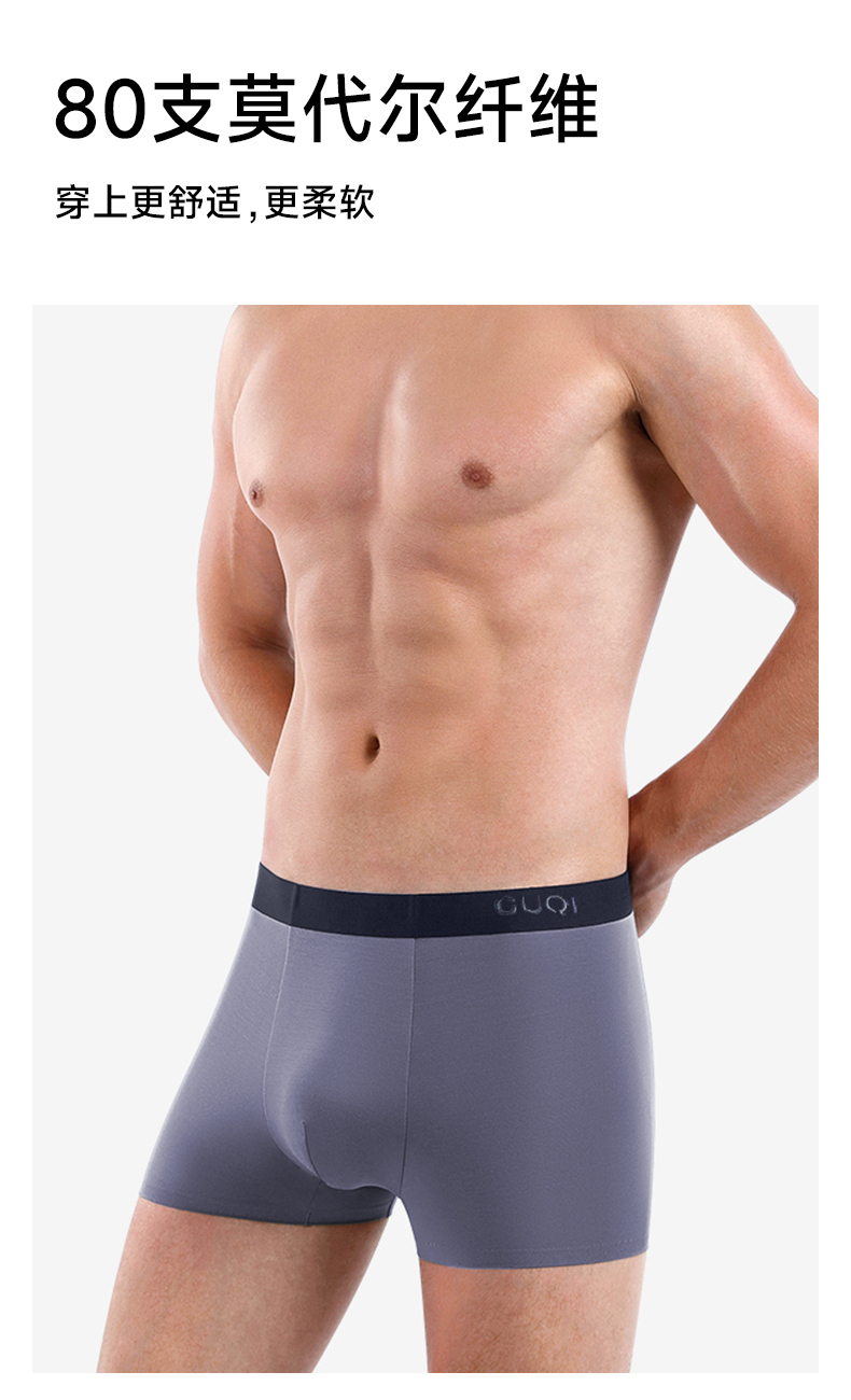 【古齐】【3条装】蚕丝内裤莫代尔弹力升级男士平角大码内裤四角透气舒适礼盒装