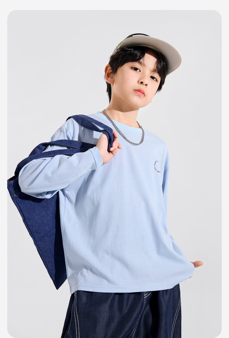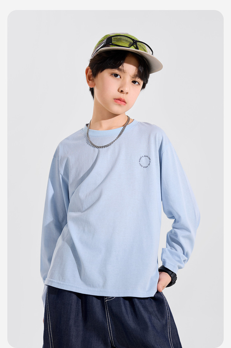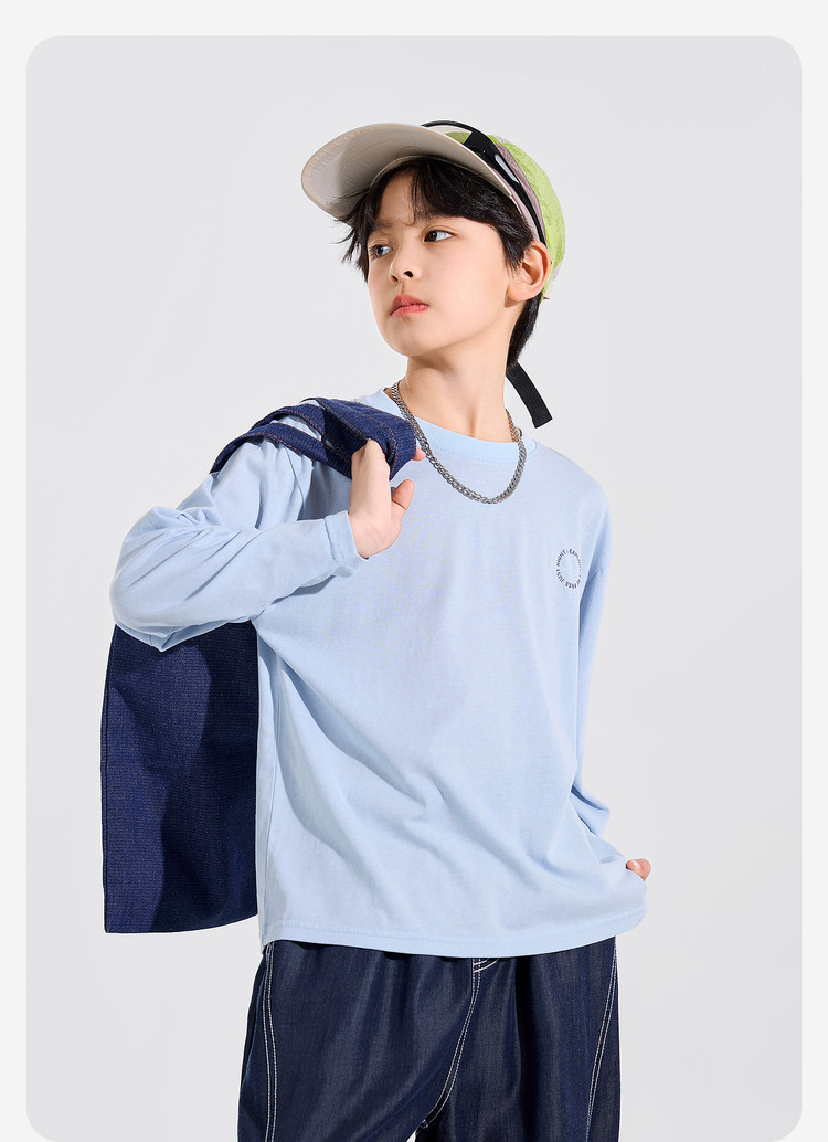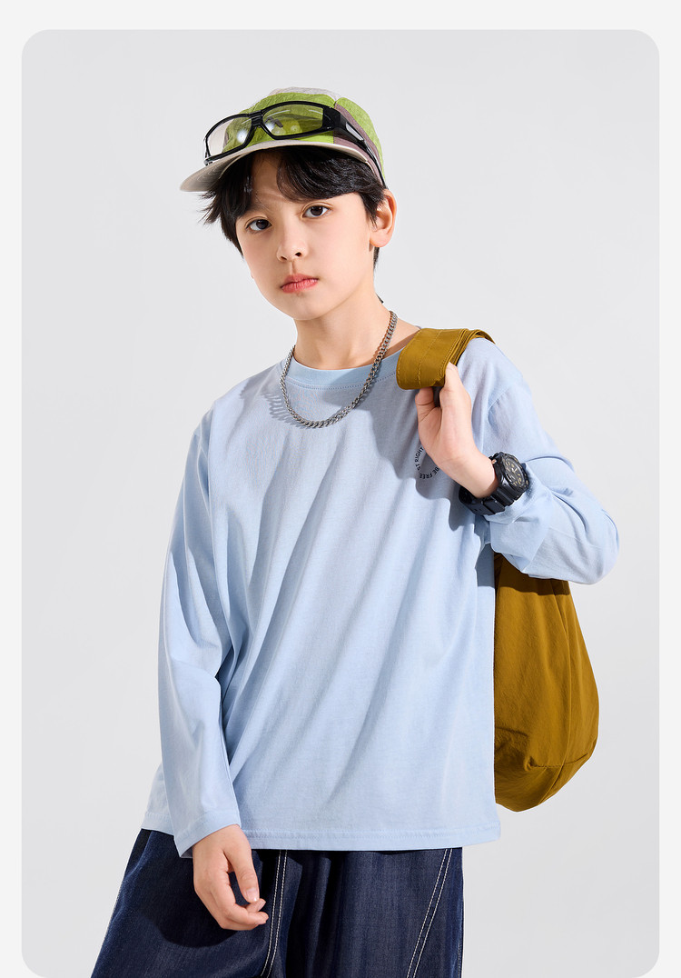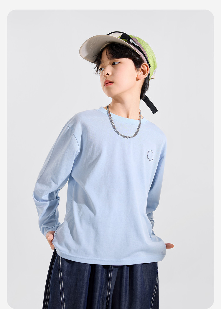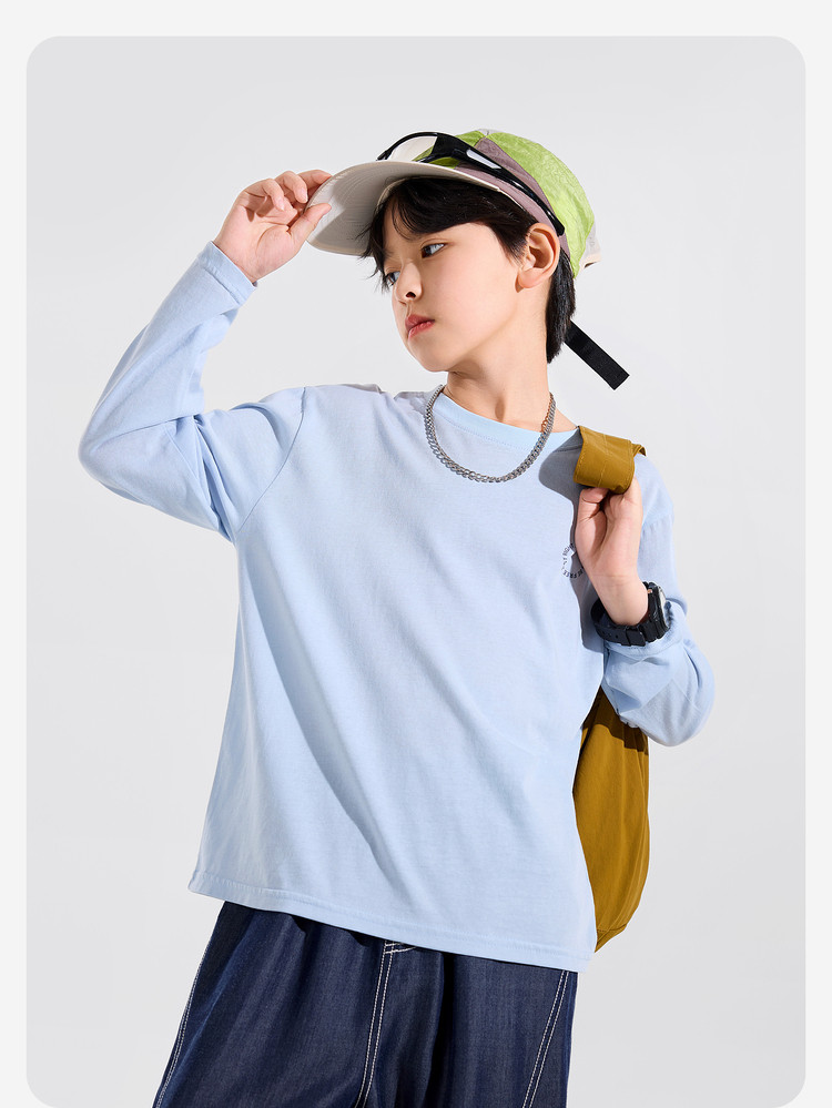 【耐磨】Bluem中大童T恤宽松春秋款儿童打底衫时髦男童上衣新款男孩衣服春Z6ATX131