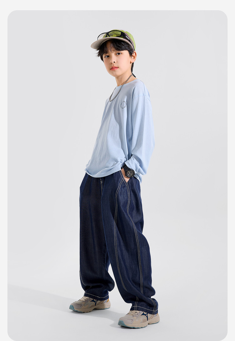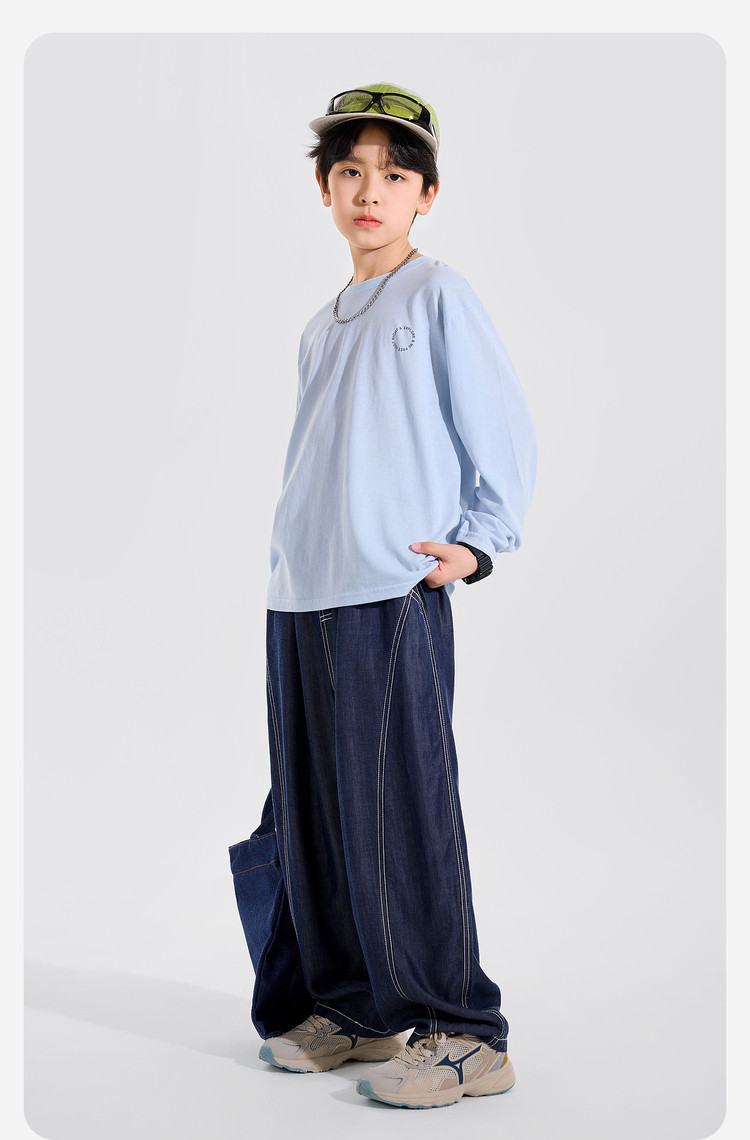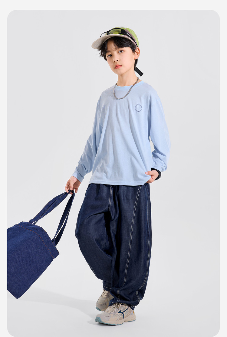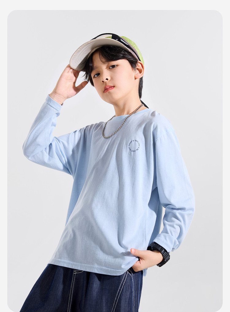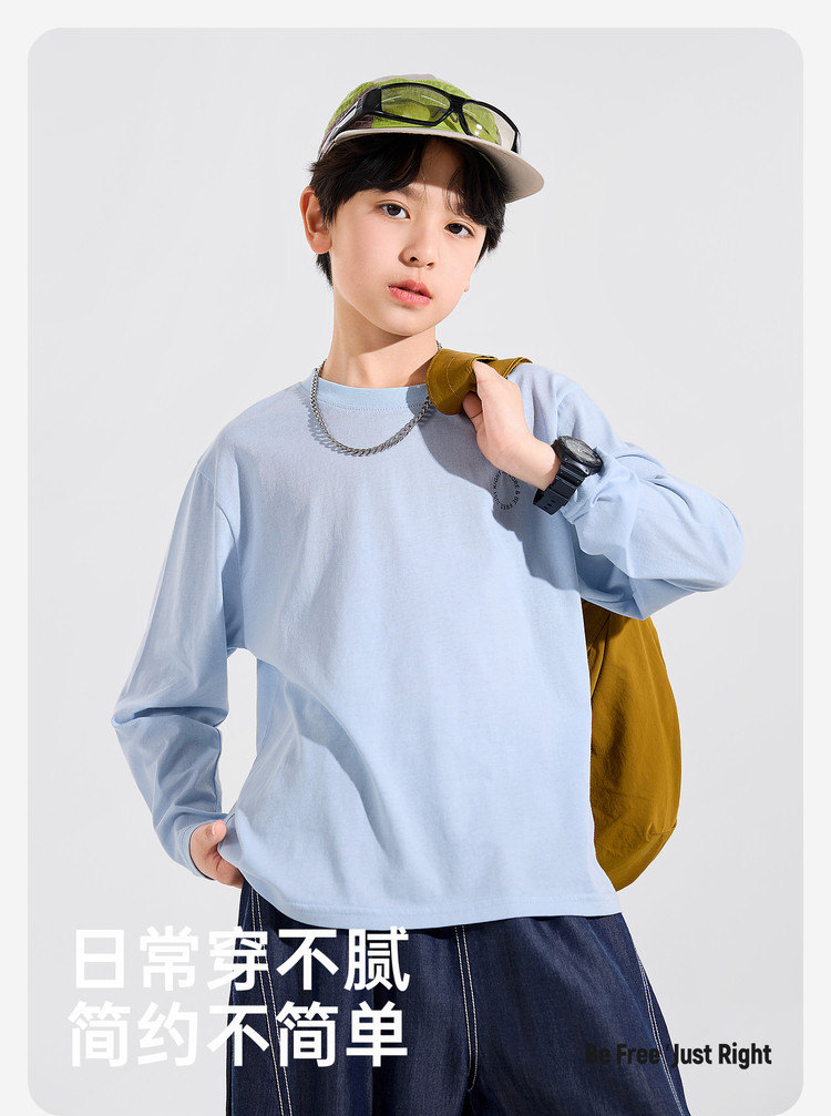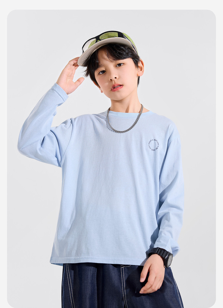 【耐磨】Bluem中大童T恤宽松春秋款儿童打底衫时髦男童上衣新款男孩衣服春Z6ATX131