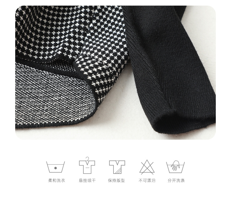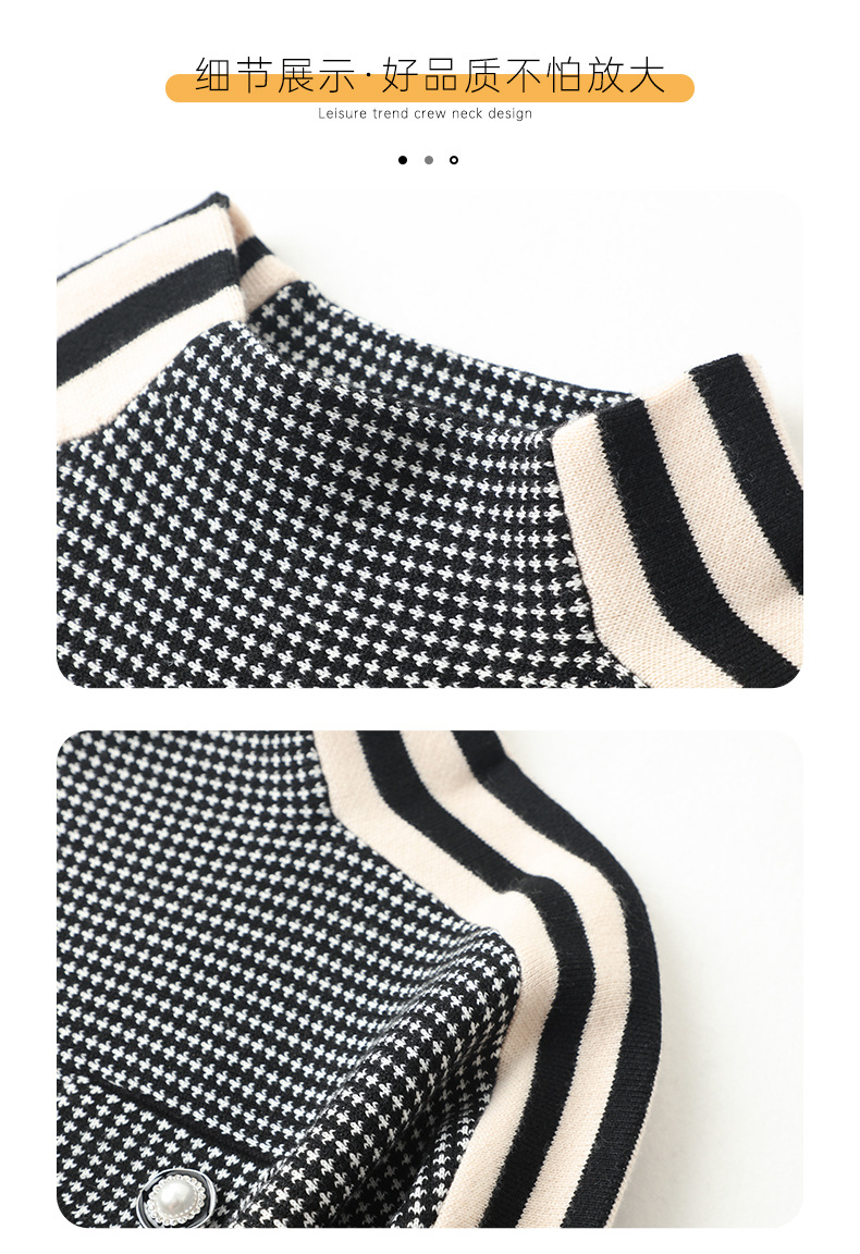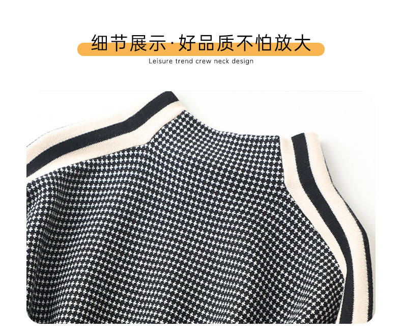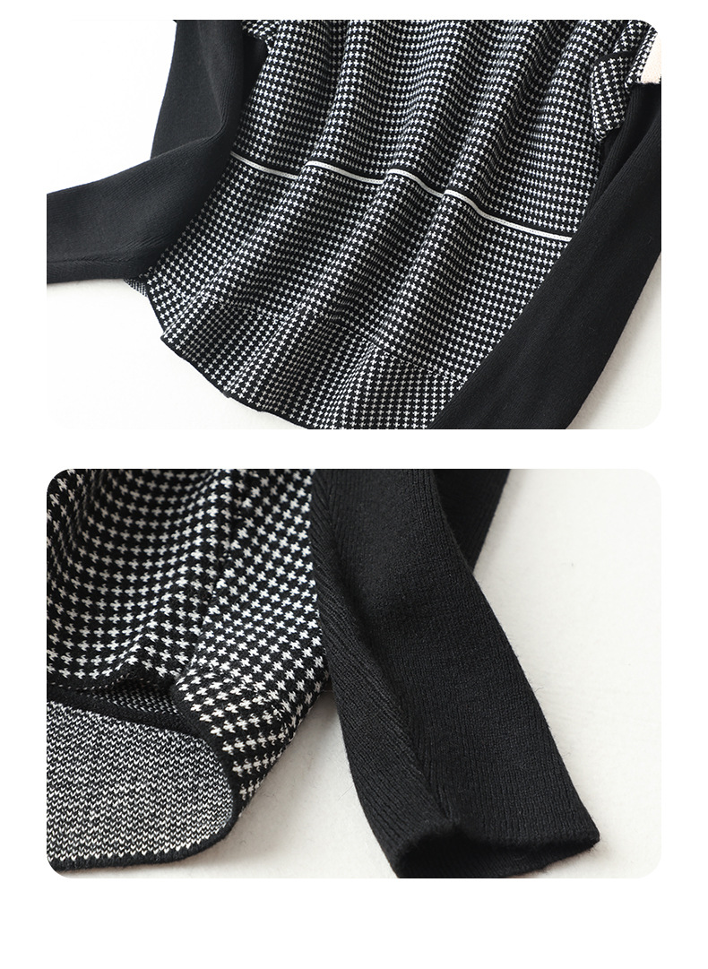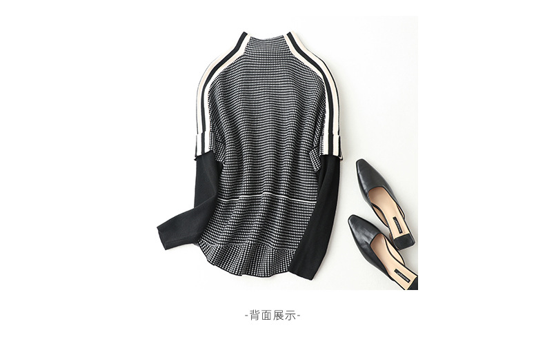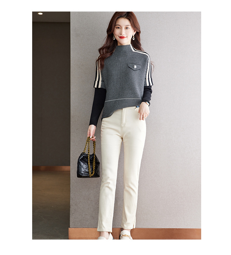 半高领细格纹毛衣,女秋冬新款假两件拼接长袖打底针织衫CC-JDS-8601