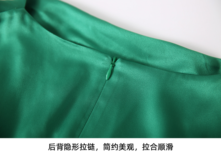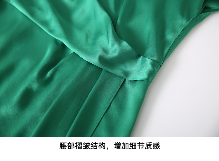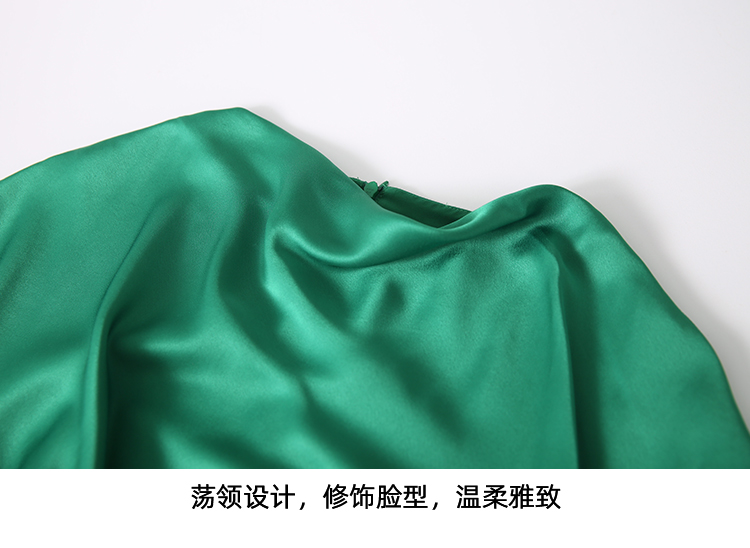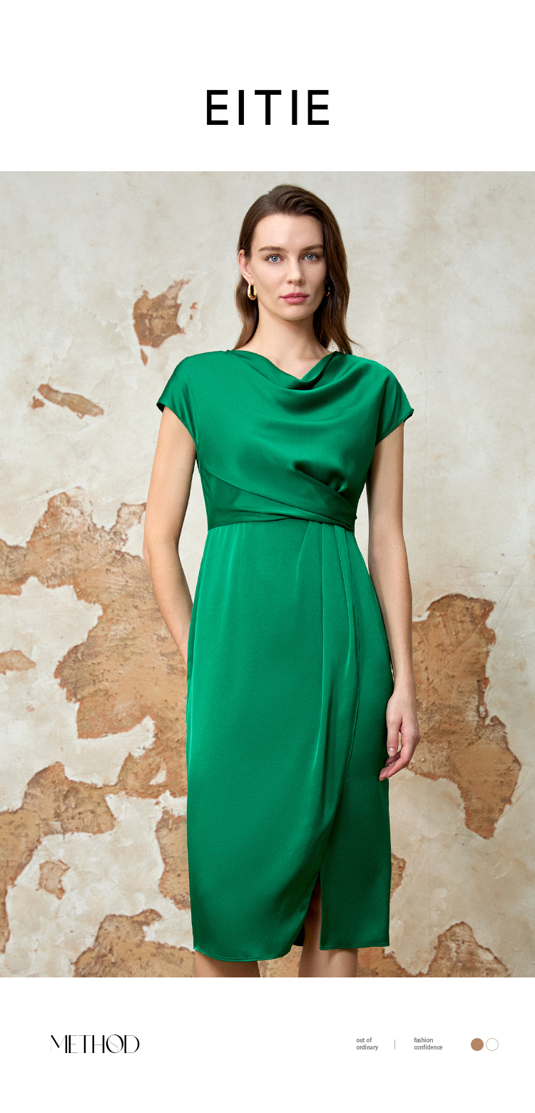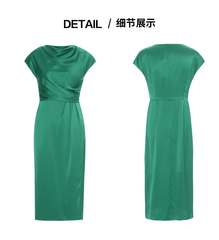 EITIE爱特爱气质荡领提褶收腰开叉缎面连衣裙夏新款8207938