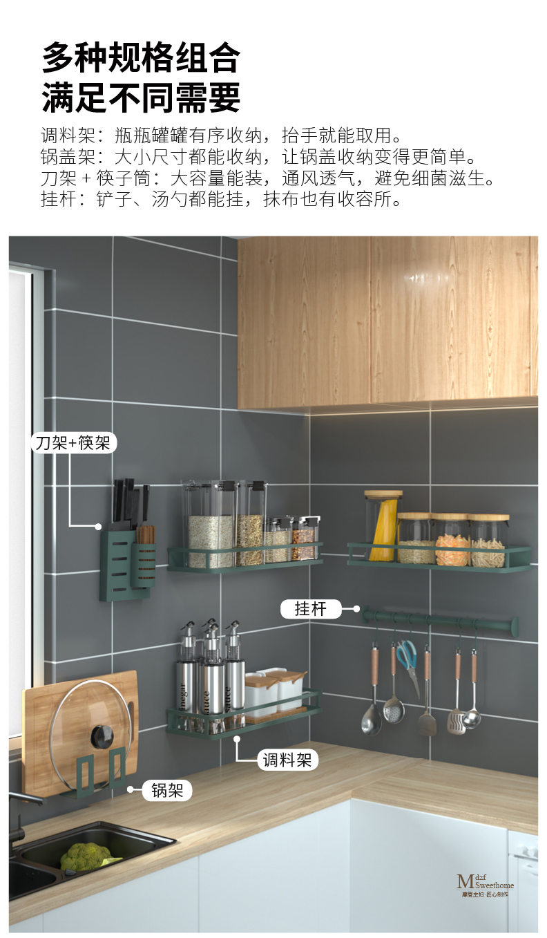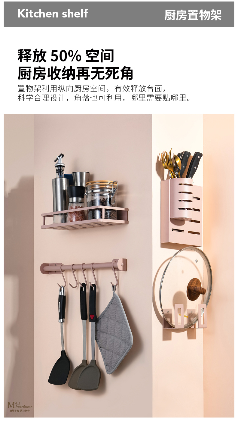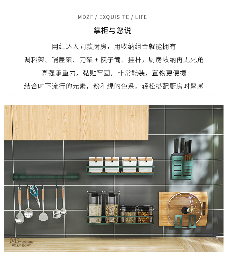 摩登主妇厨房置物架免打孔壁挂式家用调味料用品大全刀架挂架收纳