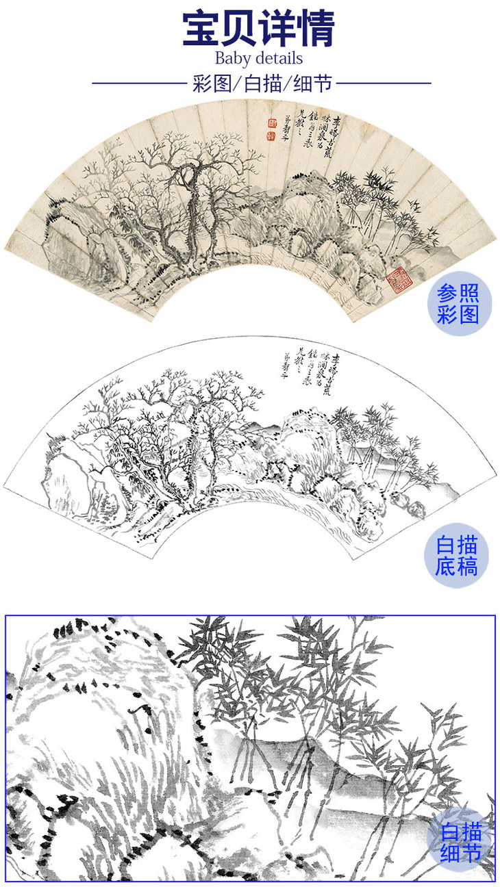 恽寿平没骨花鸟白描底稿-扇面小品-SP04