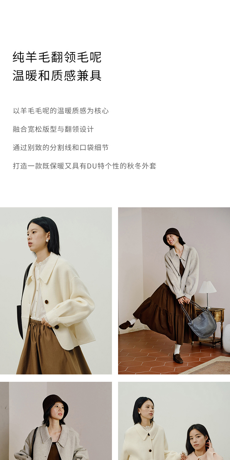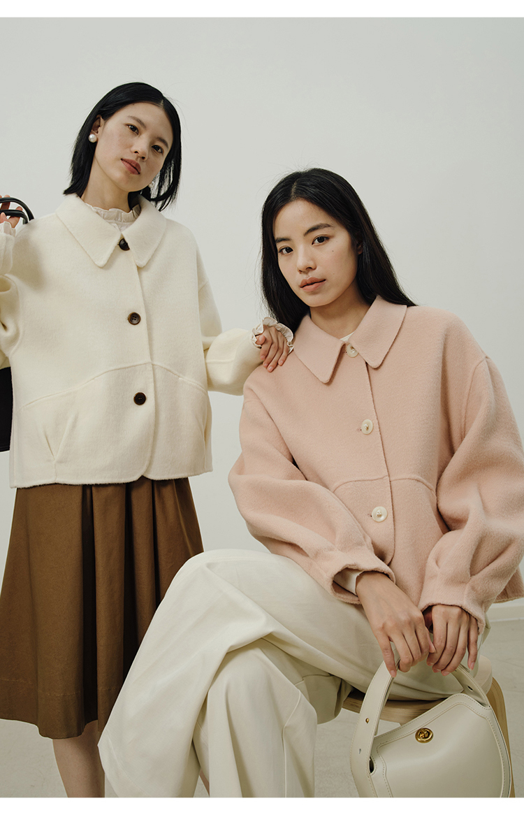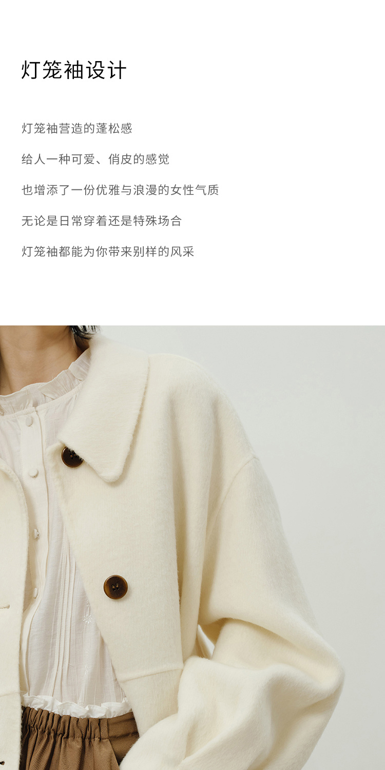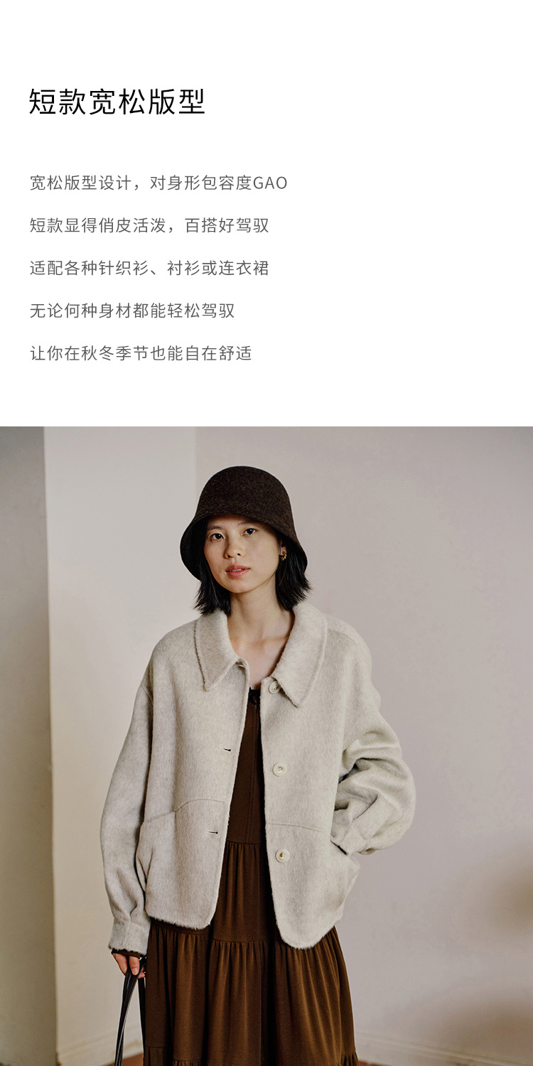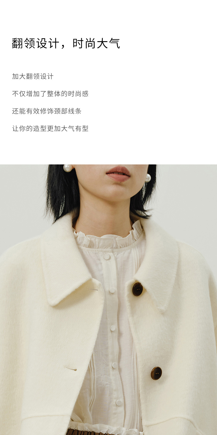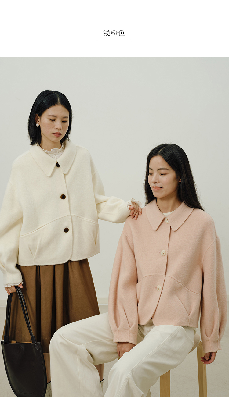 Heydress翻领毛呢外套女秋冬宽松显瘦羊毛大衣气质百搭短款双面呢