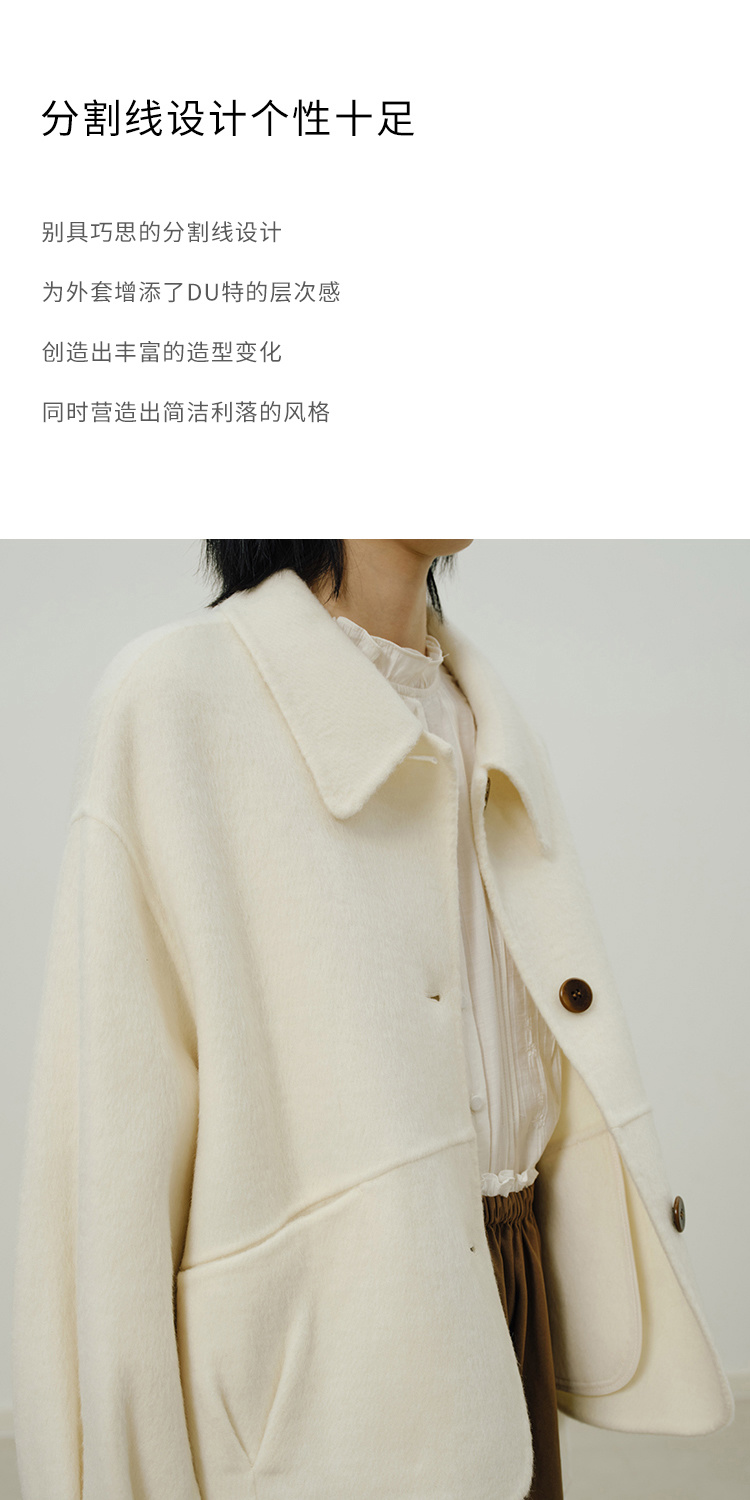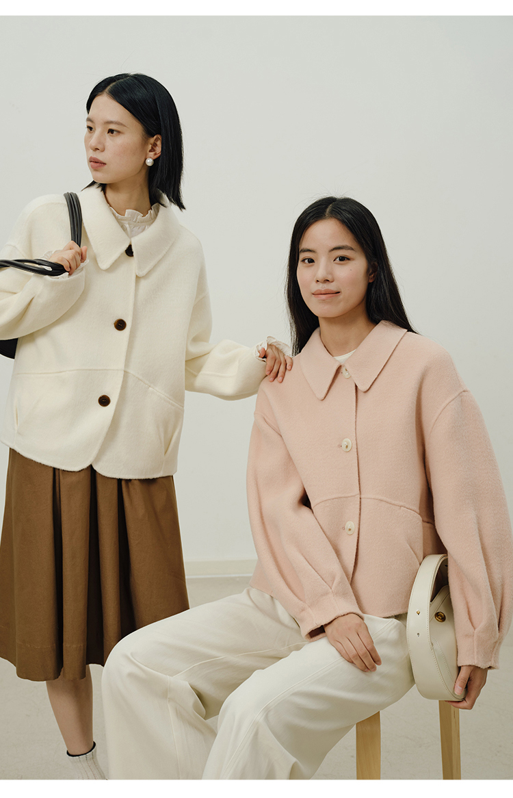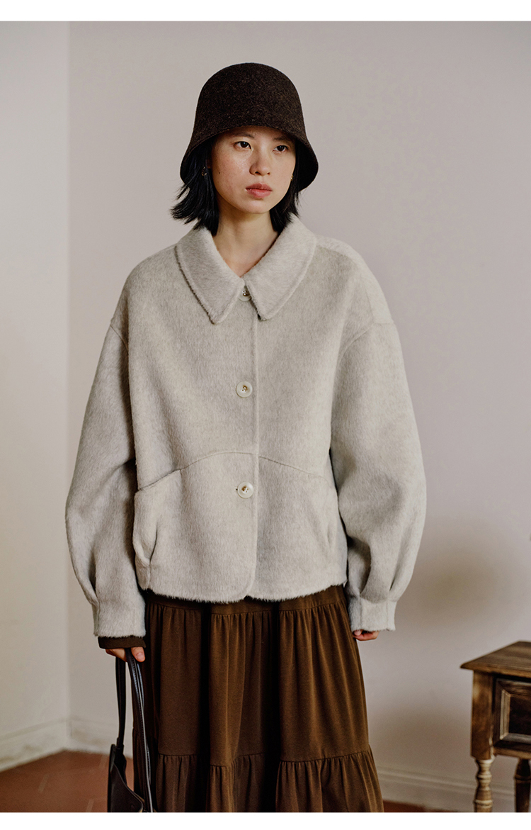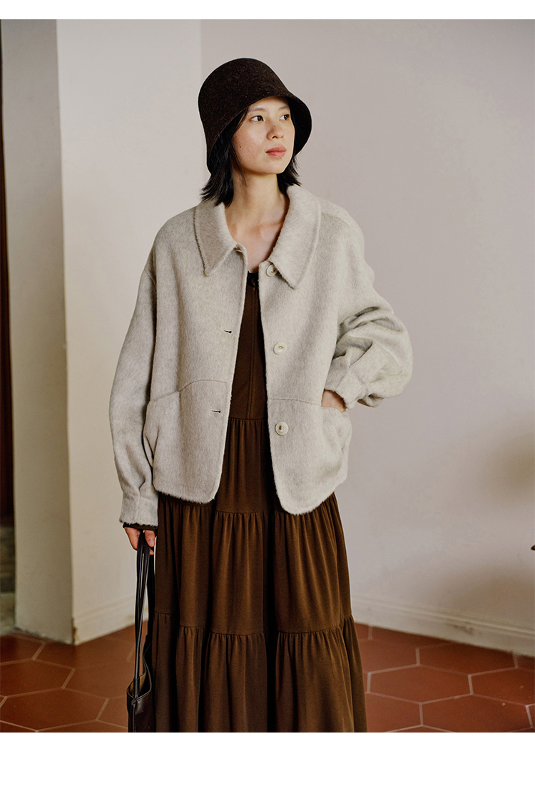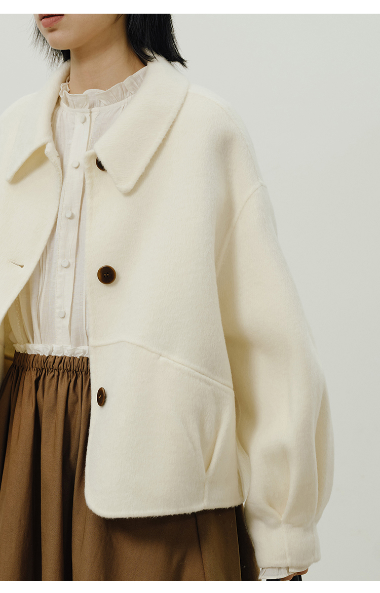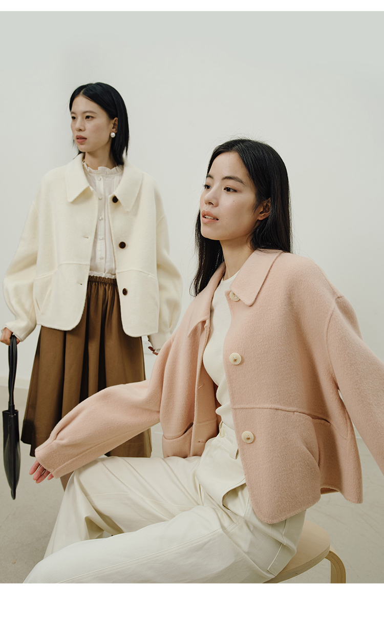 Heydress翻领毛呢外套女秋冬宽松显瘦羊毛大衣气质百搭短款双面呢