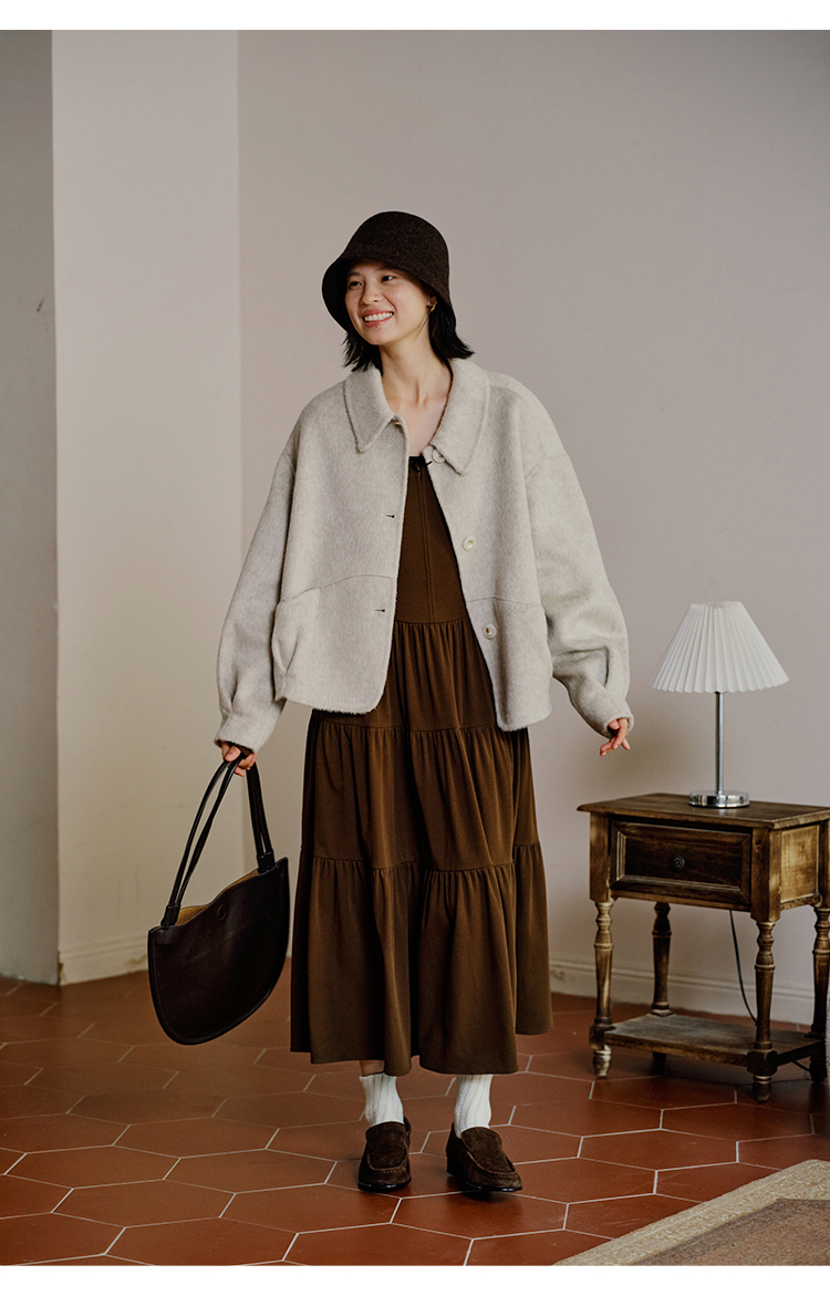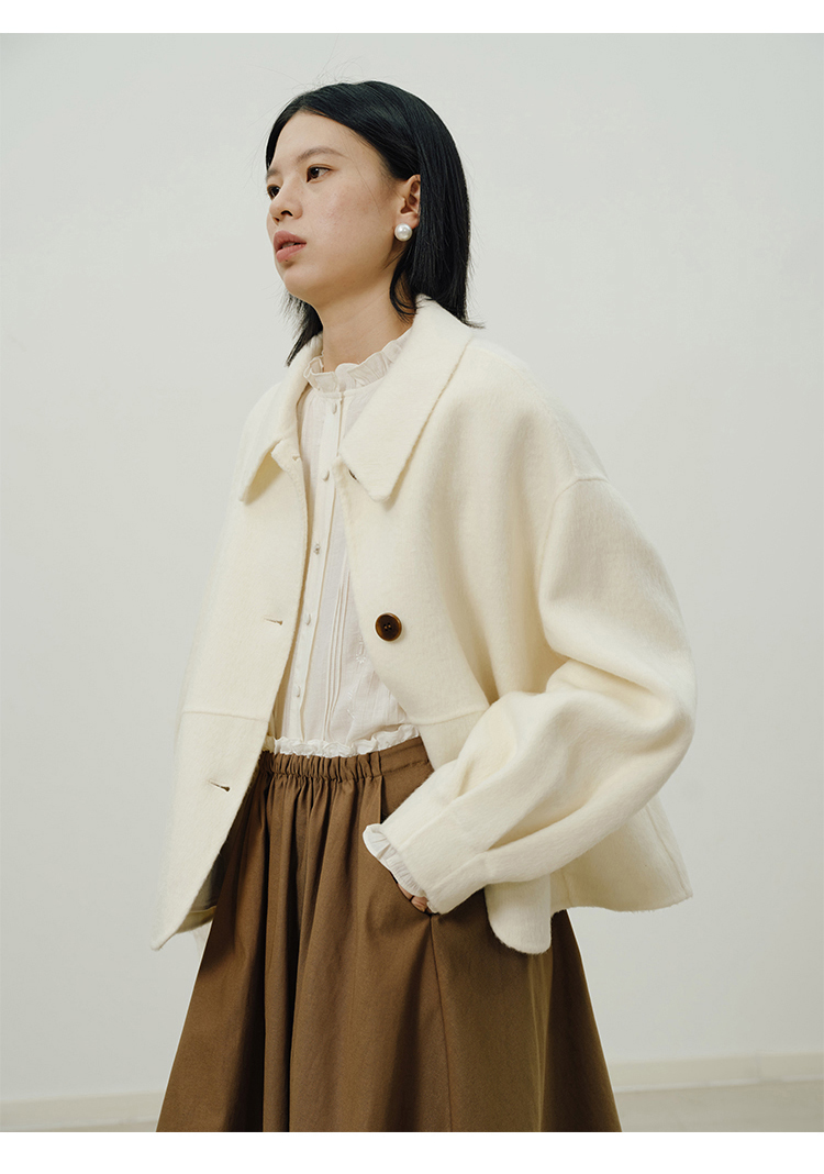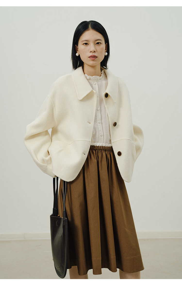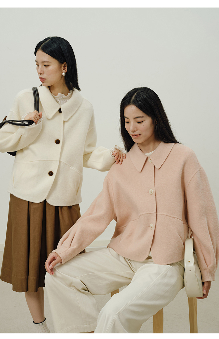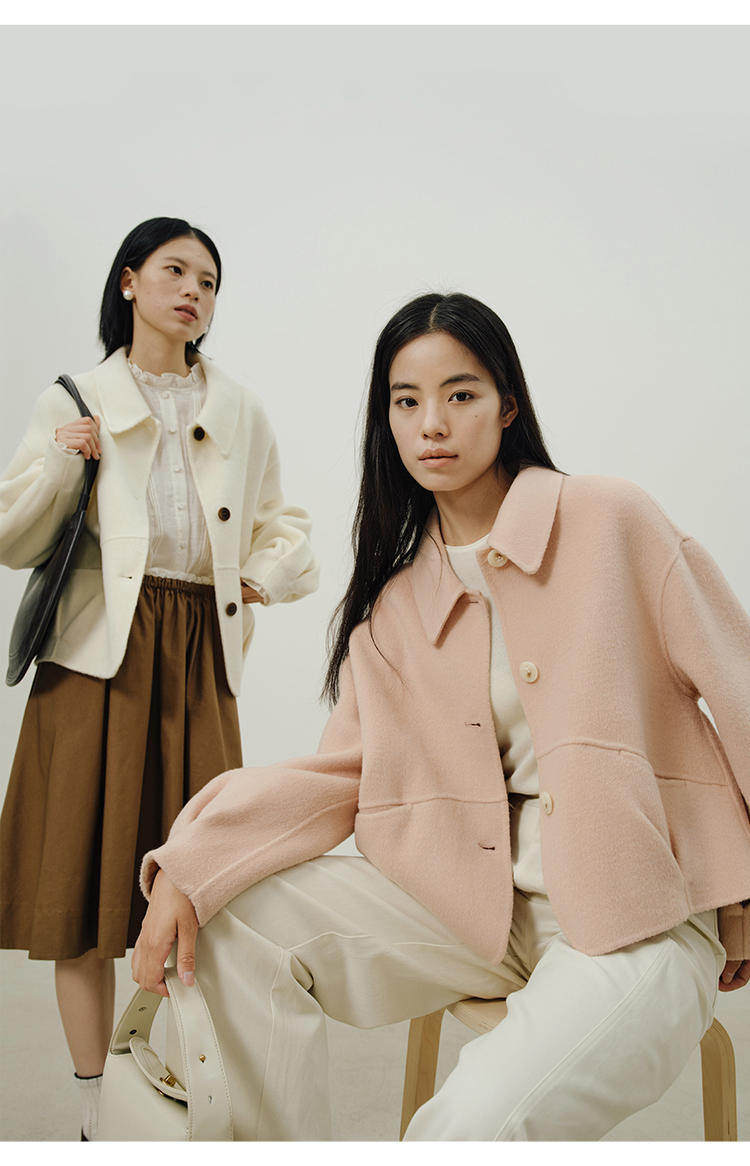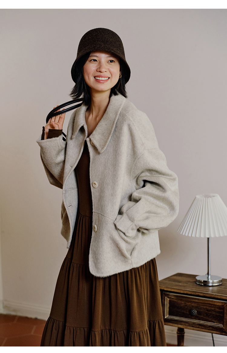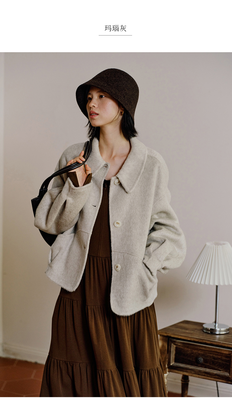 Heydress翻领毛呢外套女秋冬宽松显瘦羊毛大衣气质百搭短款双面呢