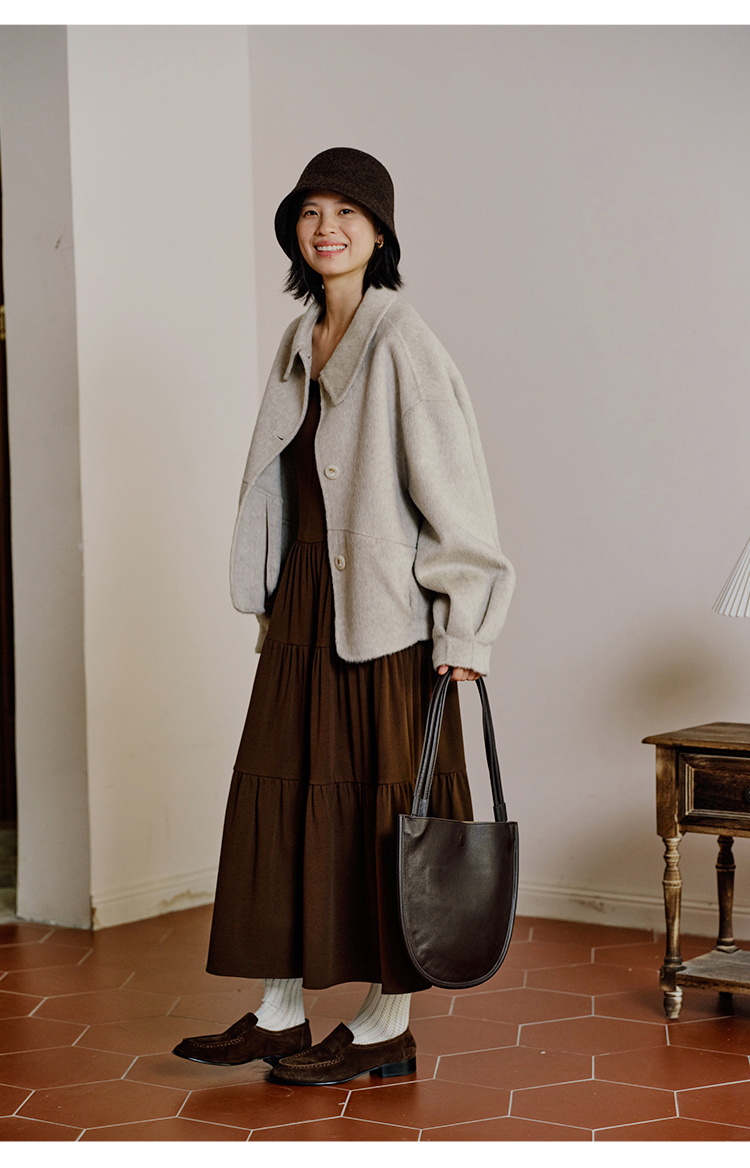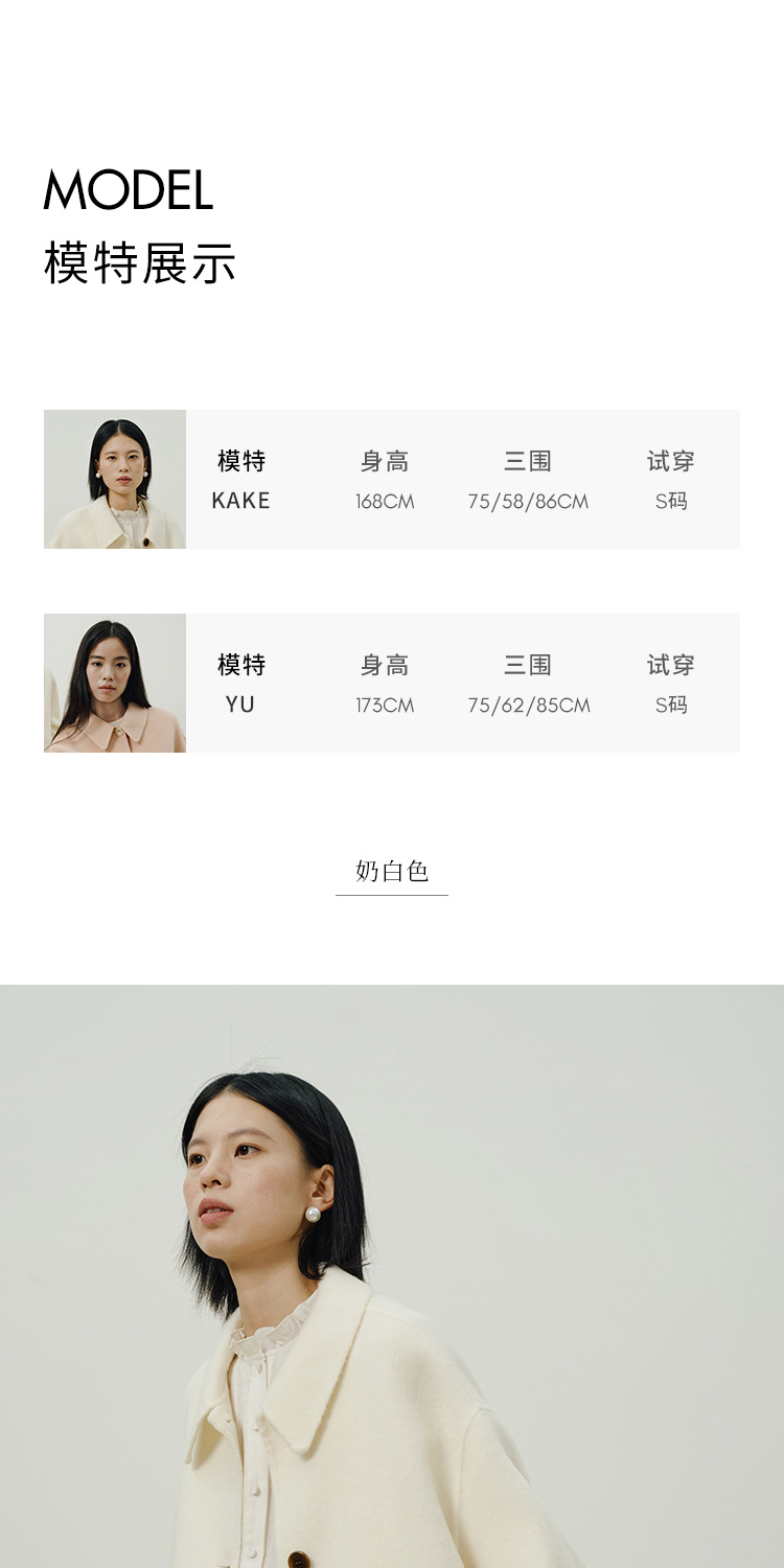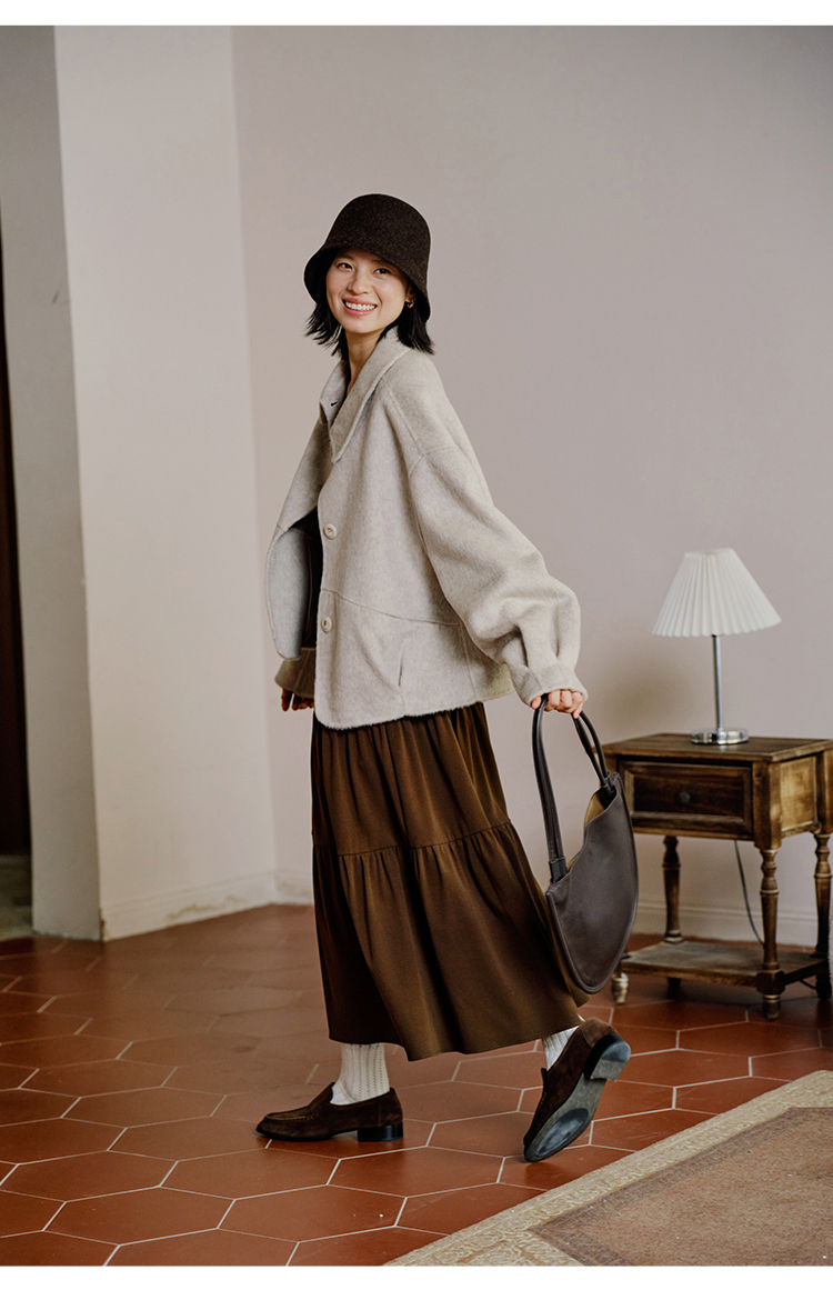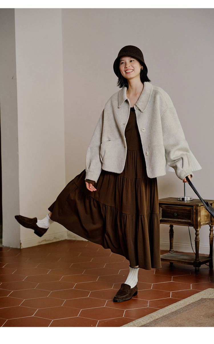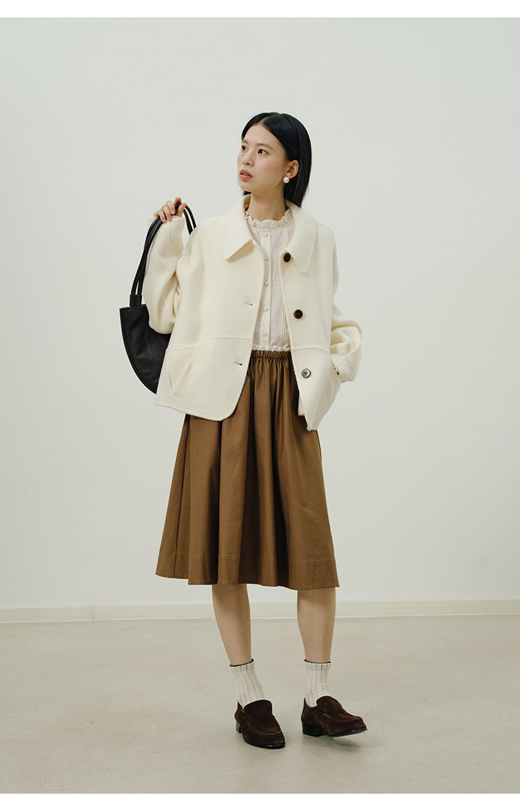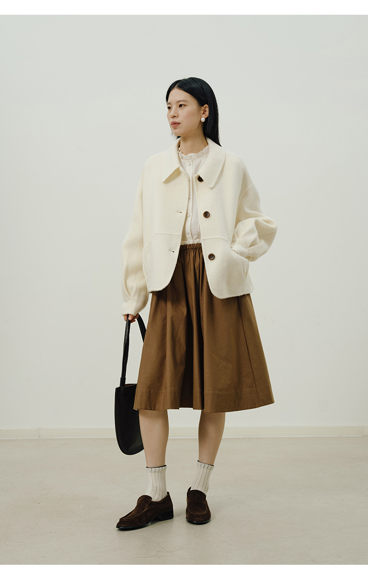 Heydress翻领毛呢外套女秋冬宽松显瘦羊毛大衣气质百搭短款双面呢