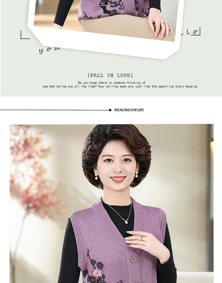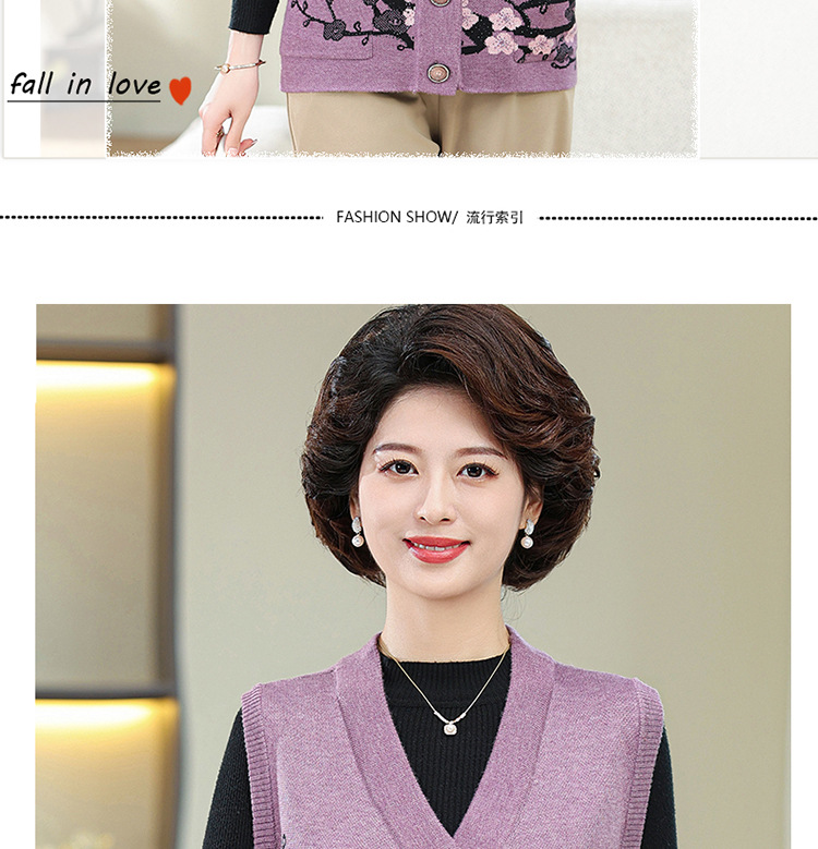 W106-9182-60-108春秋马甲中老年人女妈妈背心衣服太太春装马夹薄款加大码