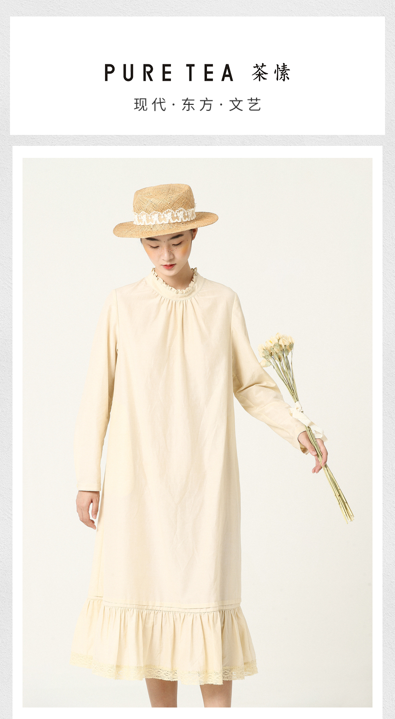 EIN杏色文艺范连衣裙TD22033