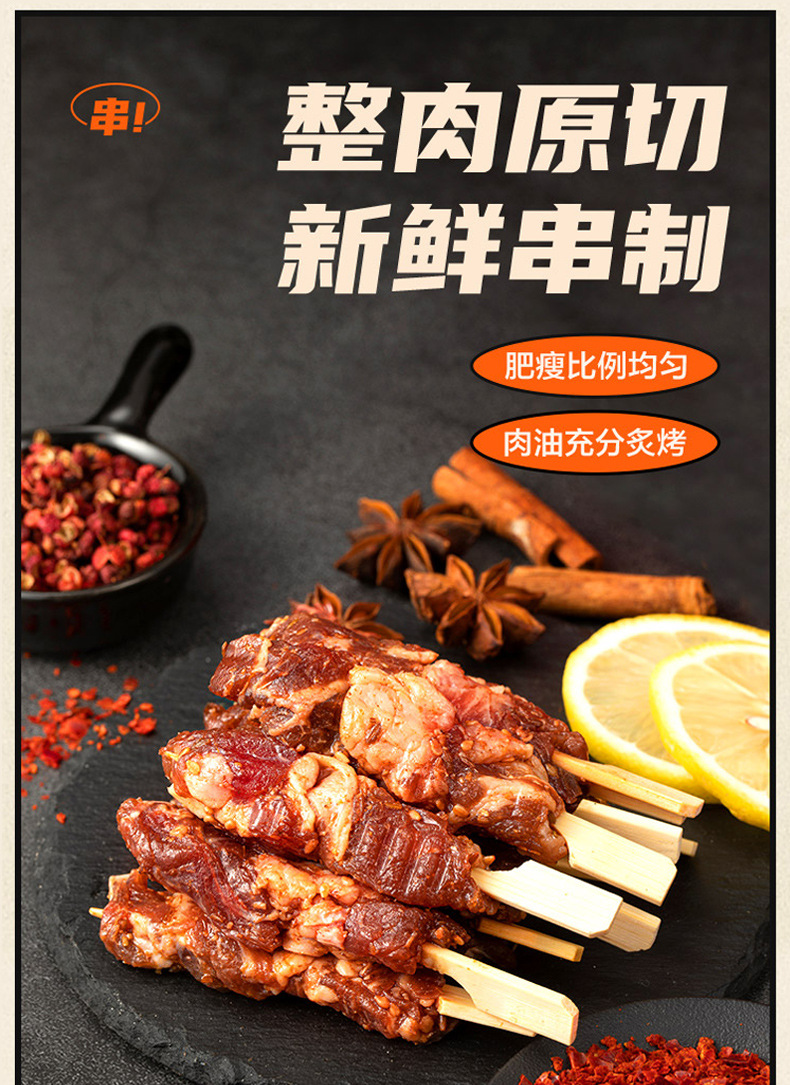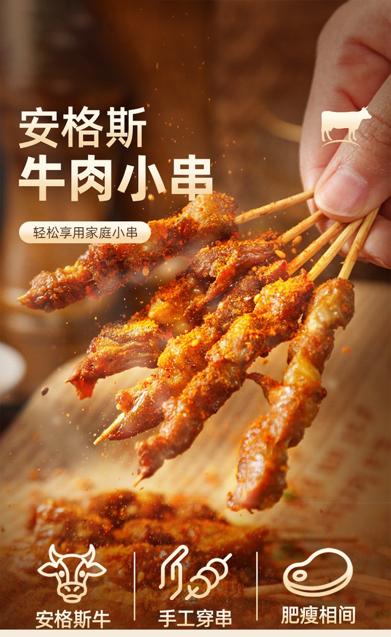 【安格斯牛肉小串,轻松享用家庭小串~】安格斯谷饲牛肉串 整切静腌炸烤串 空气炸锅烧烤食材半成品-QQ