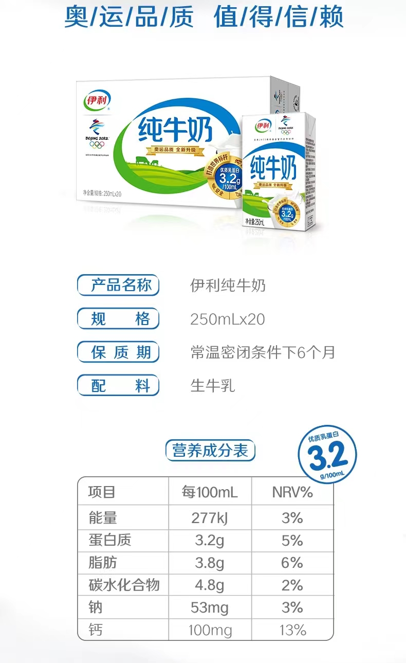 【伊利】伊利盒装纯牛奶250ml*20盒