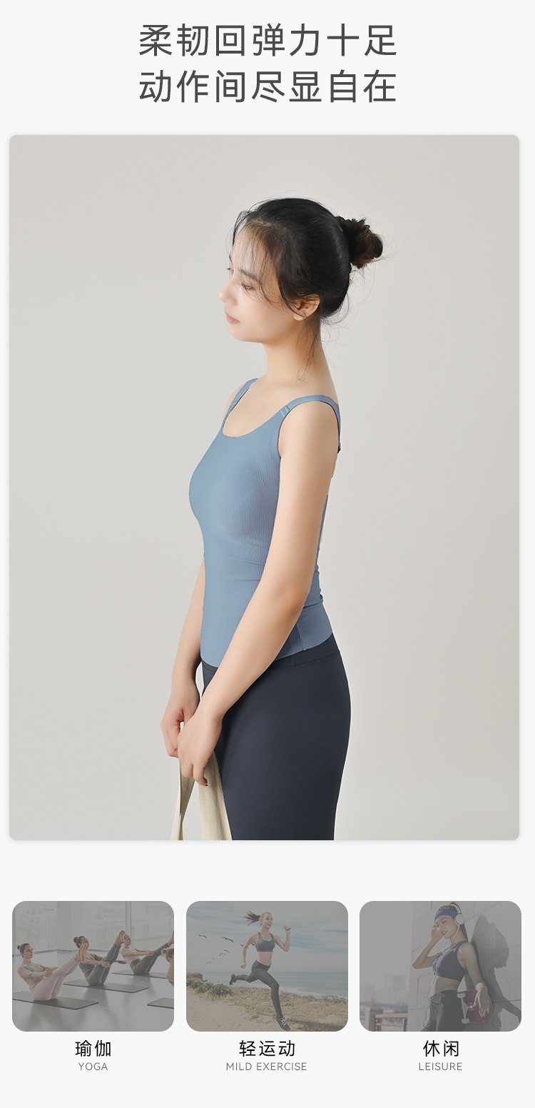 C1213艾扬格 life 瑜伽无袖带胸垫建身小吊带 螺纹简约背心秋冬打底背心 可调节肩带 软绵亲肤 显示背部线条