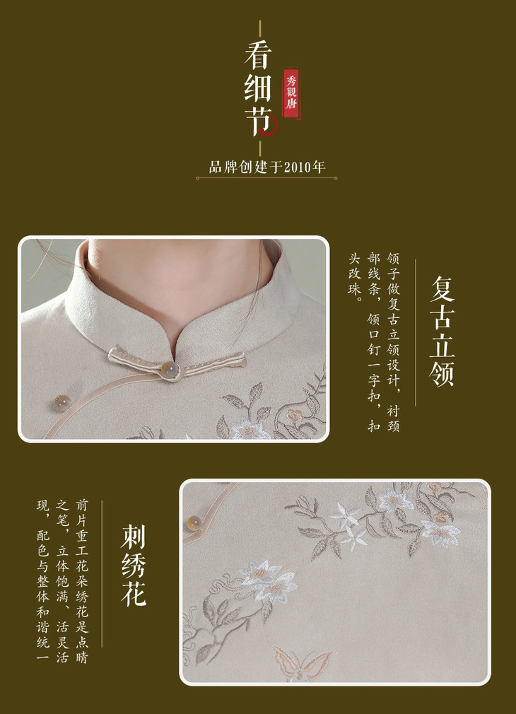 【花雅】秋冬装麂皮绒绣花改良中国风旗袍连衣裙T25132 商品图2