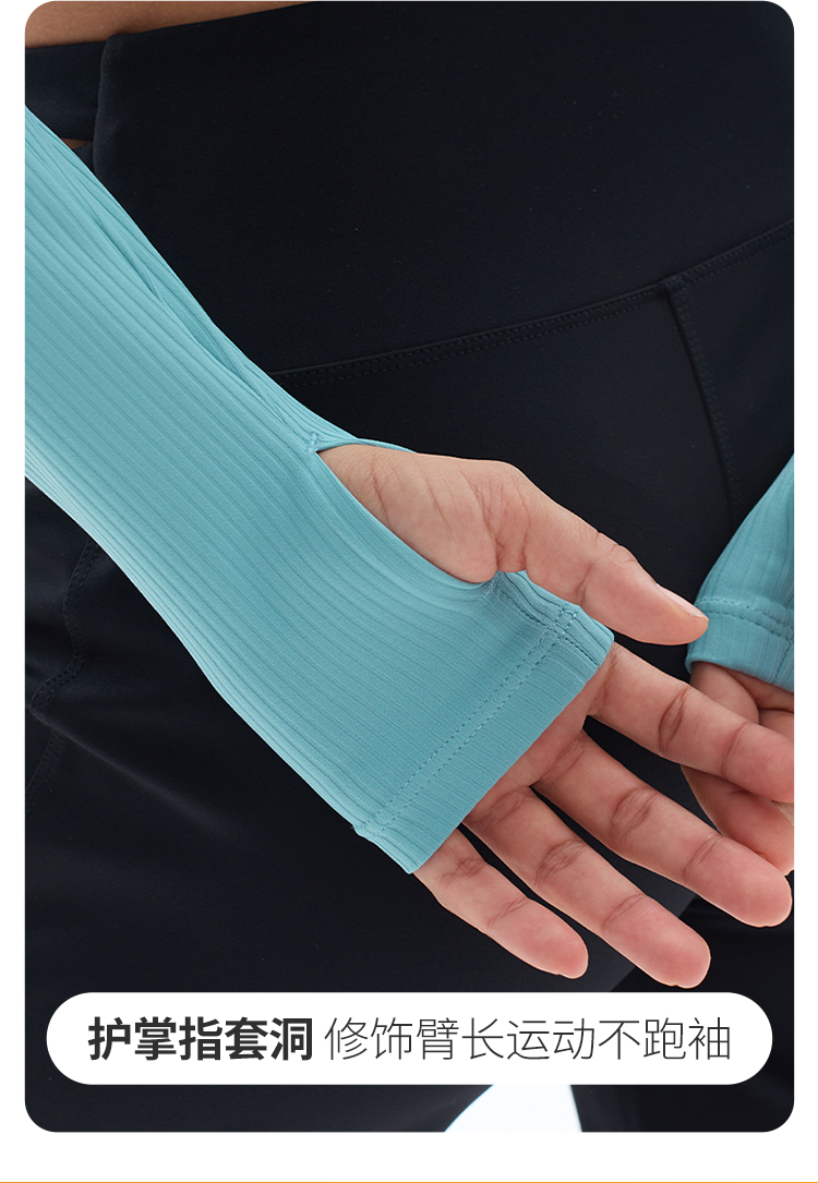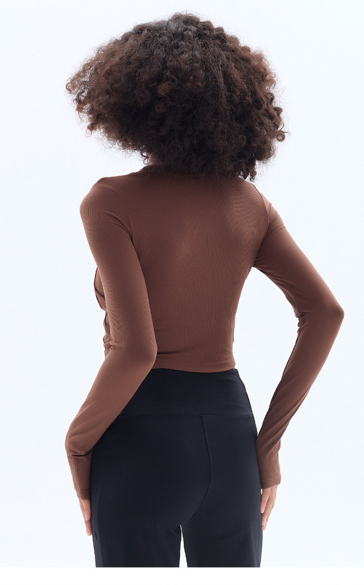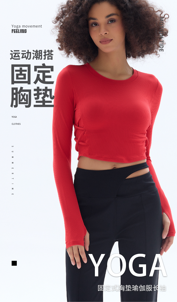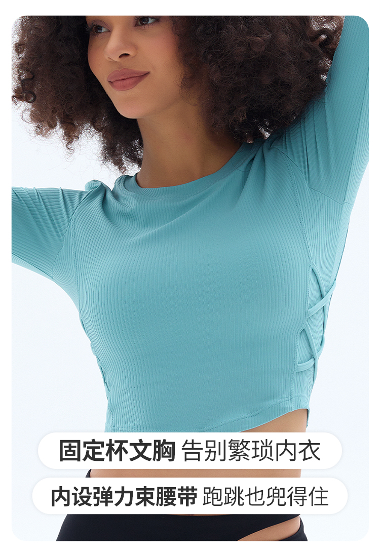跃牌【小甜心】系列 固定式胸垫瑜伽服长袖罗纹运动上衣女9067