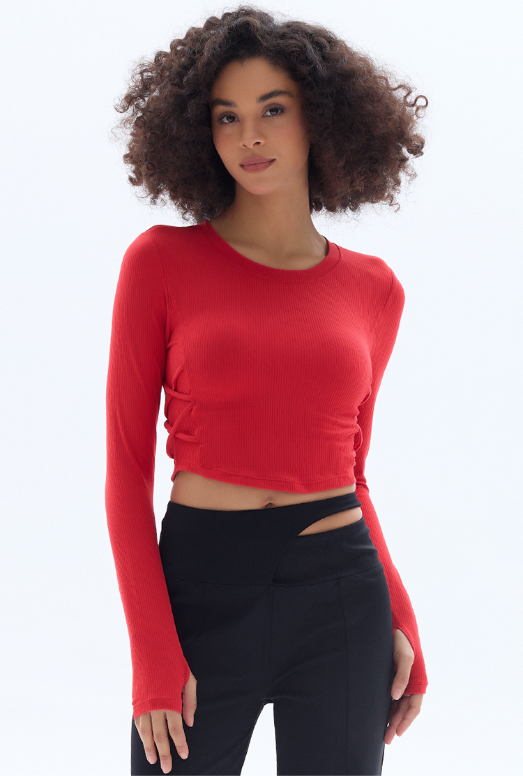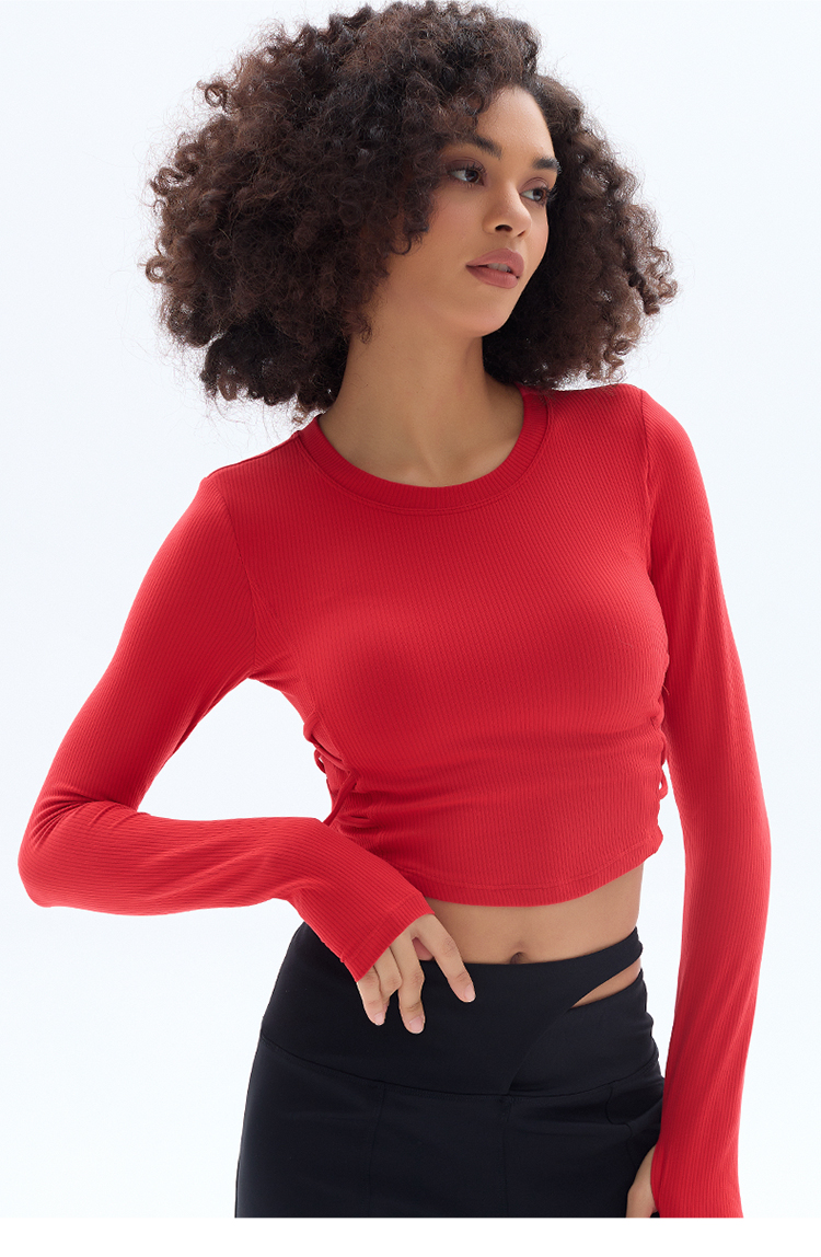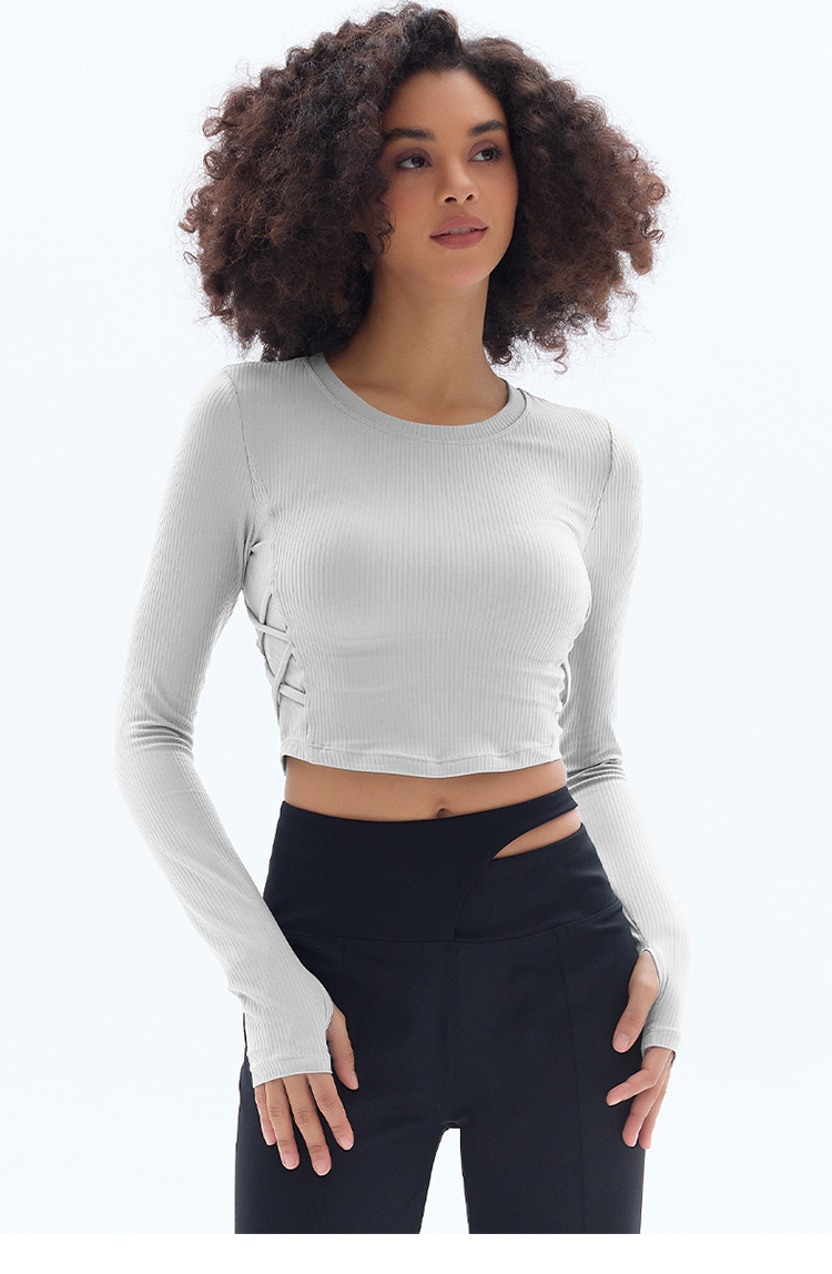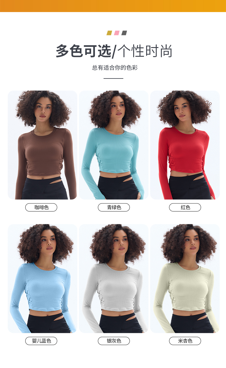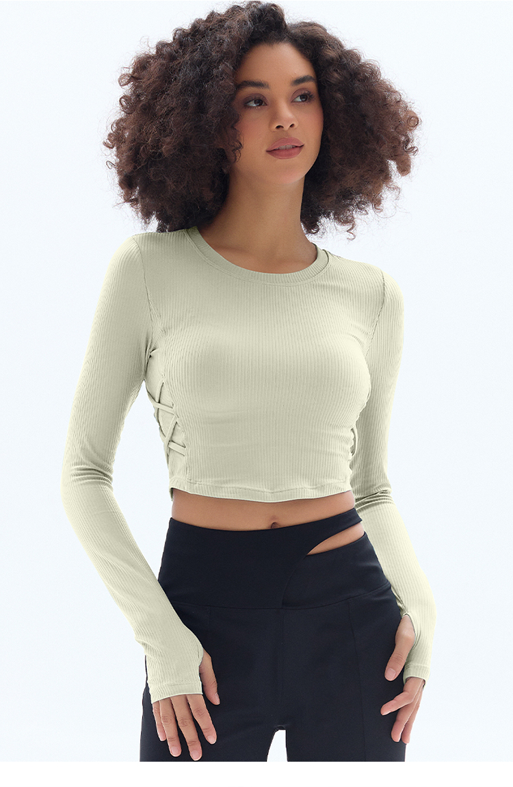跃牌【小甜心】系列 固定式胸垫瑜伽服长袖罗纹运动上衣女9067