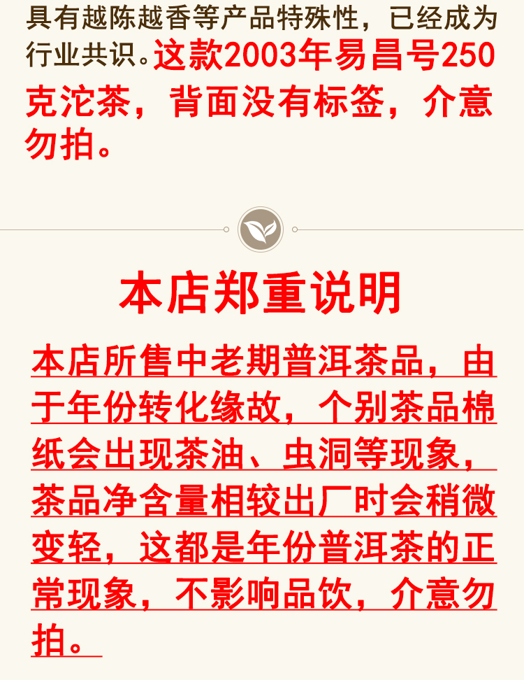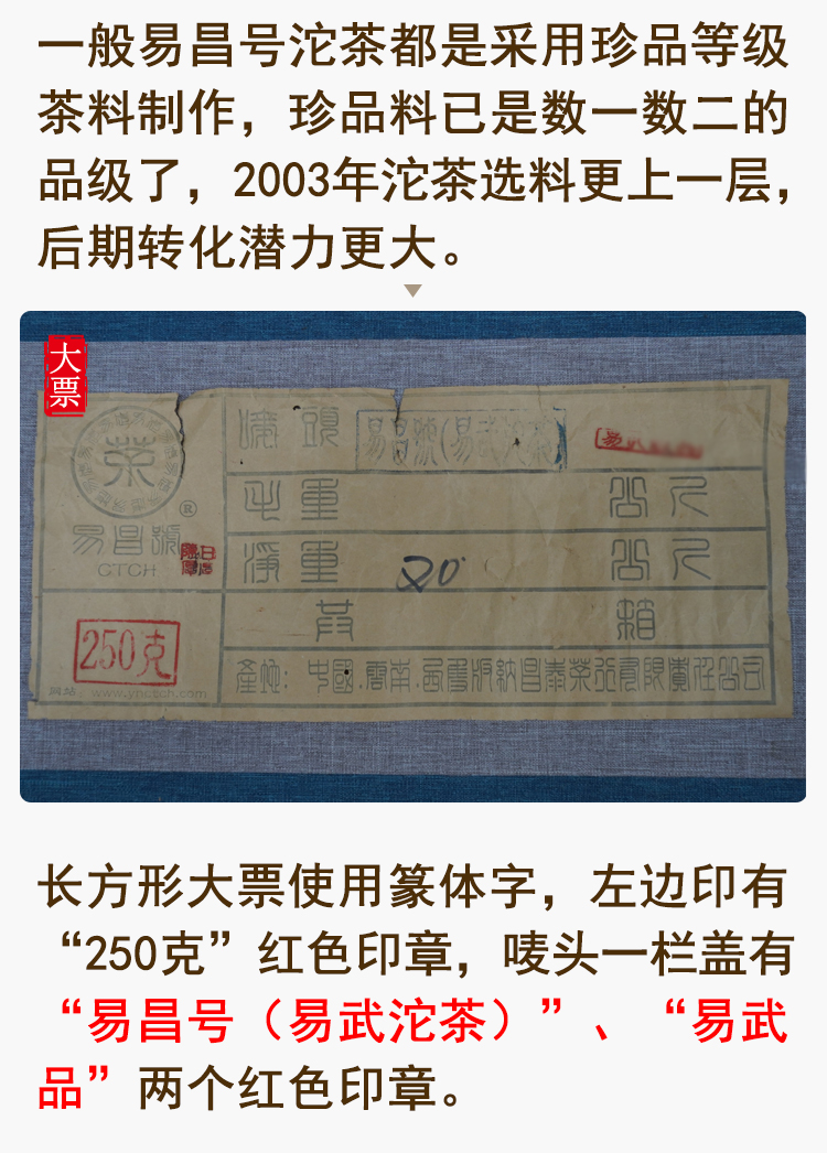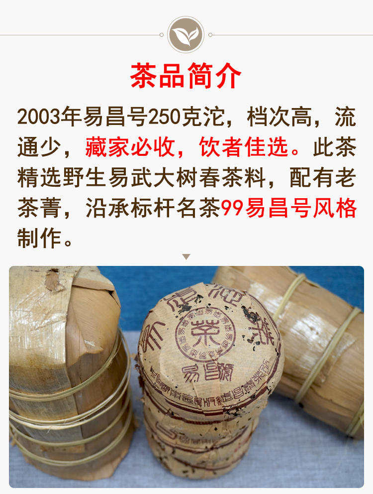 2003年易昌号250克沱茶老生茶 昌泰号易武野生高等级标杆老生茶 一沱250克单沱标价