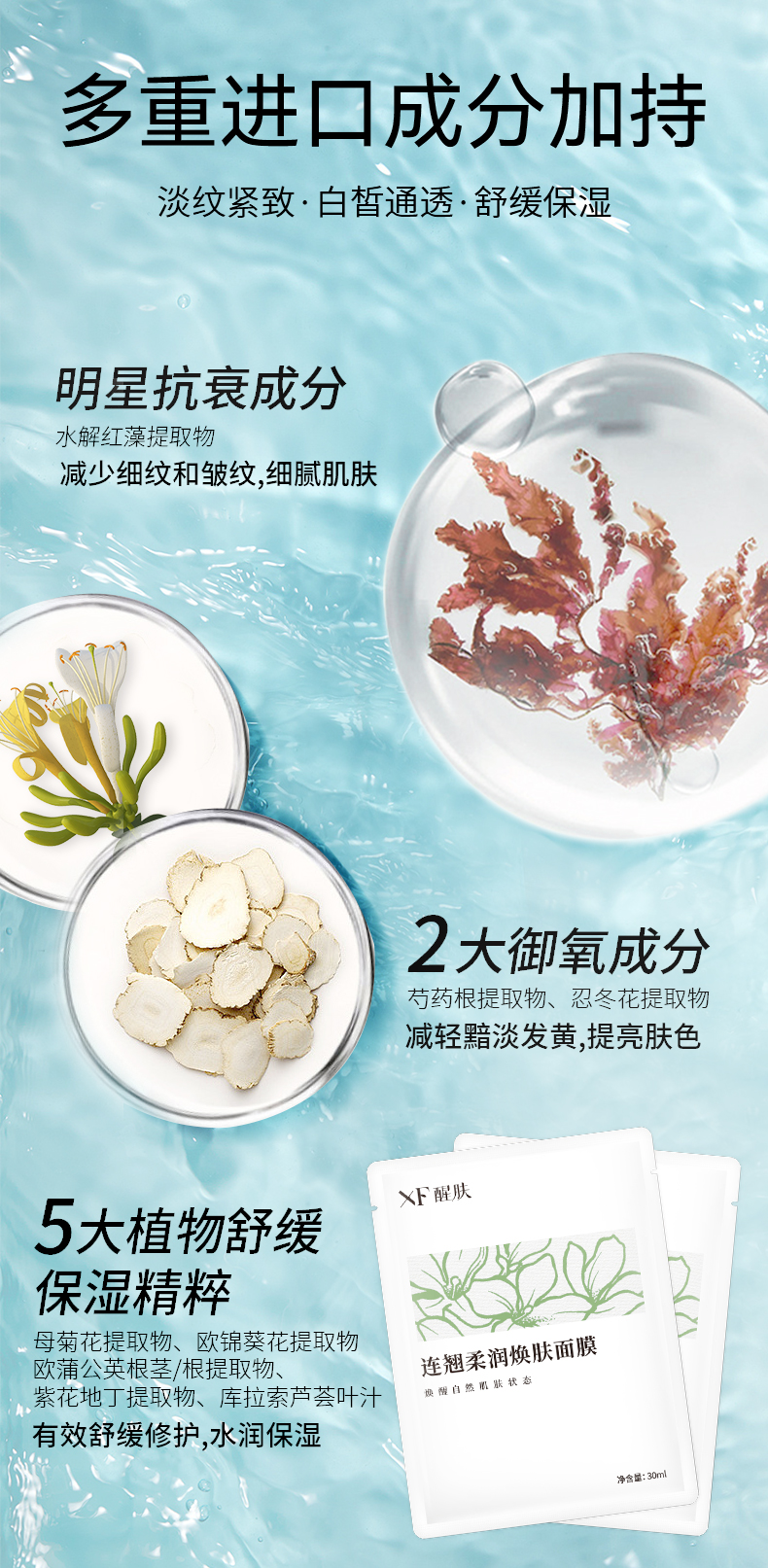 【正品直销】【沁润肌肤】X&F连翘柔润焕肤面膜30ml*5片 泛红舒缓保湿补水紧致提亮k老嫩肤