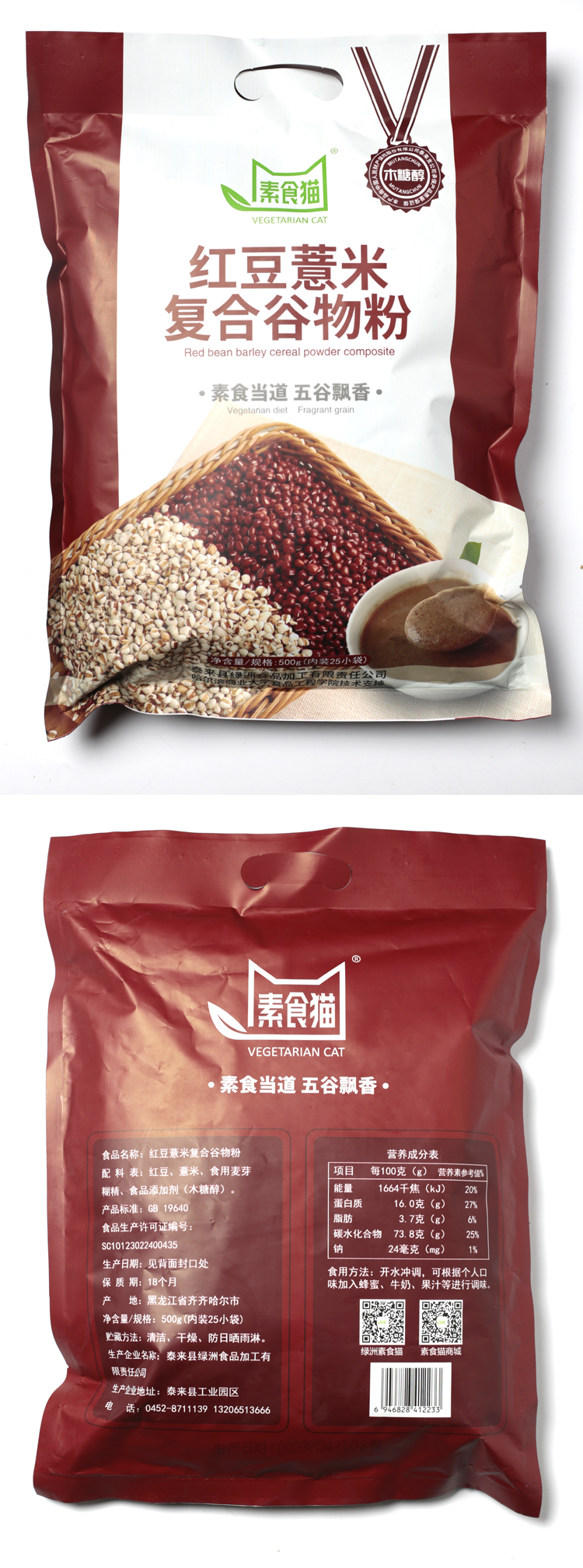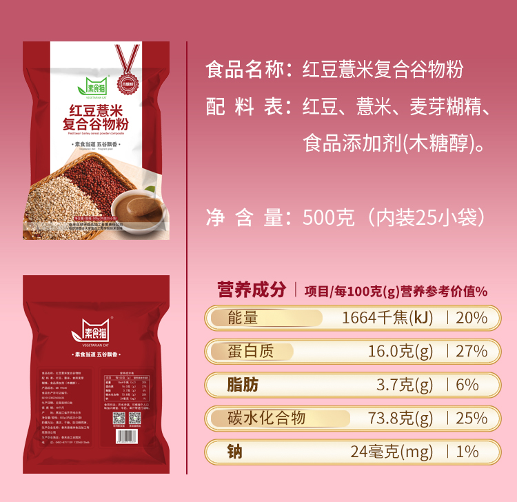 泰来县素食猫木糖醇红豆薏米复合谷物粉500克(25袋*20克)