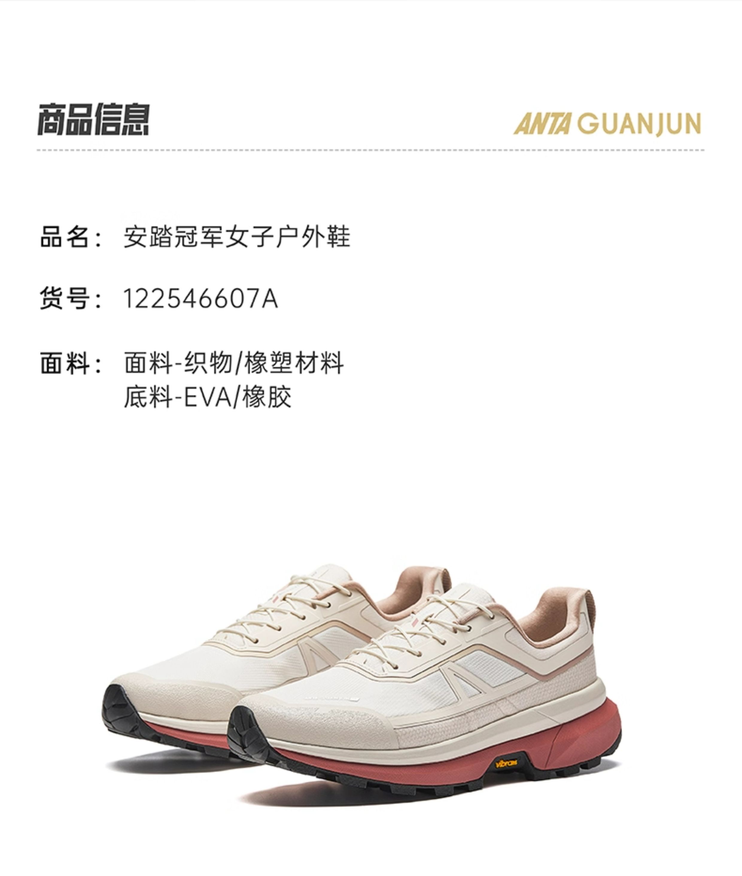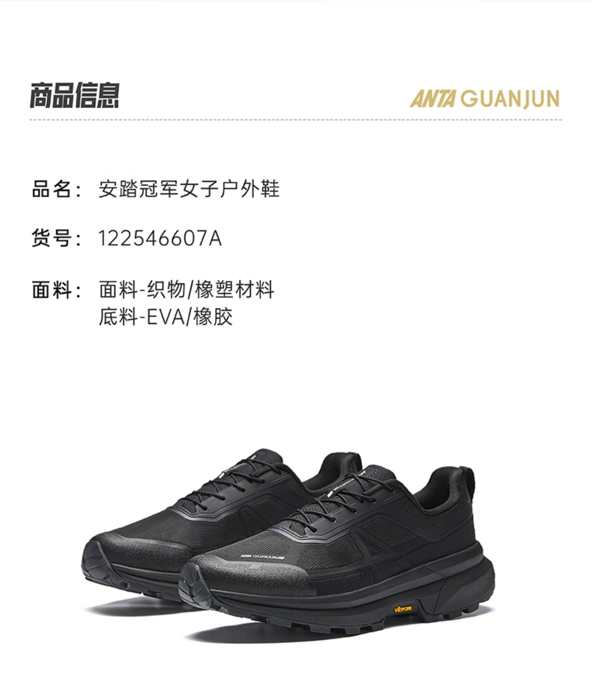 安踏冠军户外开山3徒步鞋女秋冬抓地防护运动休闲鞋122546607A