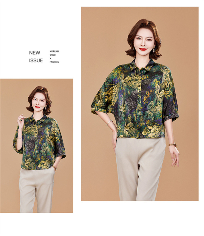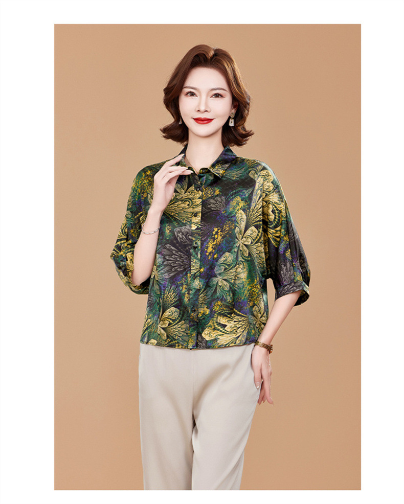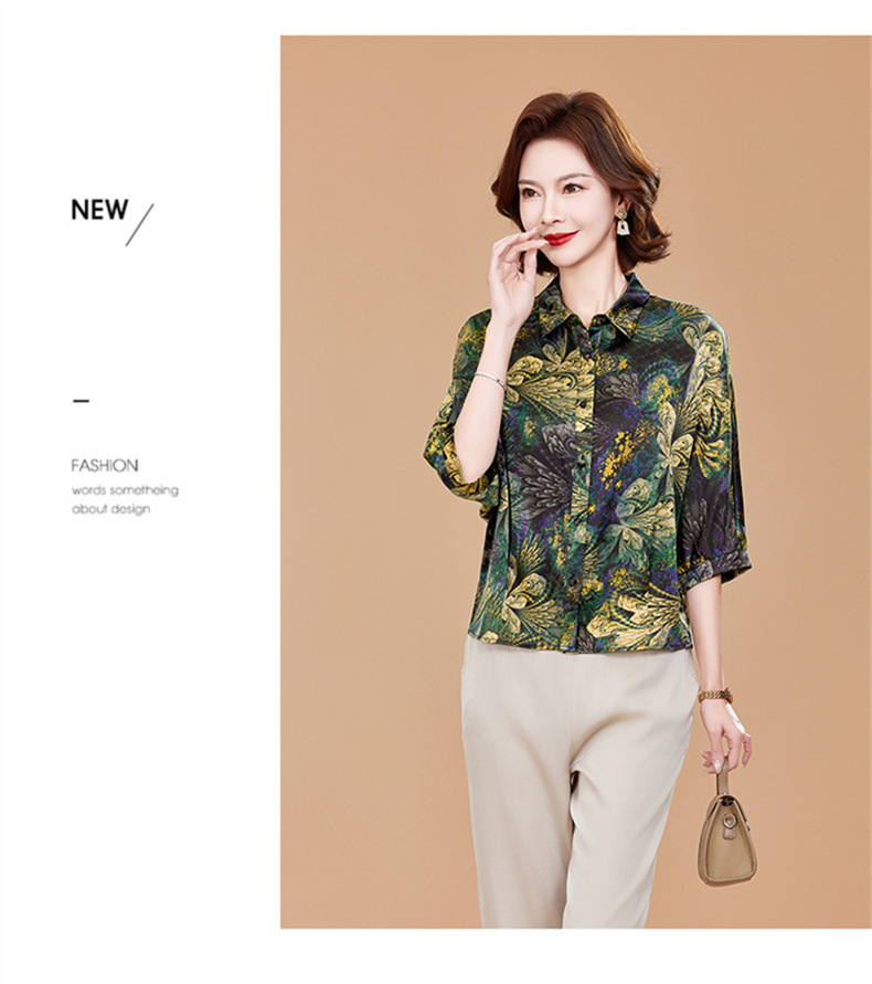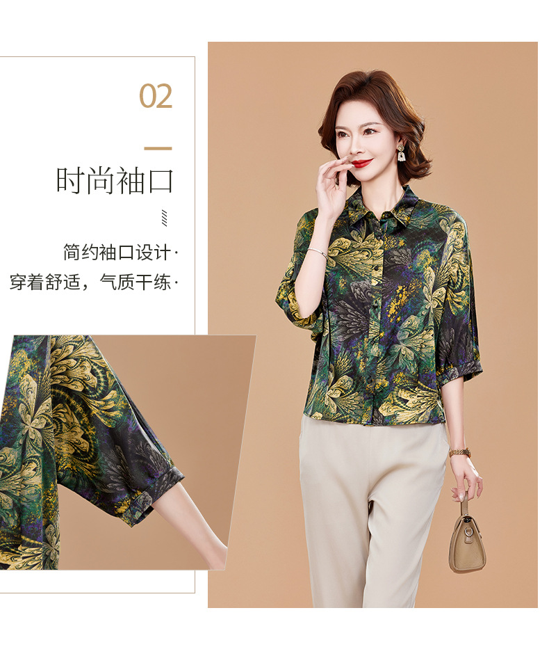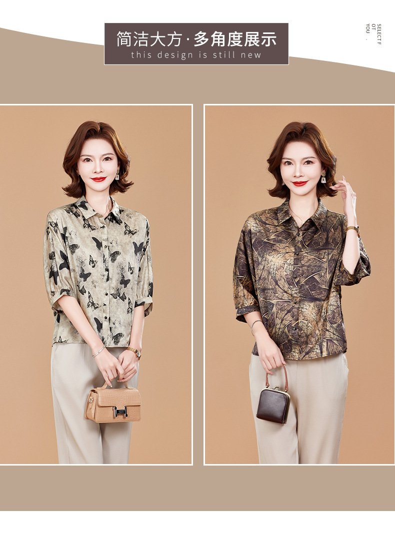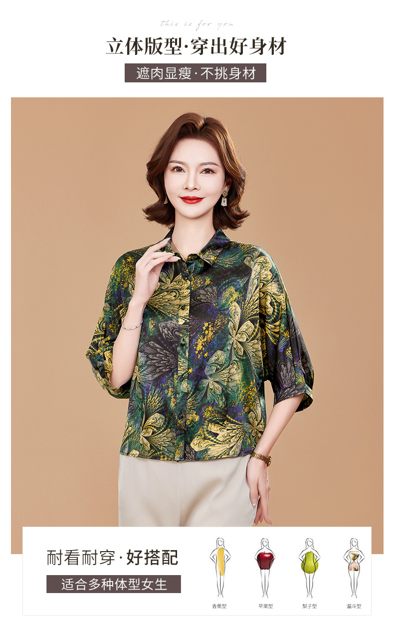 KQ2025夏季新款减龄五分袖印花衬衫气质大码洋气女薄款真丝小衫