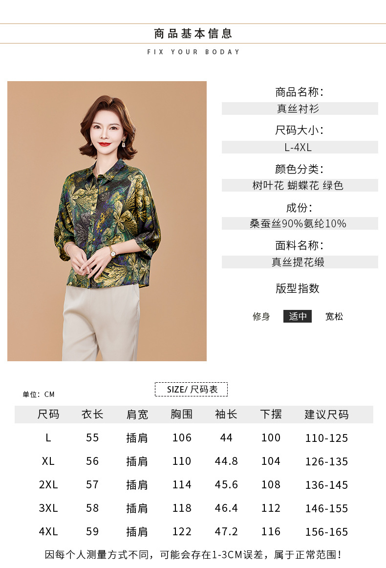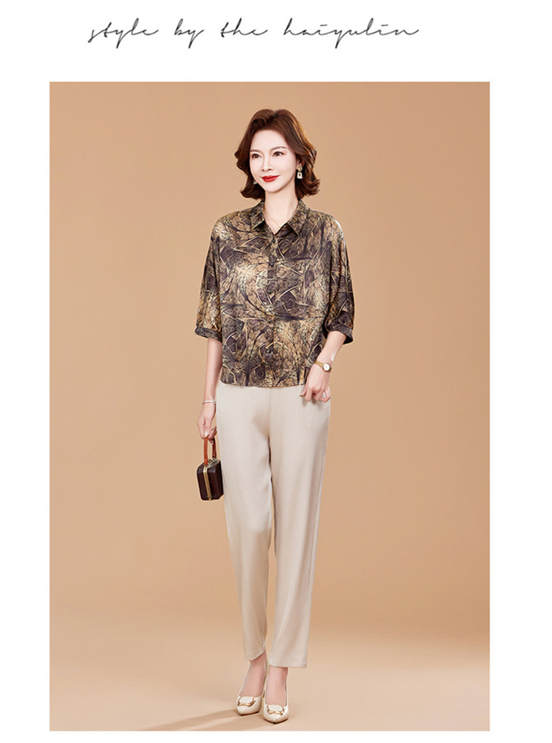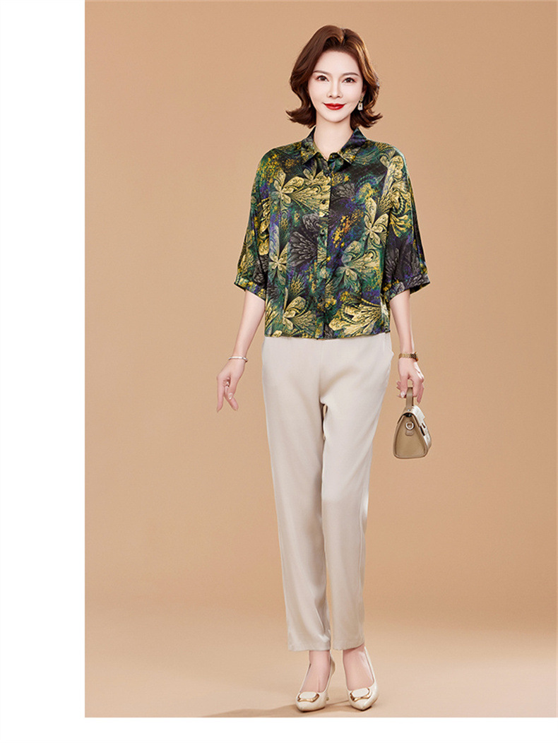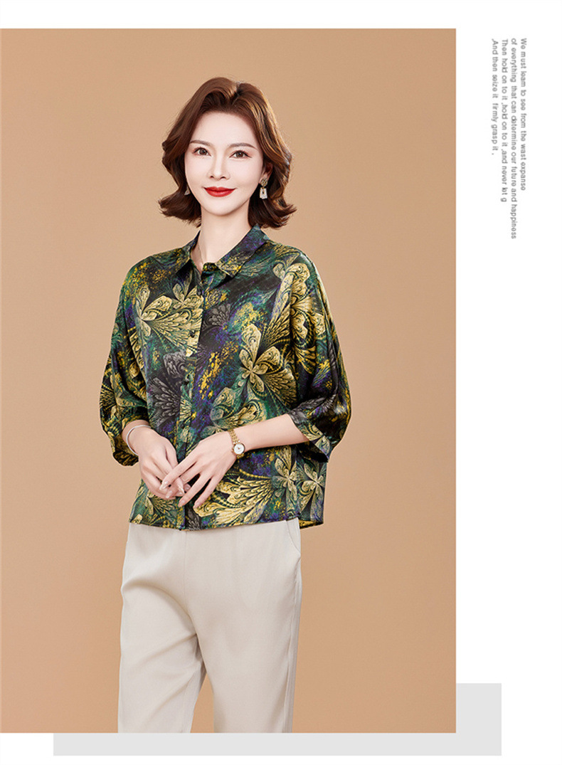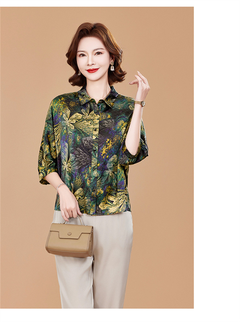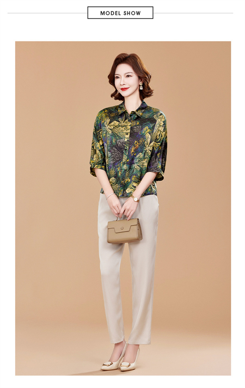 KQ2025夏季新款减龄五分袖印花衬衫气质大码洋气女薄款真丝小衫