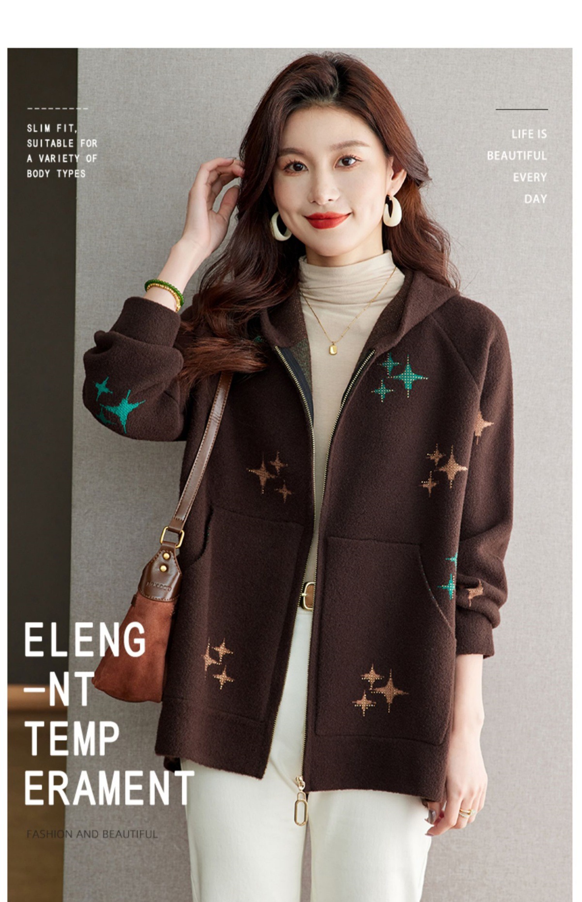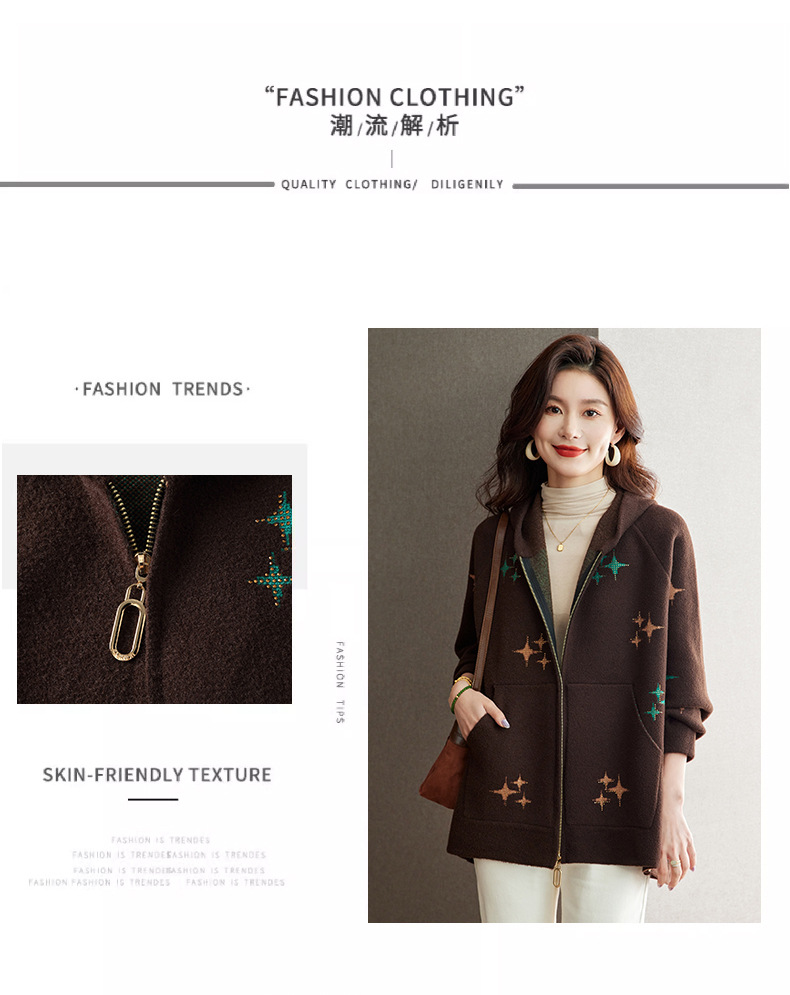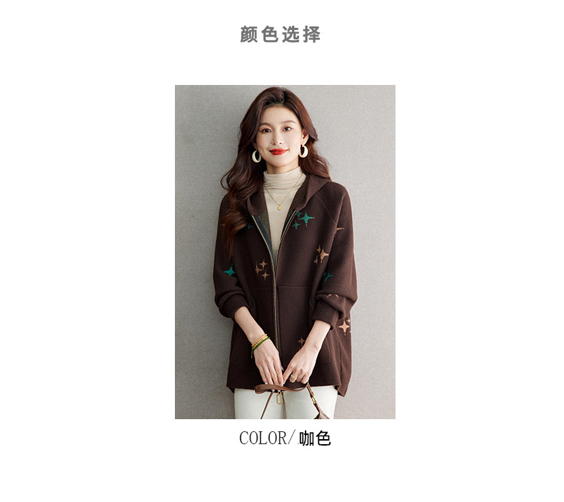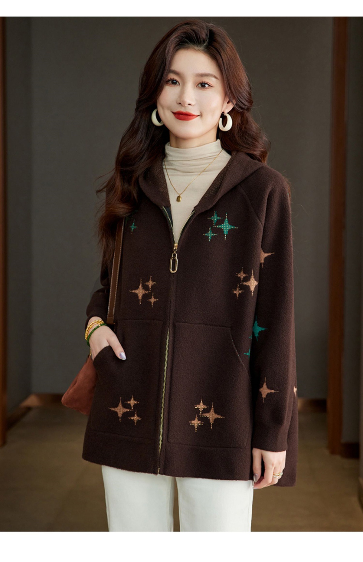 SCM181 连帽毛呢开衫女秋冬中长款遮屁股上衣2024新款胖妹妹外套拉链女装