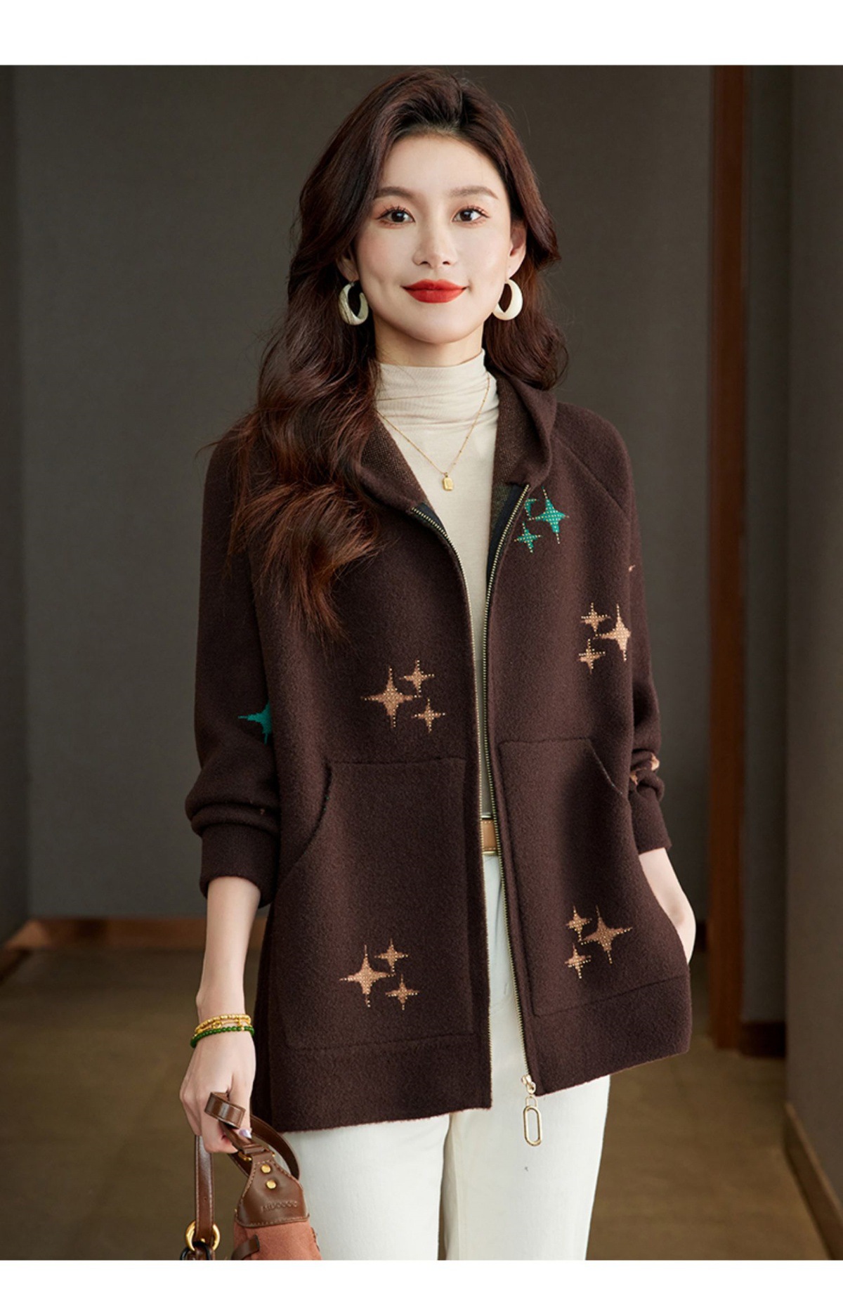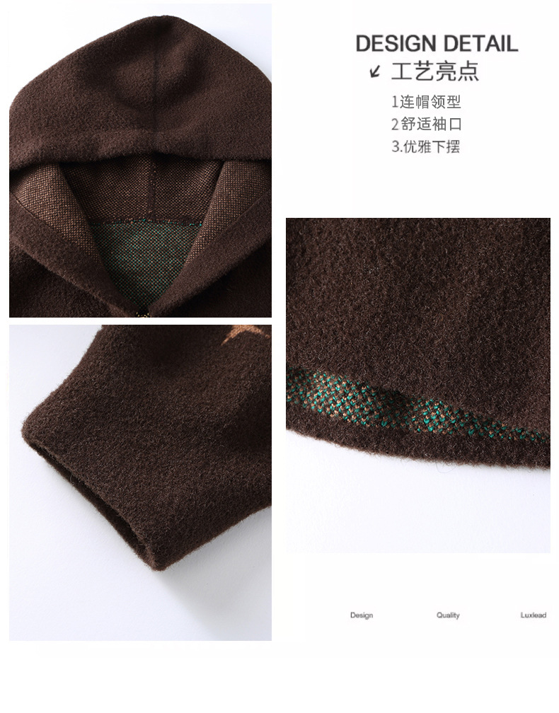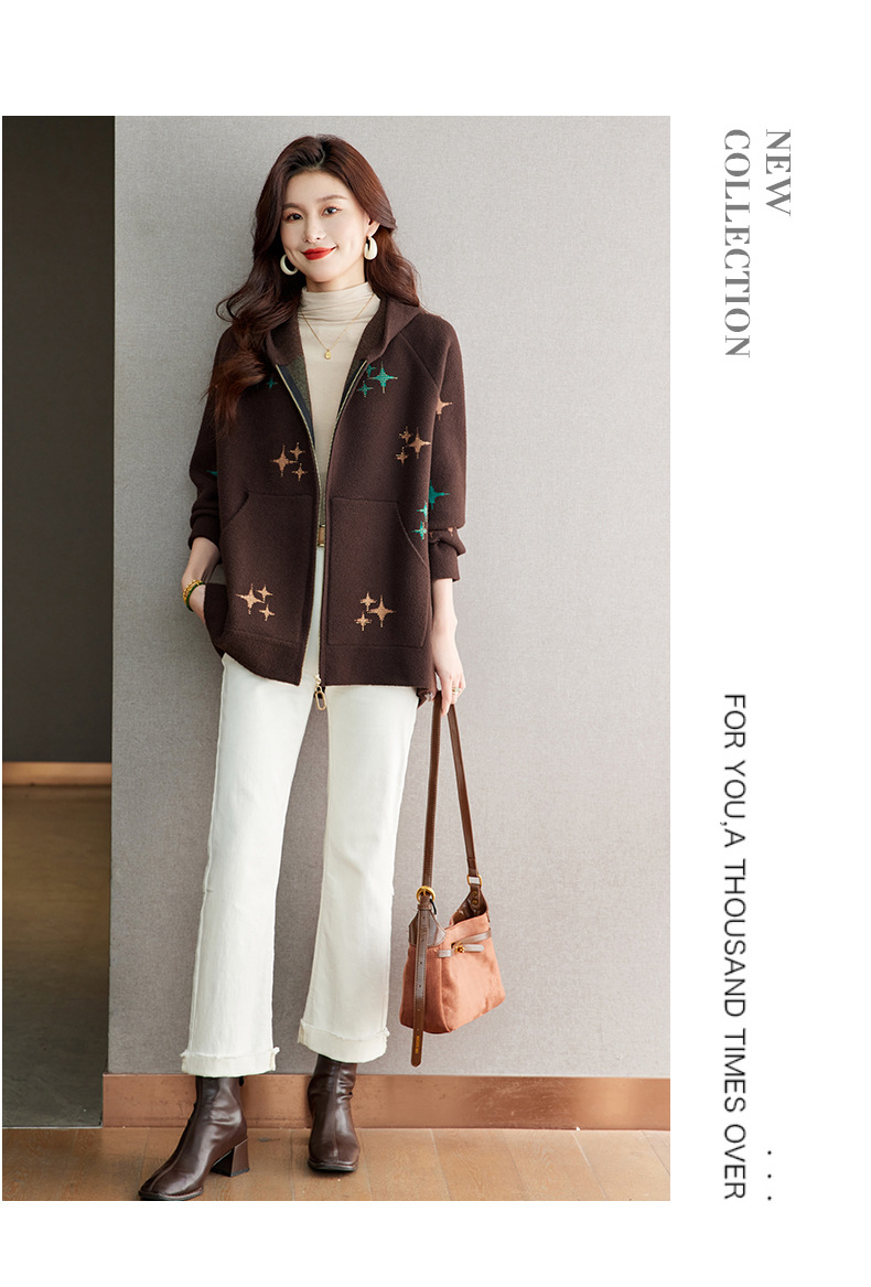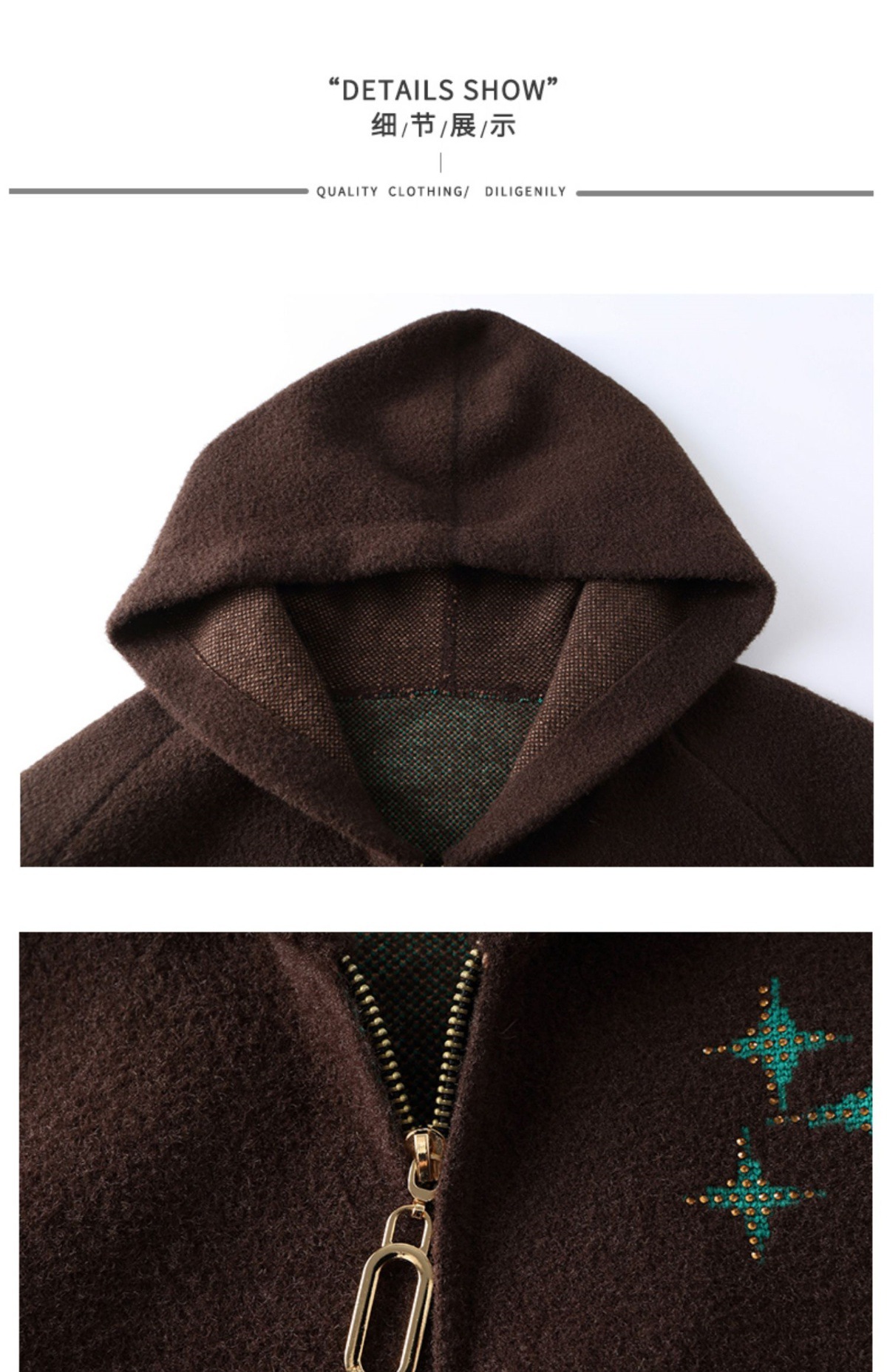 SCM181 连帽毛呢开衫女秋冬中长款遮屁股上衣2024新款胖妹妹外套拉链女装