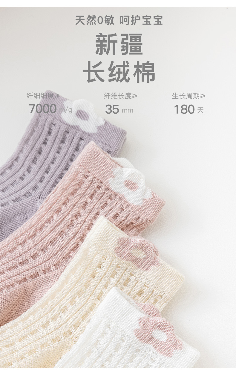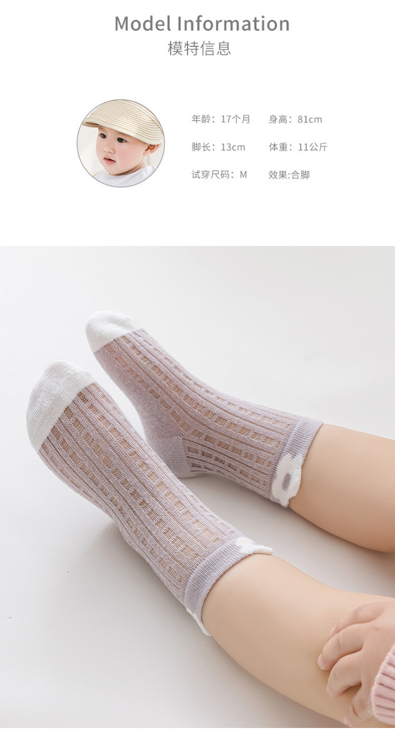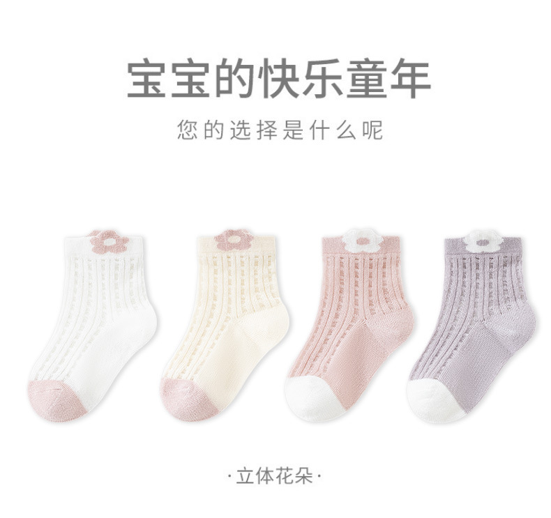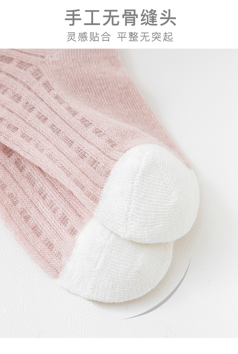【春夏宝宝袜,薄款网眼设计!】四双装!春夏宝宝袜子a类薄款 女童网眼袜子 婴儿松口新生儿中筒袜独立包装-QQ