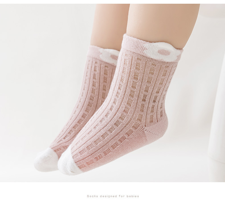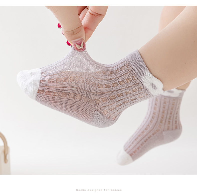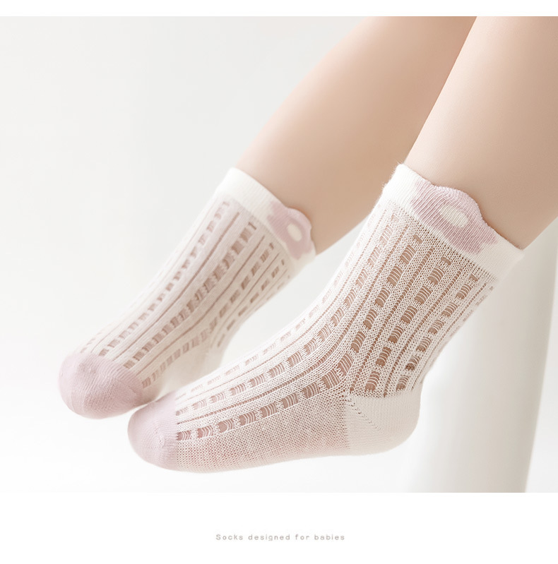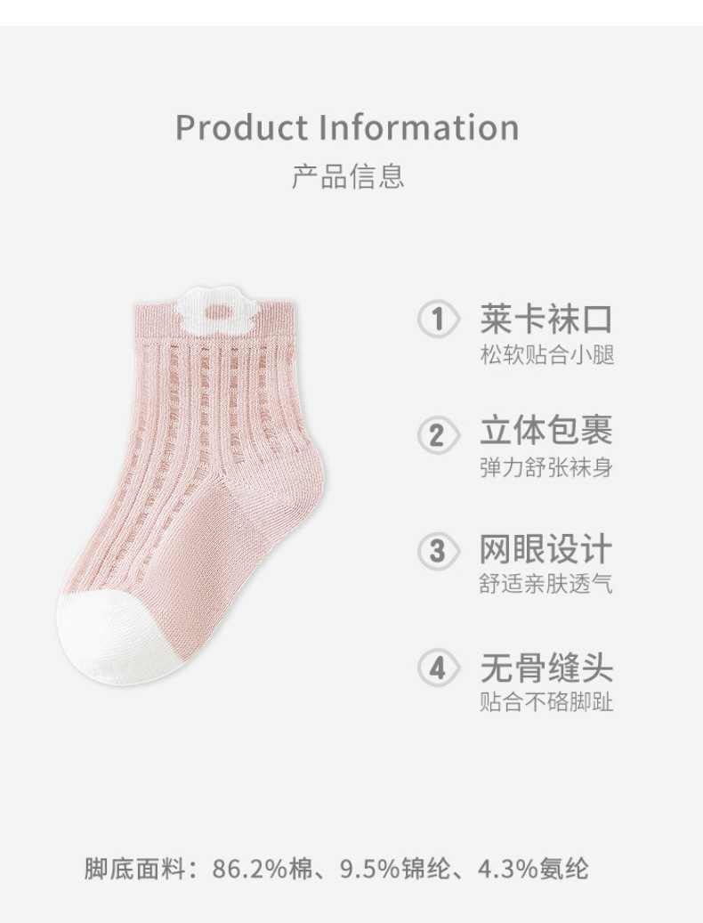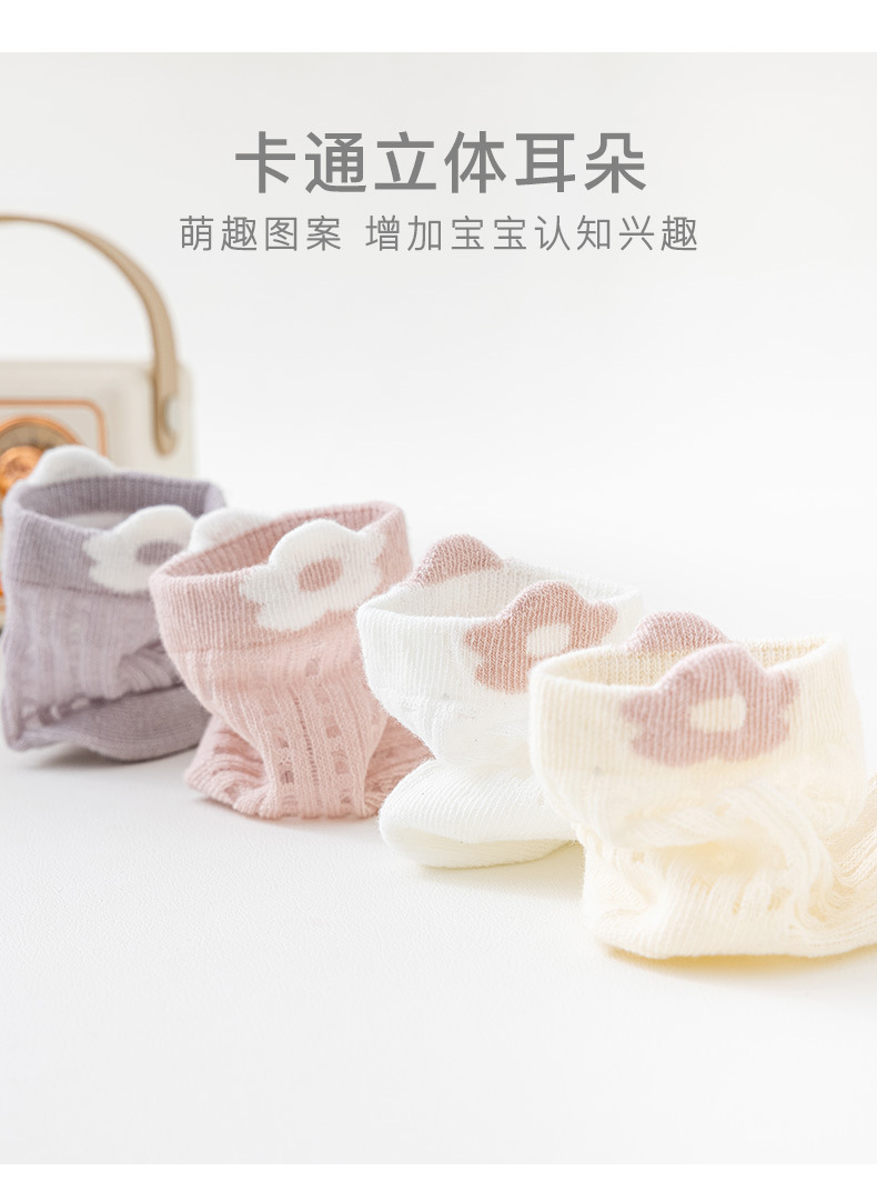 【春夏宝宝袜,薄款网眼设计!】四双装!春夏宝宝袜子a类薄款 女童网眼袜子 婴儿松口新生儿中筒袜独立包装-QQ