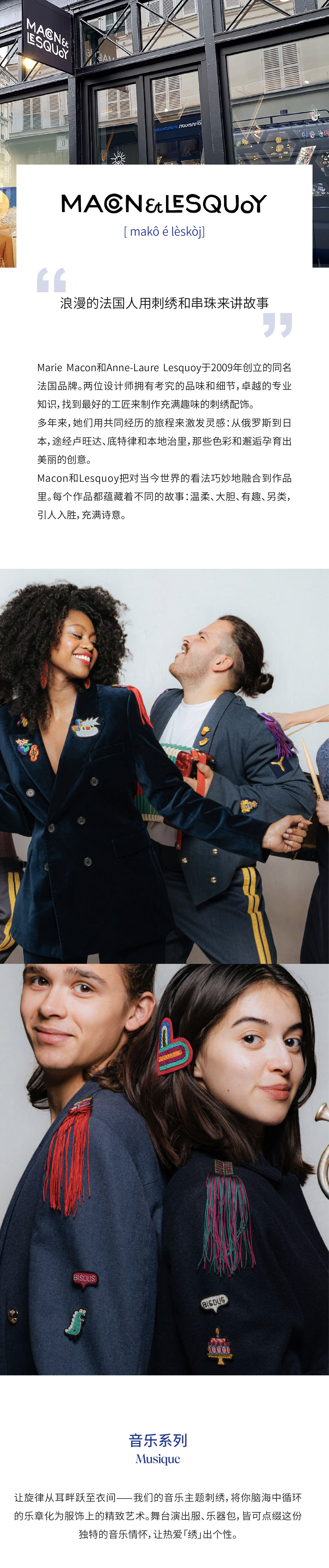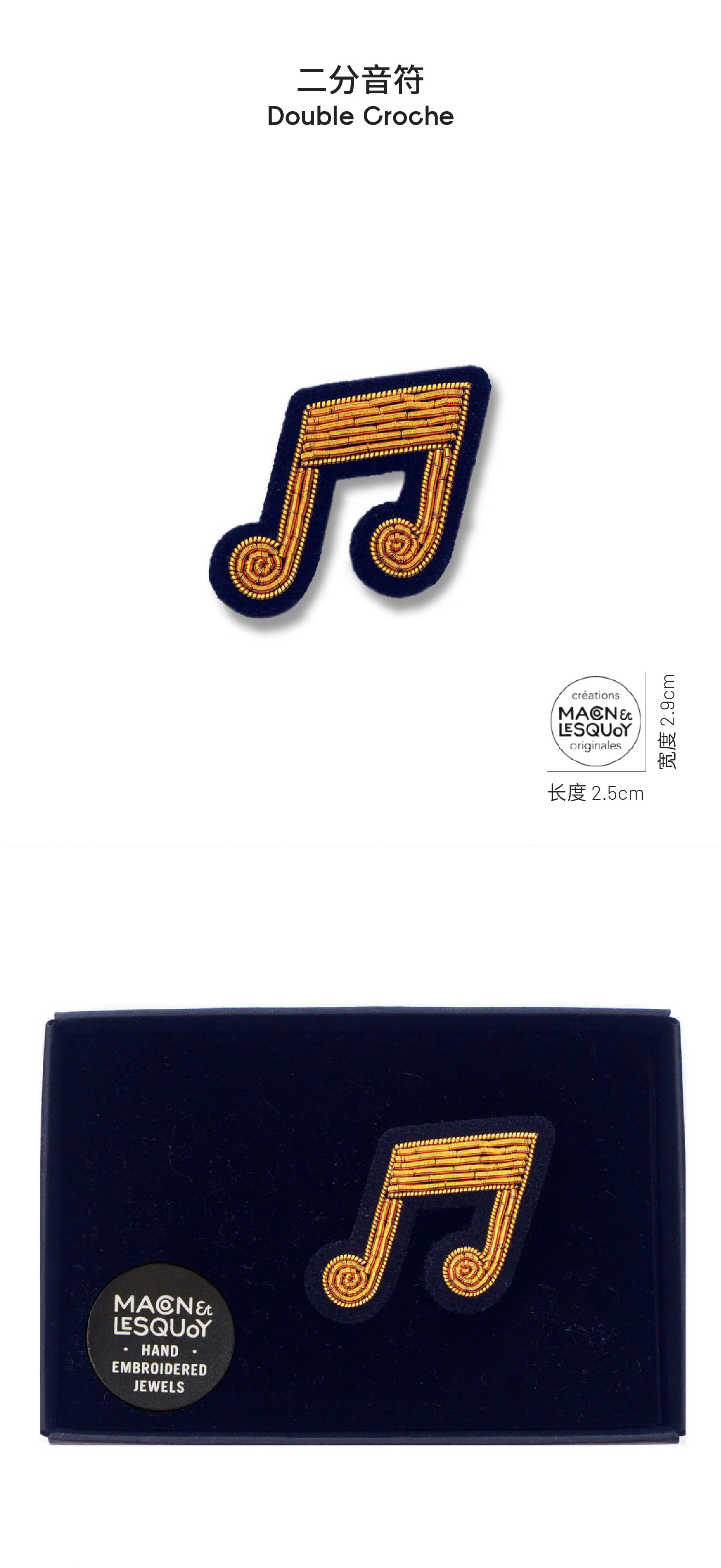 Macon&Lesquoy法国原创设计 二分音符 音乐系列 M&L刺绣手工饰品胸针