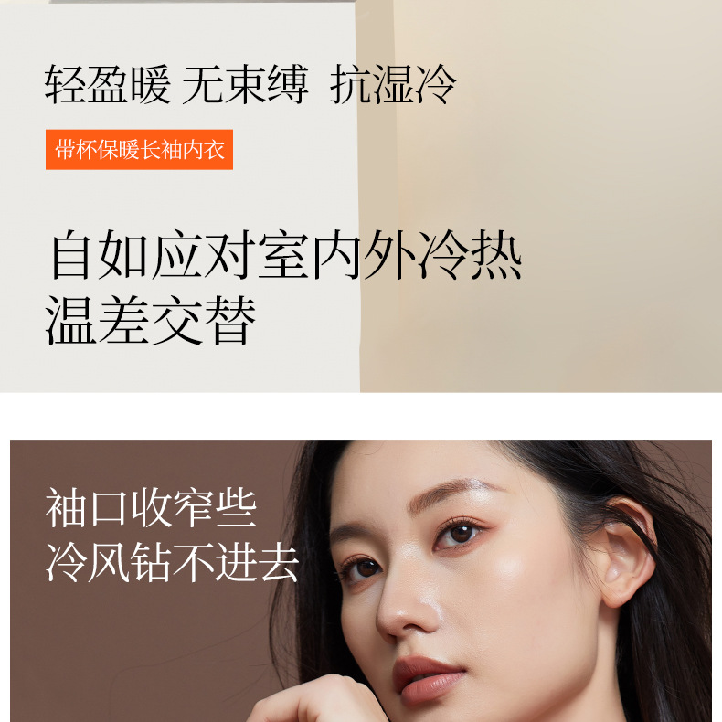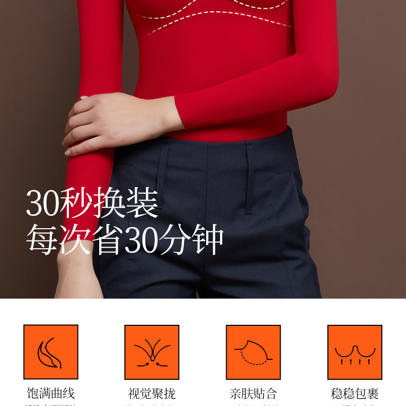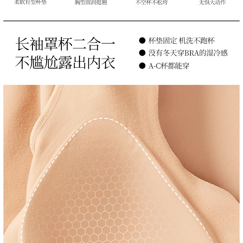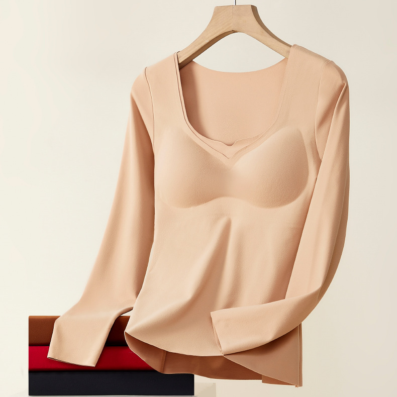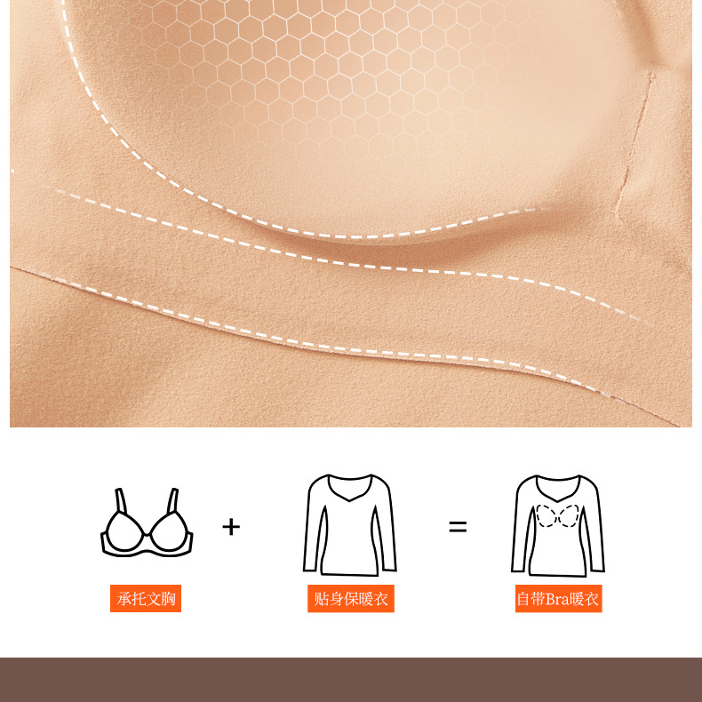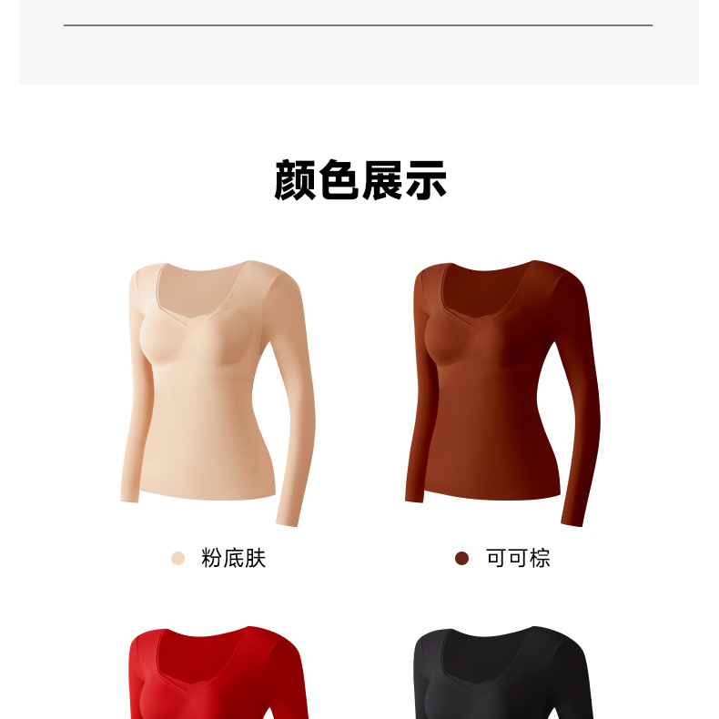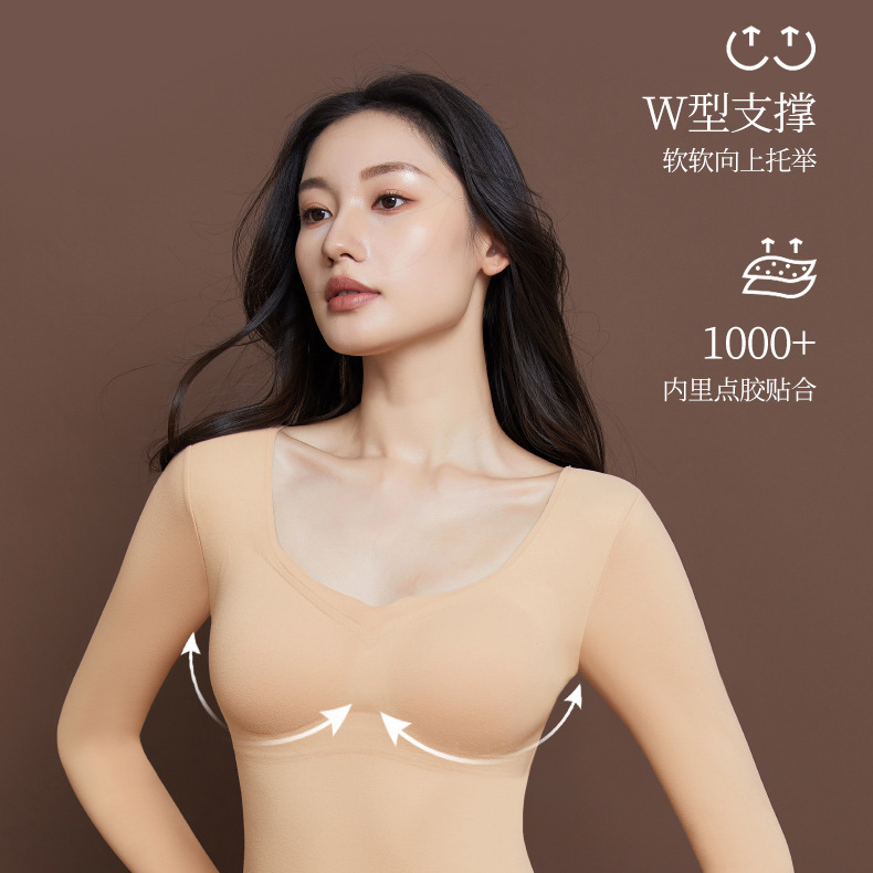 【秒杀】【免穿文胸】女士磨毛保暖内衣女长袖打底免穿文胸修身内搭粉底液8622 100%