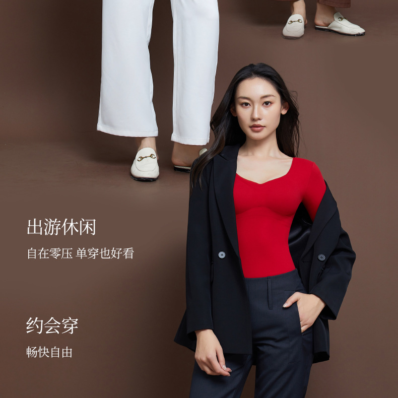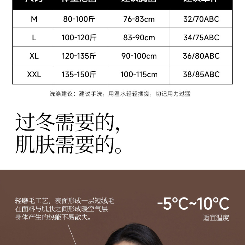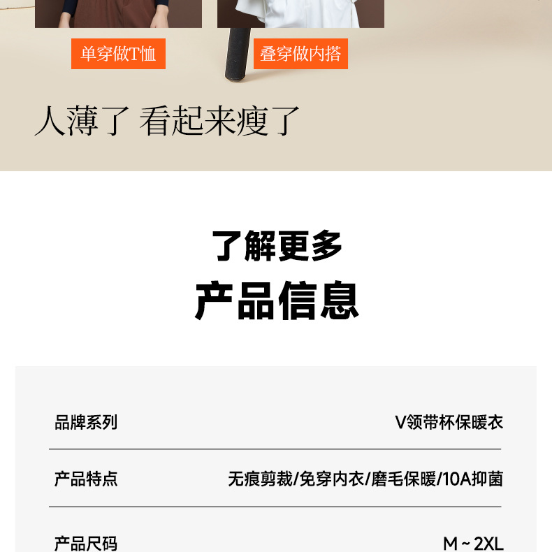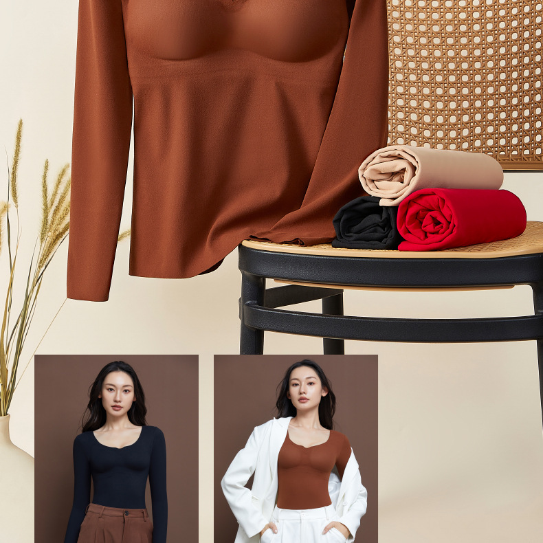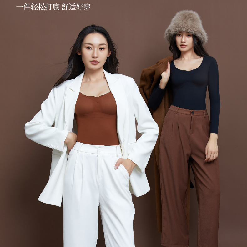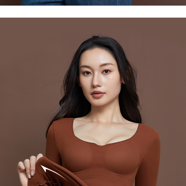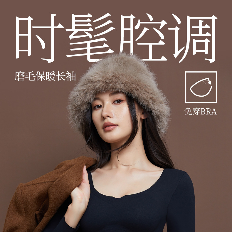 【秒杀】【免穿文胸】女士磨毛保暖内衣女长袖打底免穿文胸修身内搭粉底液8622 100%