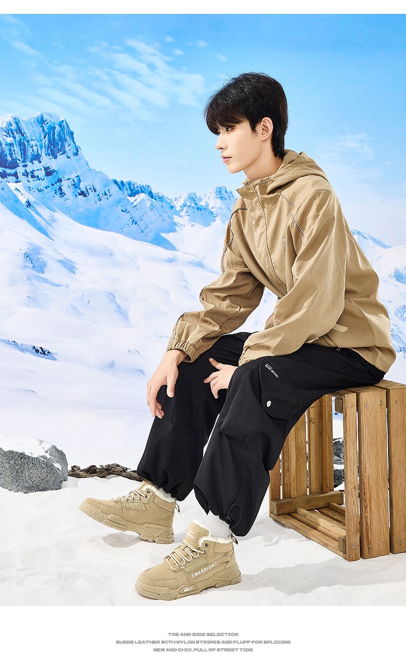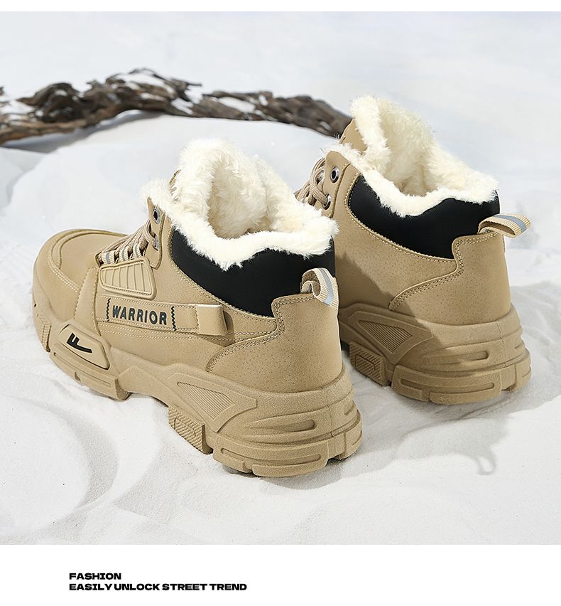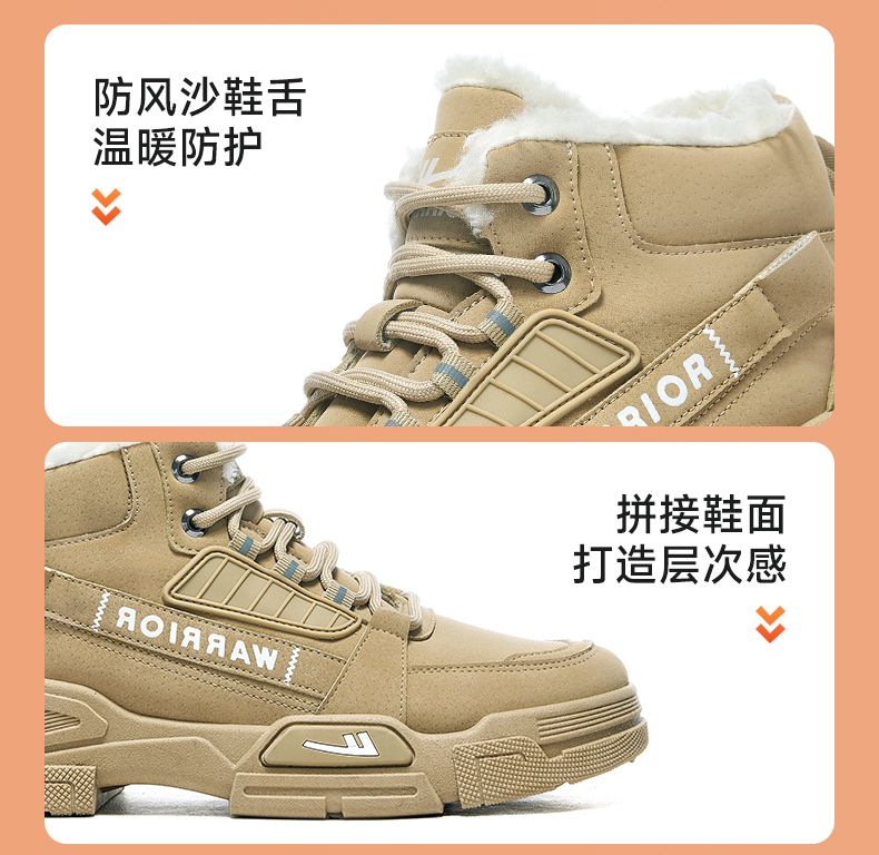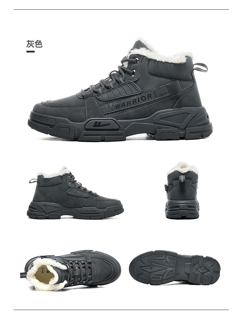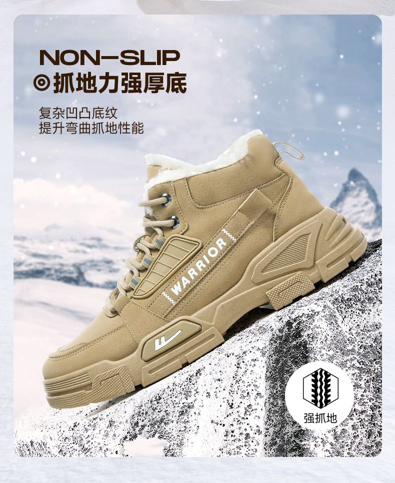 回力男鞋加绒工装鞋2025秋冬新款户外保暖雪地靴高帮棉鞋马丁靴男