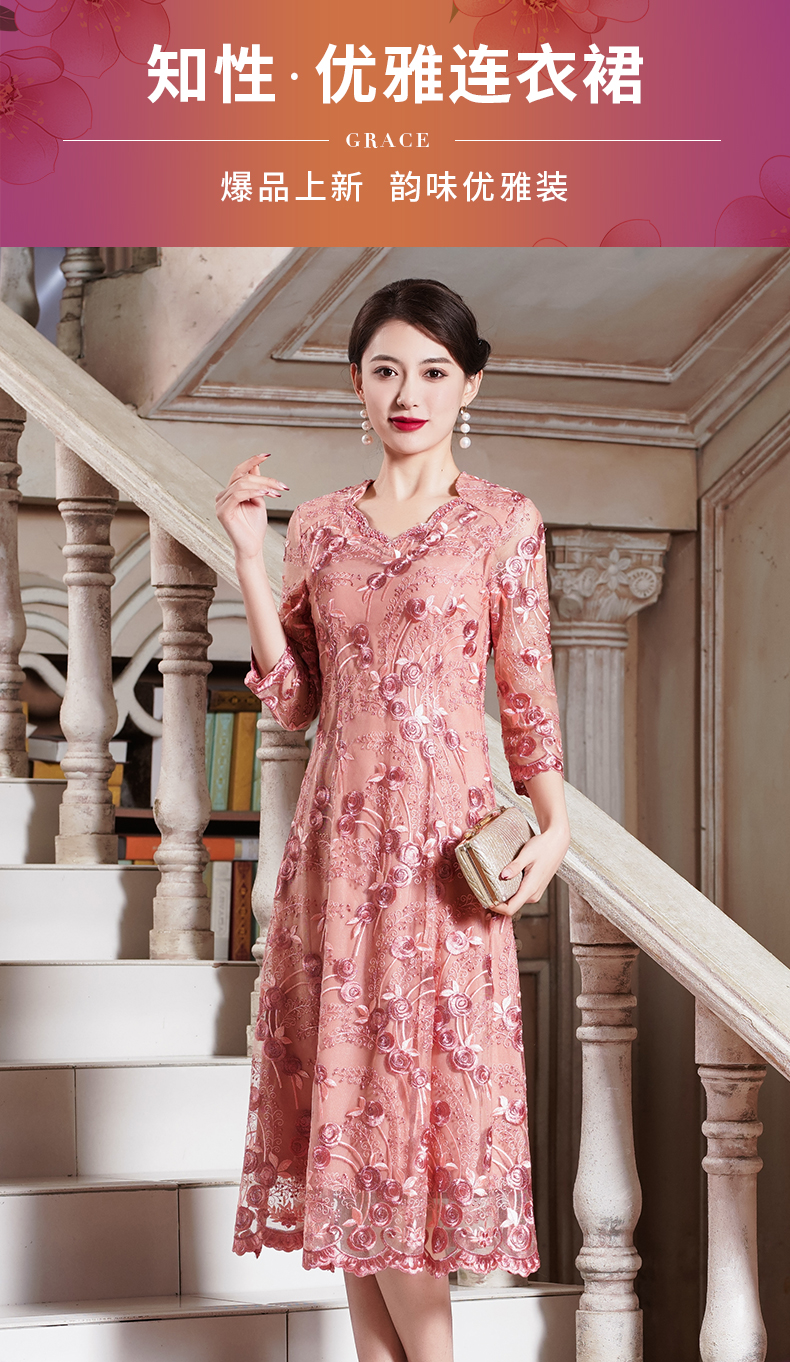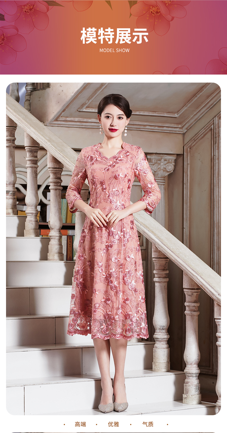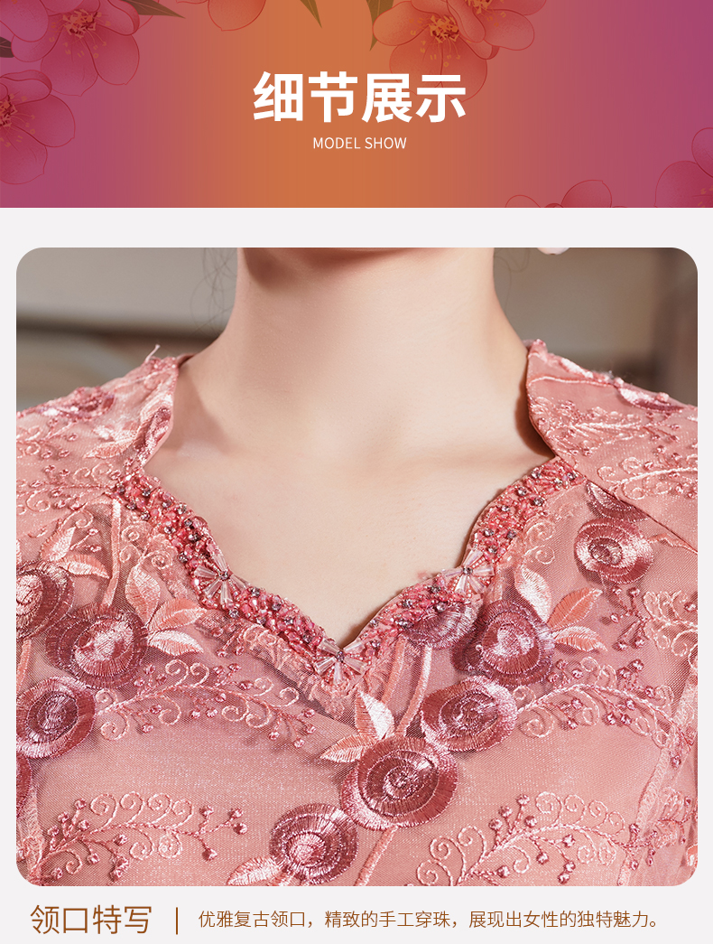 喜婆婆婚宴装粉色改良旗袍裙平时可穿洋气 QQX-9932