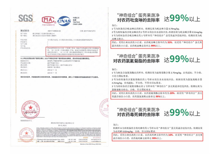 大多数清洗剂只能去掉部分农残,只有蛋壳果蔬净高效清除农残。像有机磷农药,吡虫啉、氯氰菊酯、毒死蜱等它都能帮我们高效清除。