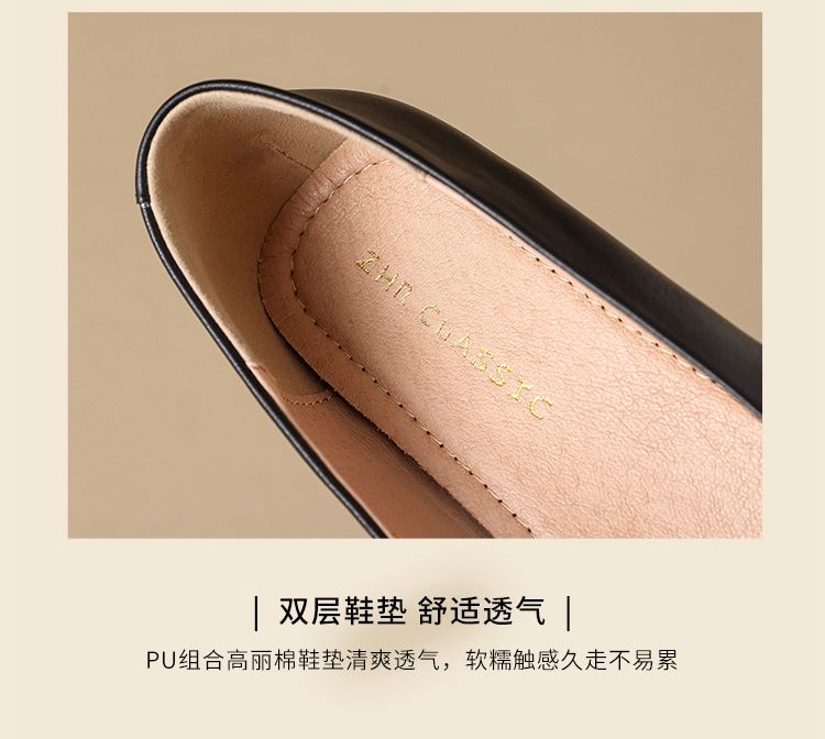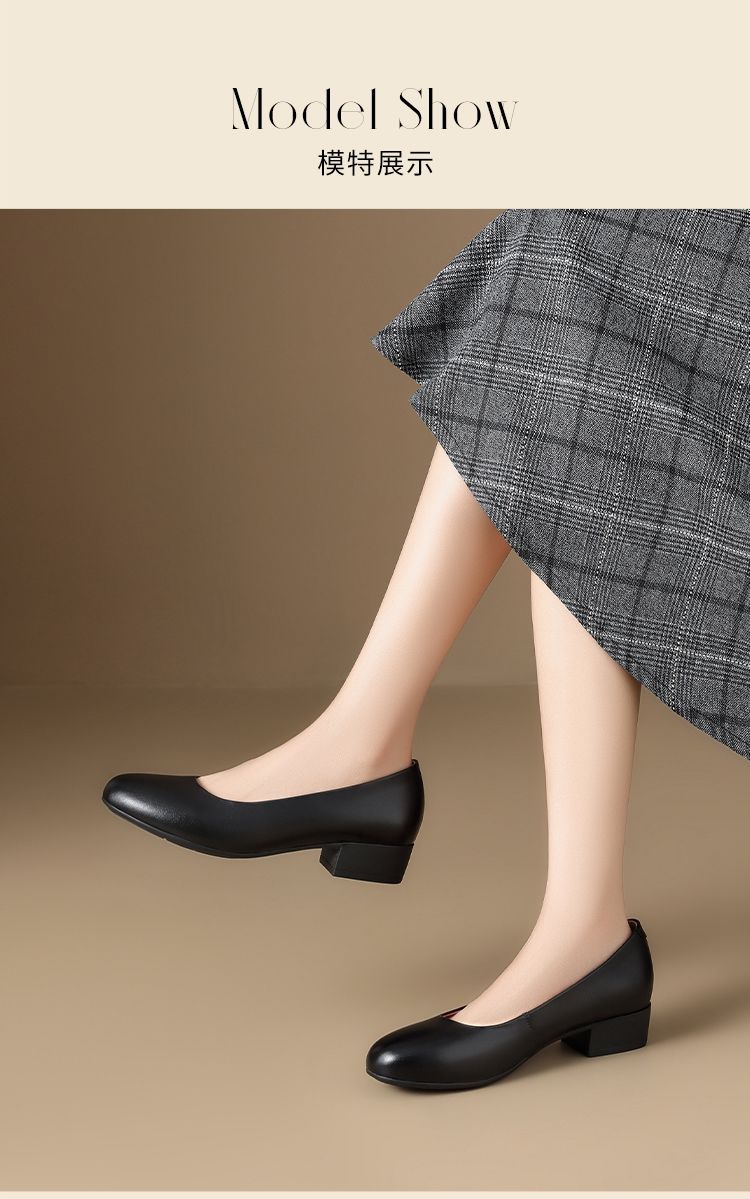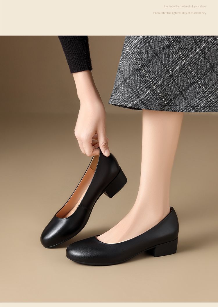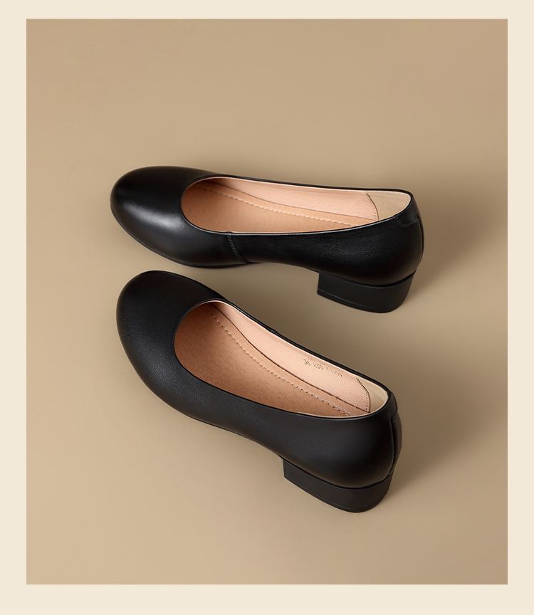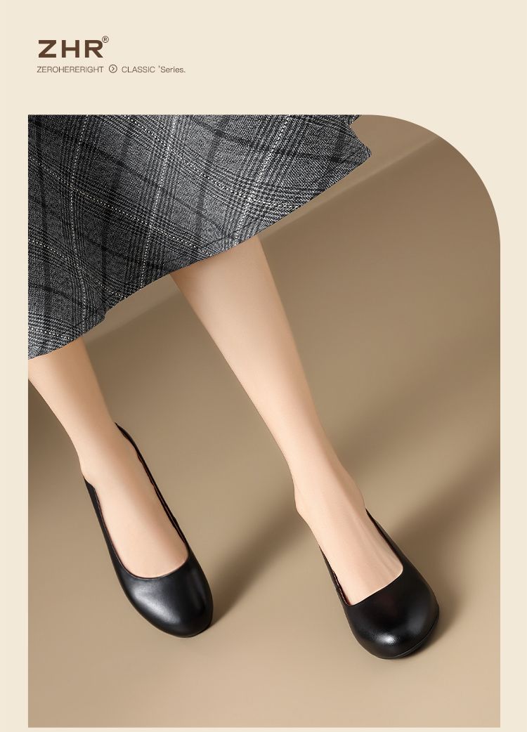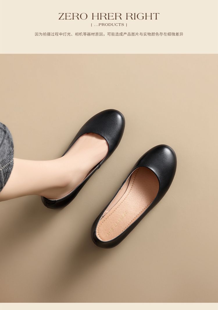 ZHR头层牛皮单鞋软皮上班防滑软底职业平底女鞋舒适黑色皮鞋
