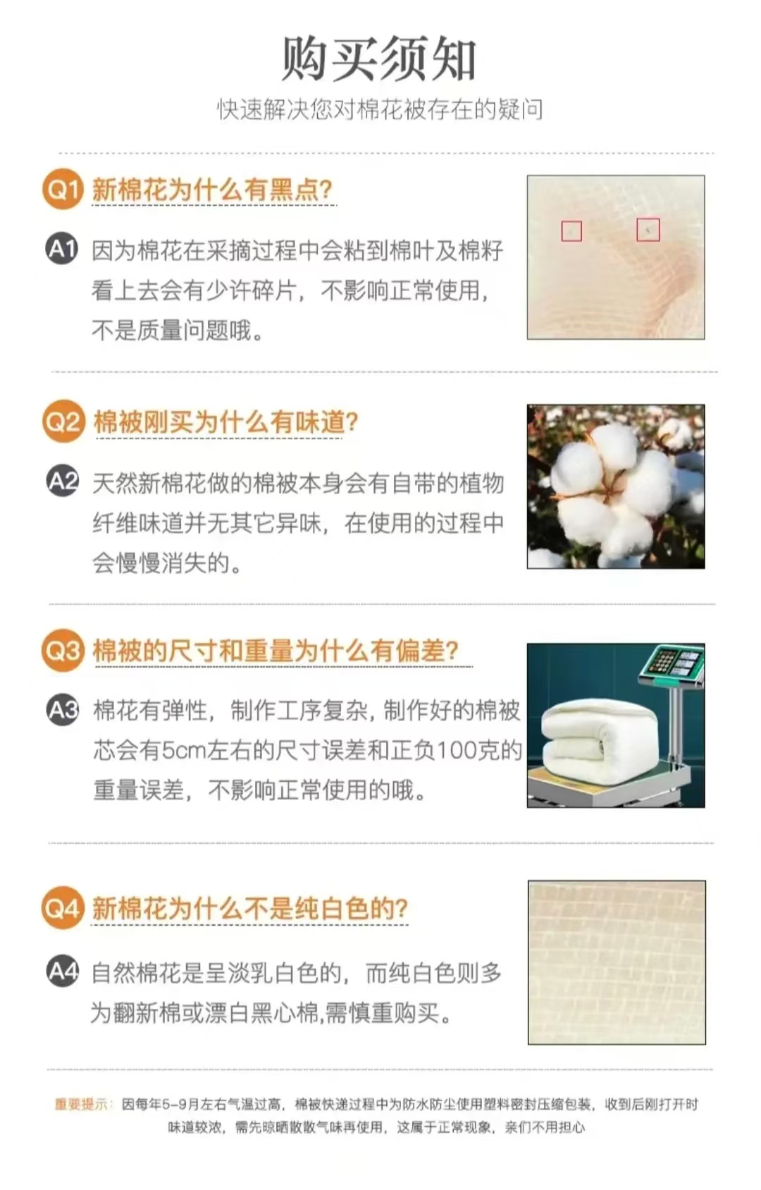 ⑥新疆路途遥远捂得时间长,建议收到棉被后可先晾晒一下散散味再使用,阳光晒过后会清新的 ,棉被用久了味道自然就变淡。