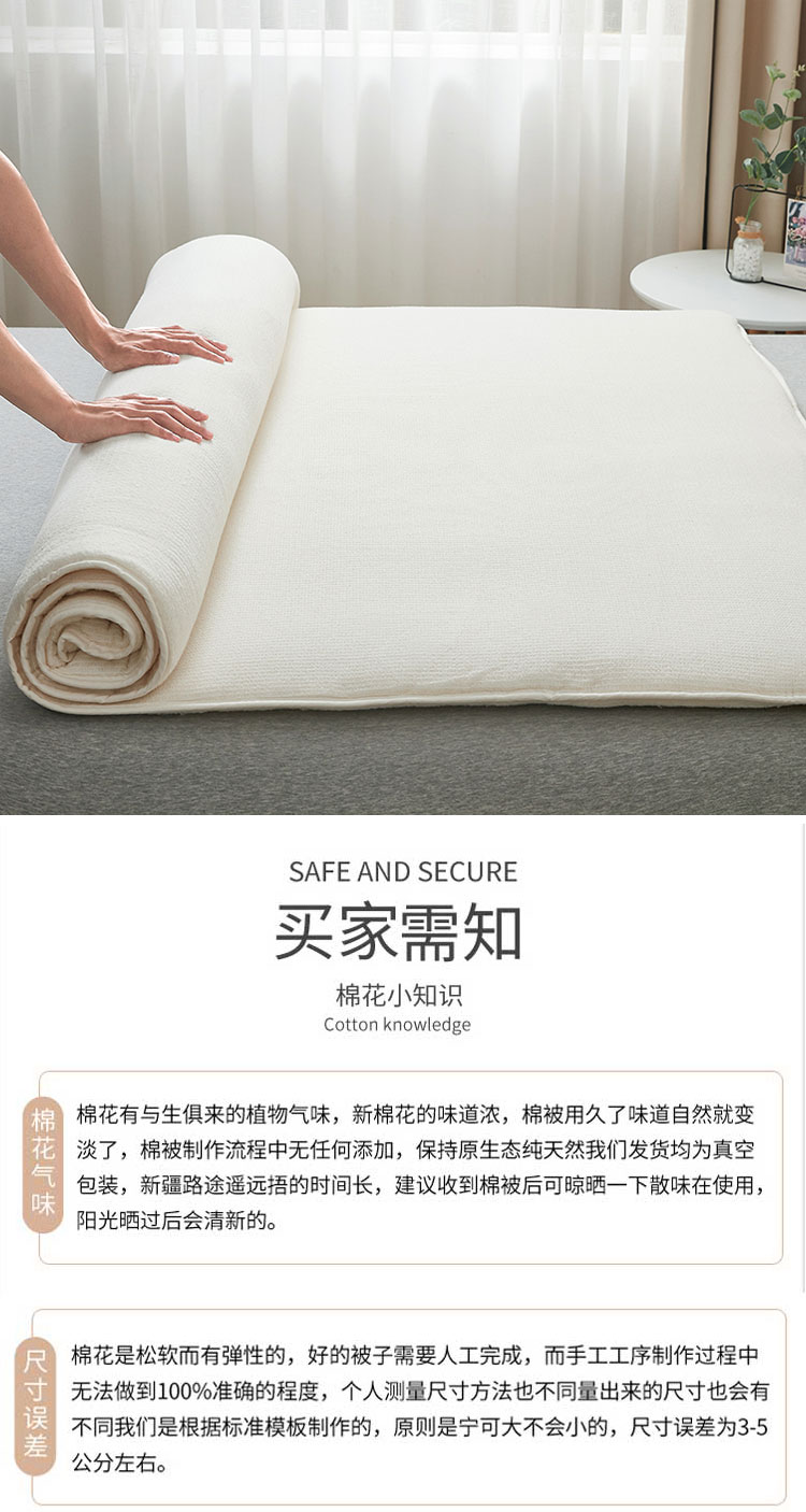 ②棉花被具有弹性,尺寸误差±5cm属正常象。