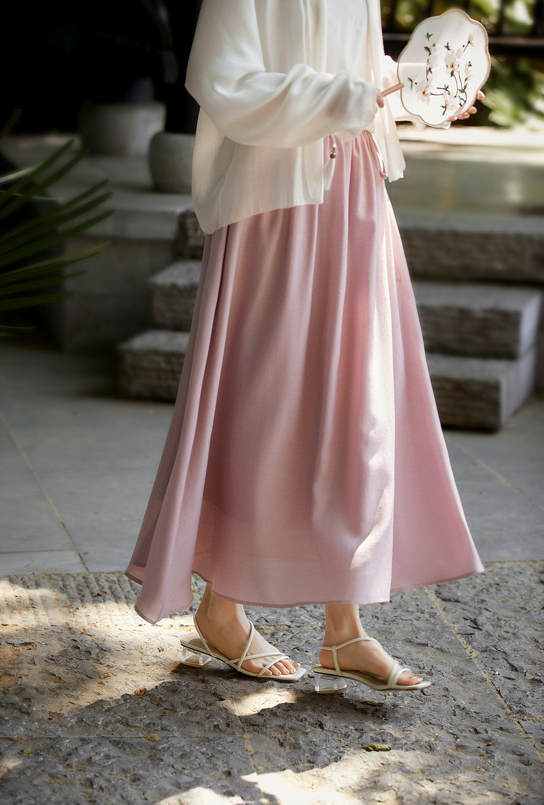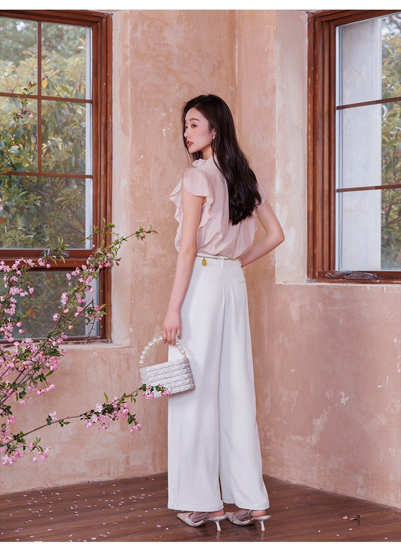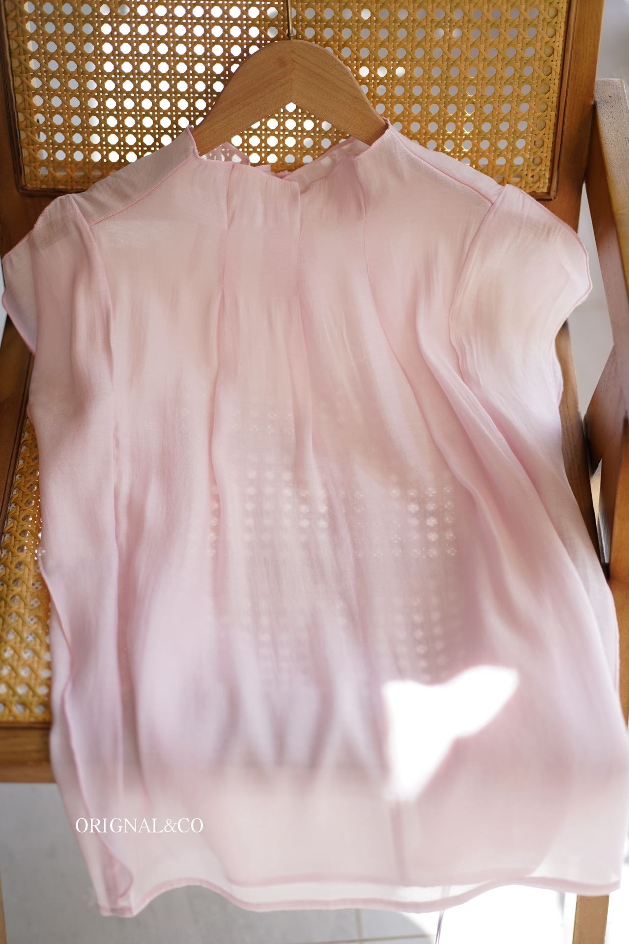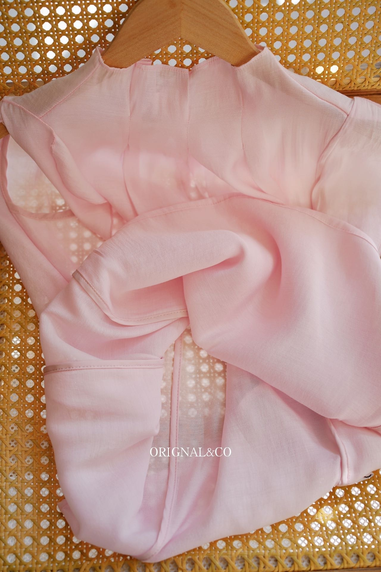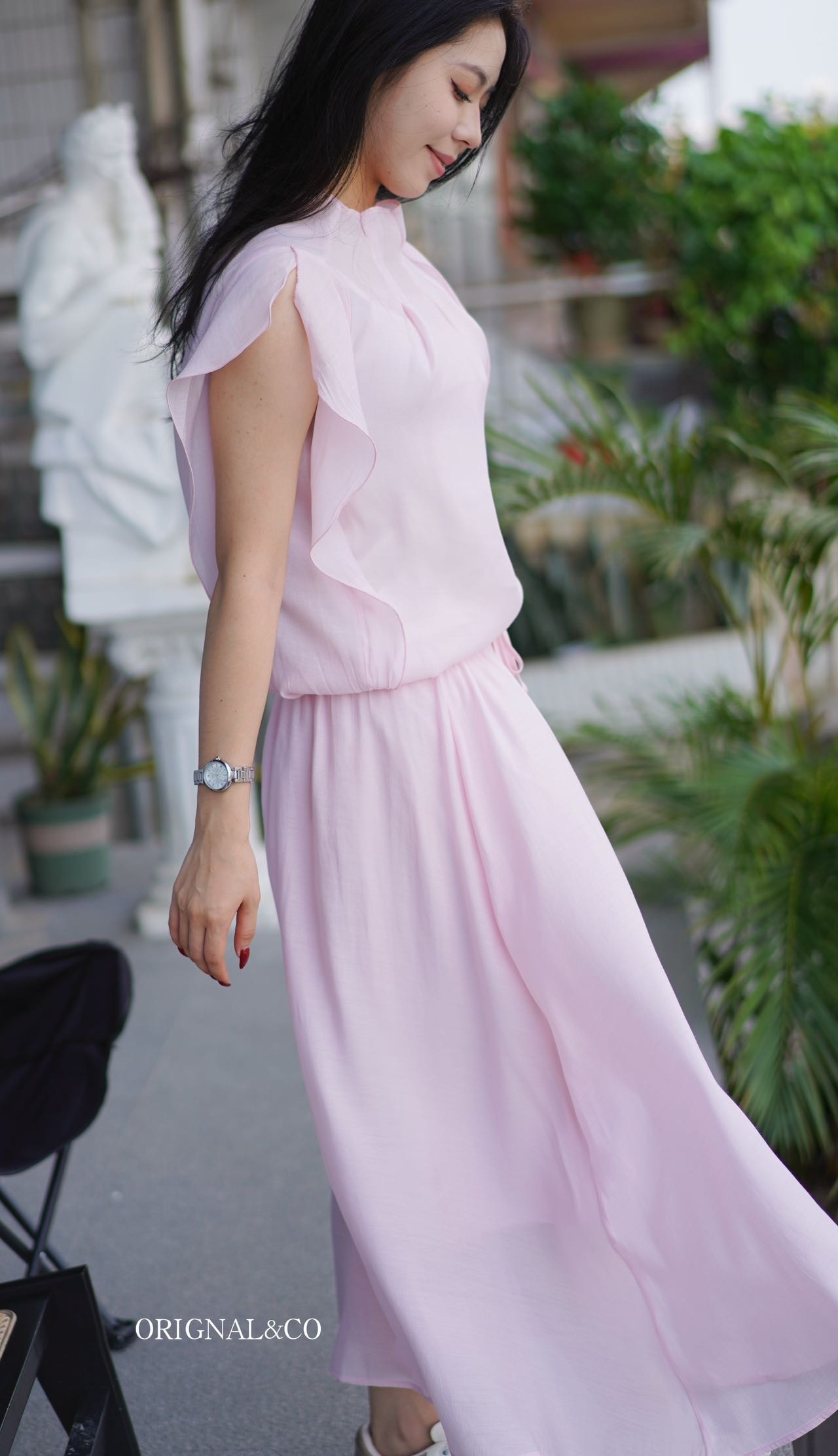【英国ORIGNAL&CO 珠光粉套装】上衣+半裙 半裙宽松版型 花瓣袖上衣 选用优质天丝面料