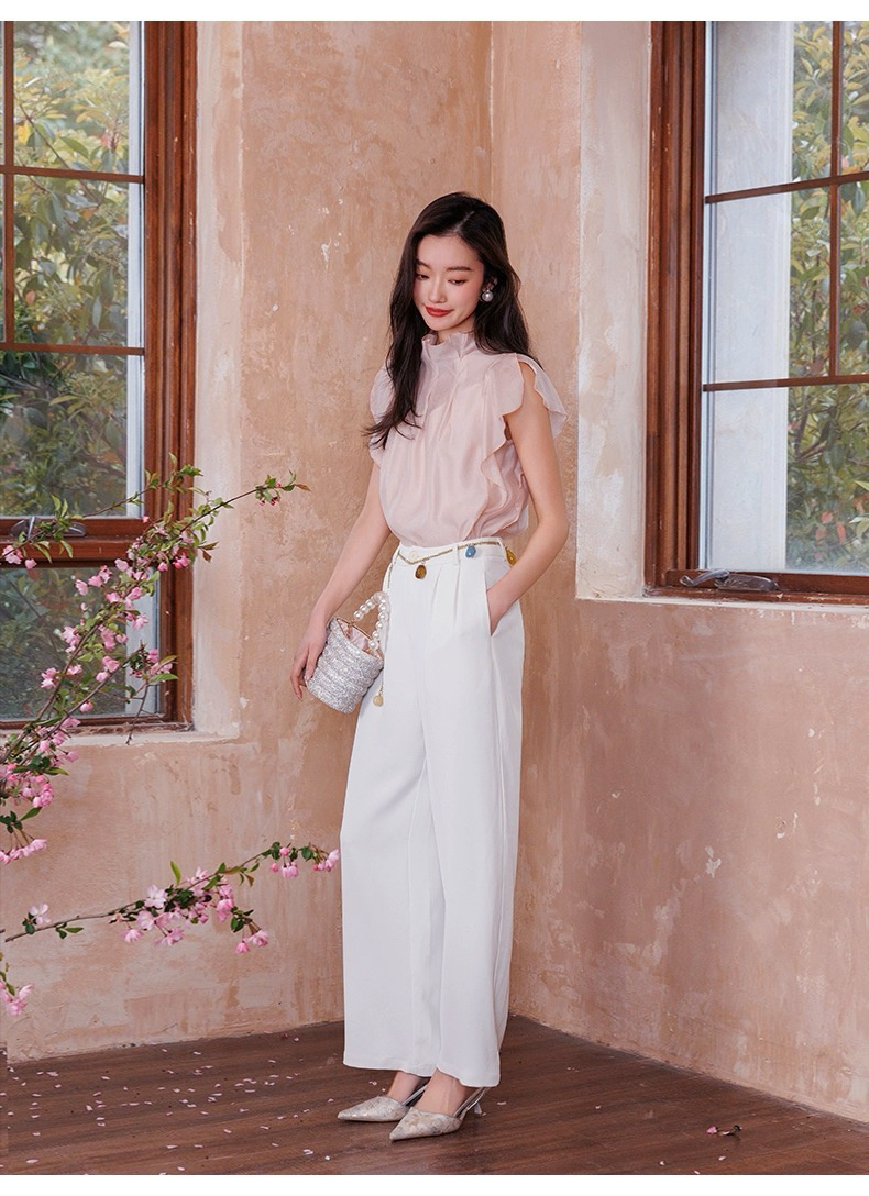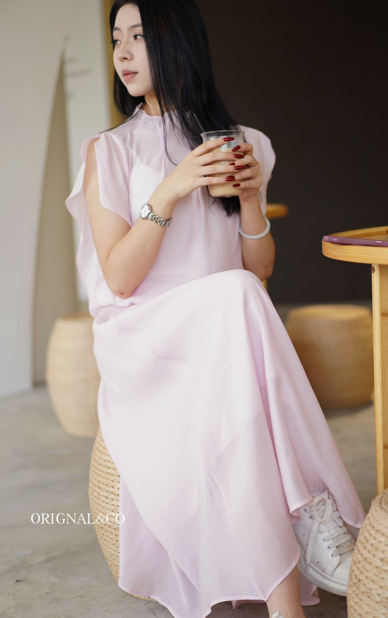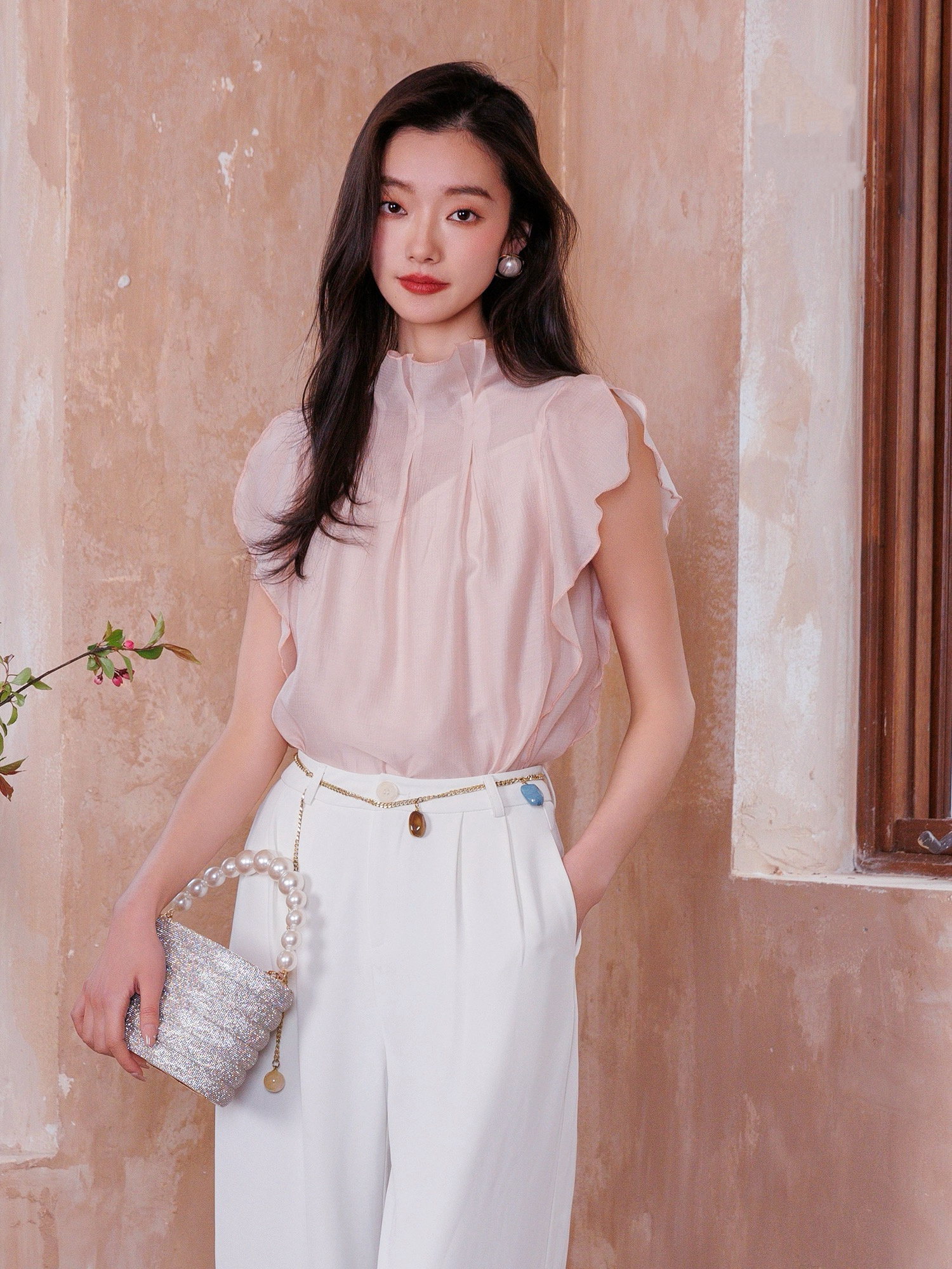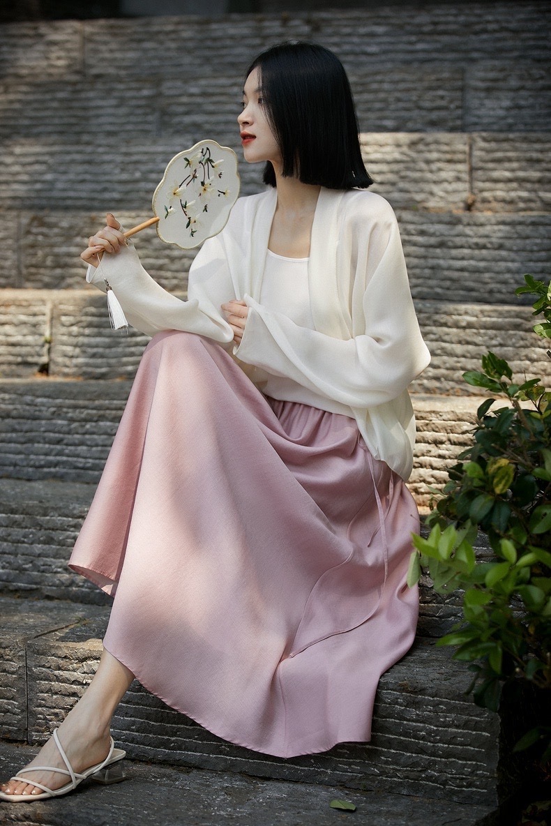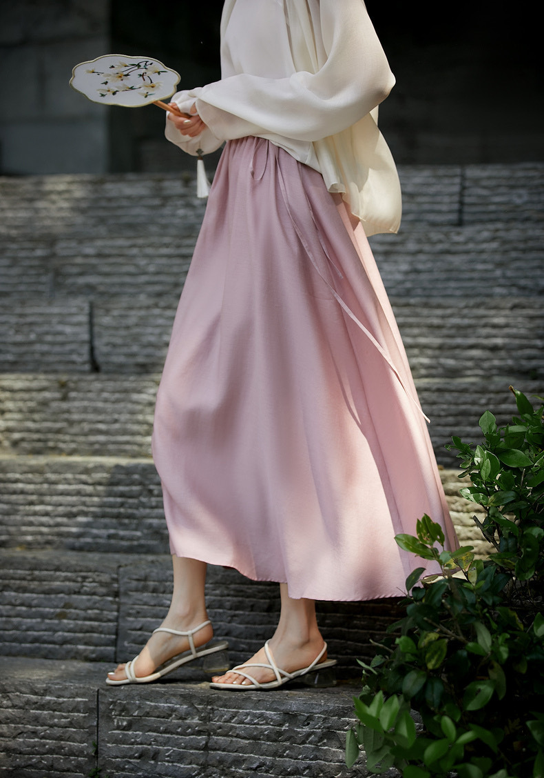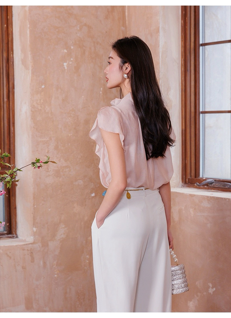 【英国ORIGNAL&CO 珠光粉套装】上衣+半裙 半裙宽松版型 花瓣袖上衣 选用优质天丝面料