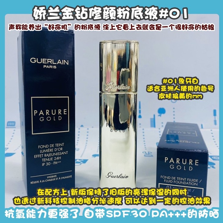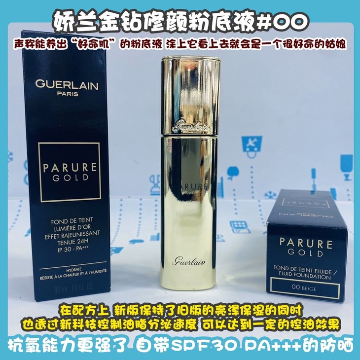 娇兰金钻修颜粉底液#00/#01👍声称能养出“好命肌”的粉底液,涂上它看上去就会是一个很好命的姑娘👻!在配方上,新版保持了旧版的亮泽保湿💦的同时,也透过新科技控制油脂分泌速度,可以达到一定的控油效果😇,加入24K金钻粉末和肌肤再生修复精华,👊抗氧能力更强了!自带SPF30,PA+++的防晒☀,奶油质地很服帖,遮瑕一级棒,并且能透出肌肤原本的光泽✨。要选养肤保养型粉底液,就选它!☑#00瓷白色,适合皮肤白皙追求白皙的宝宝们/☑#01象牙白,适合亚洲人使用的色号,皮肤偏黄的mm。
