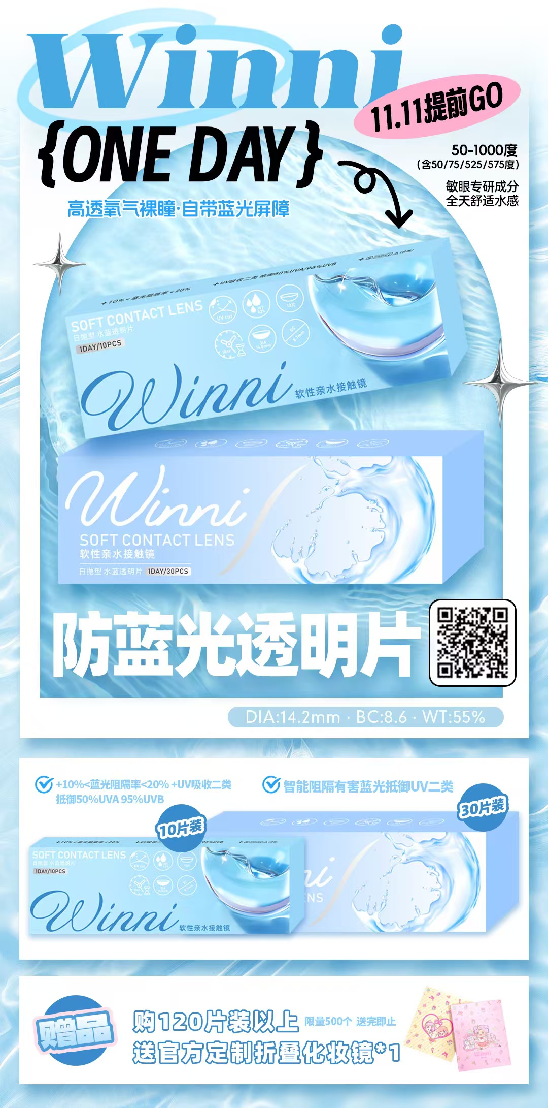 Winni@重磅新品〈防蓝光透明日抛〉贵妇级舒适度