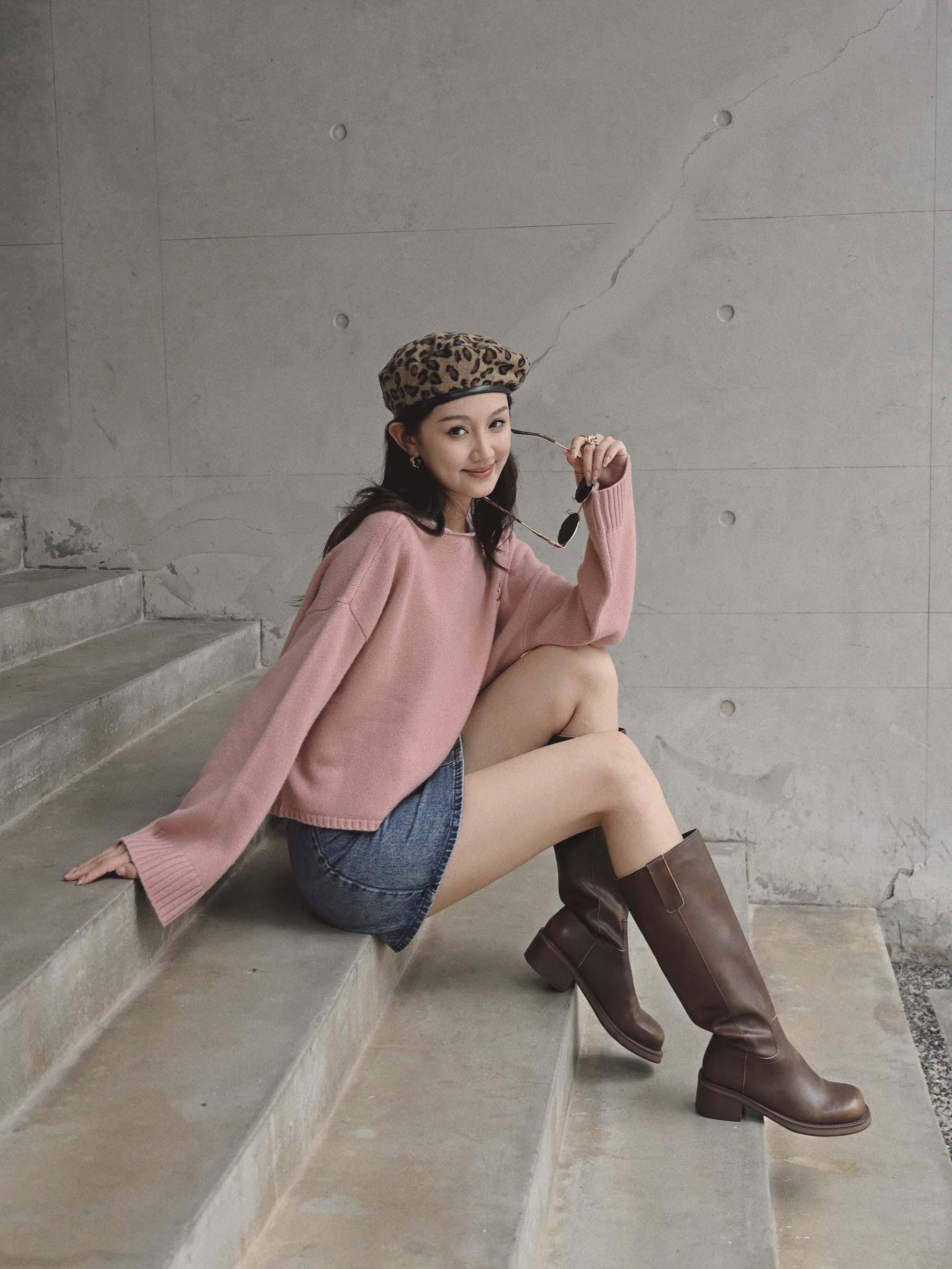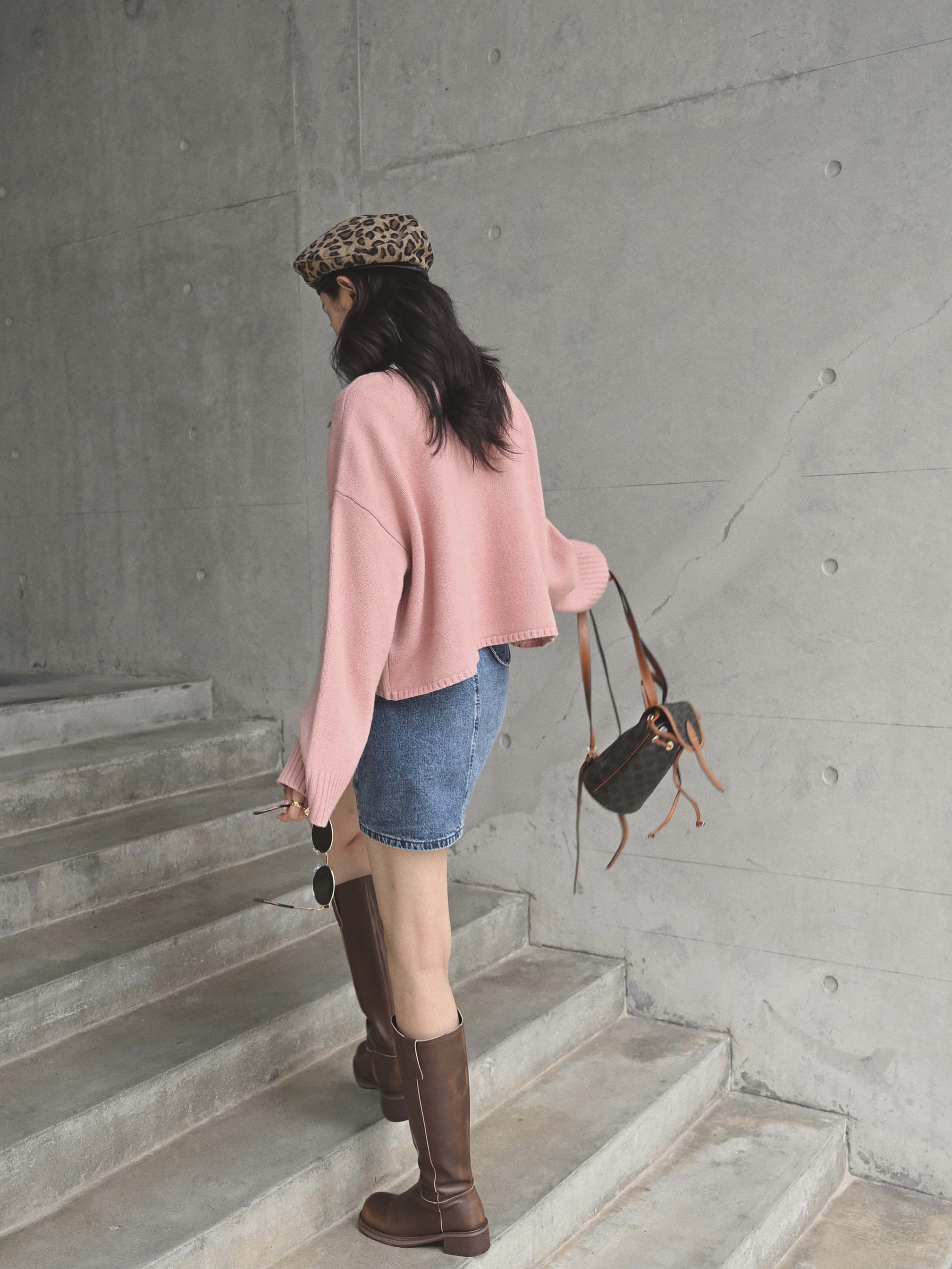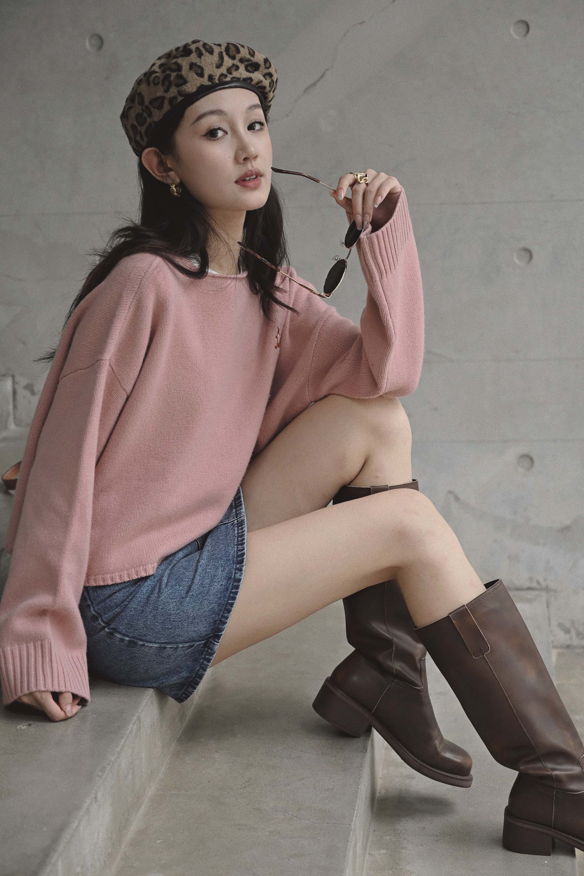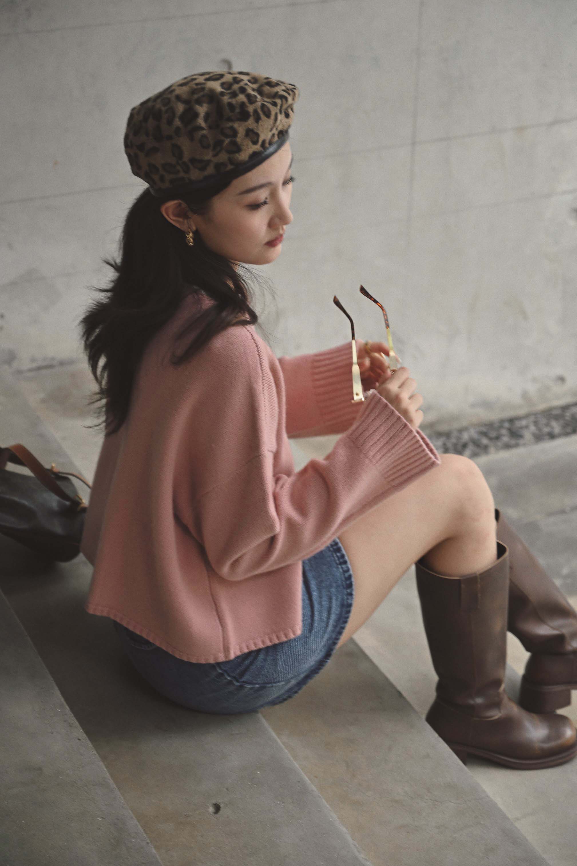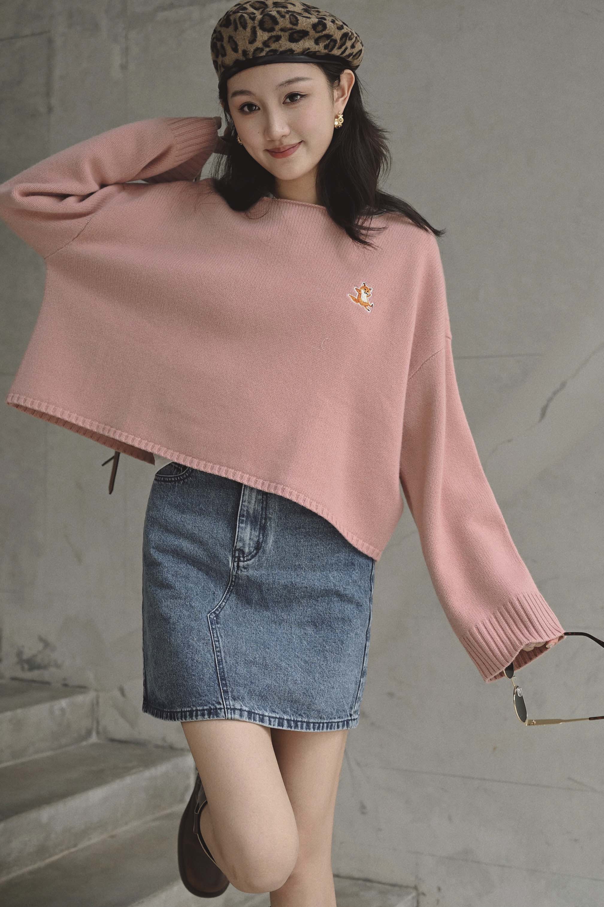 pink秋冬的粉色浪漫 · 羊绒方领小狐狸毛衫