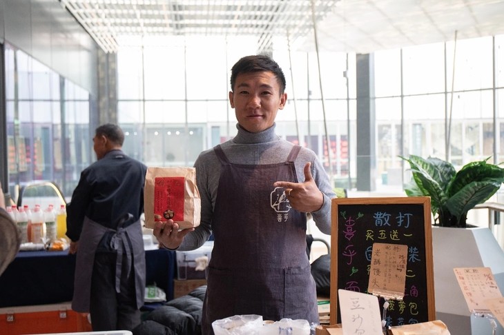 “齐民全谷馒头”,招牌是由种子拼成的贴画